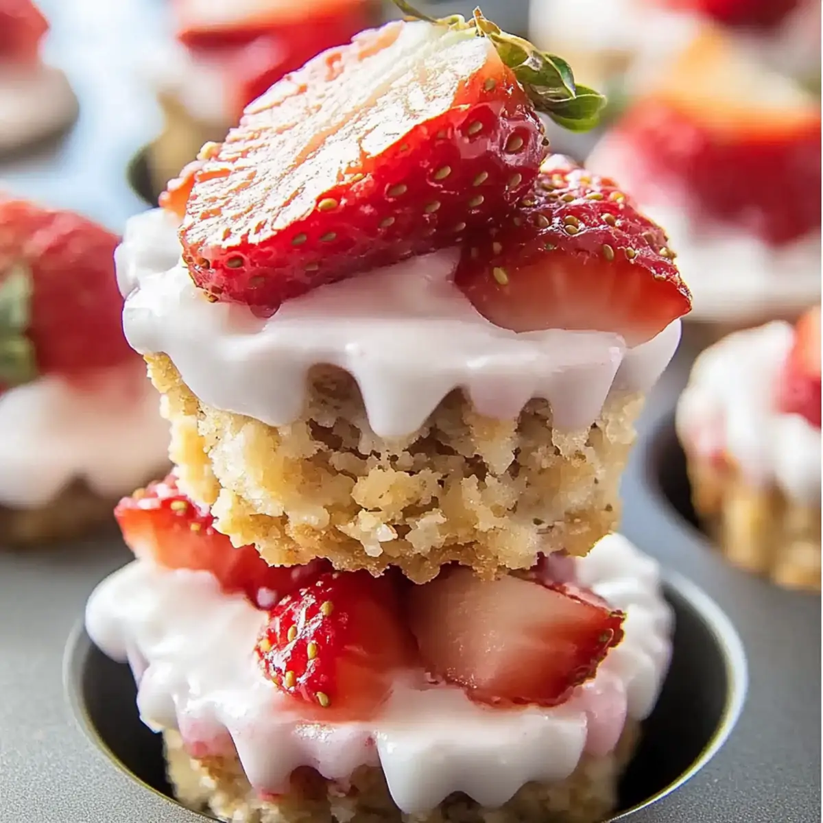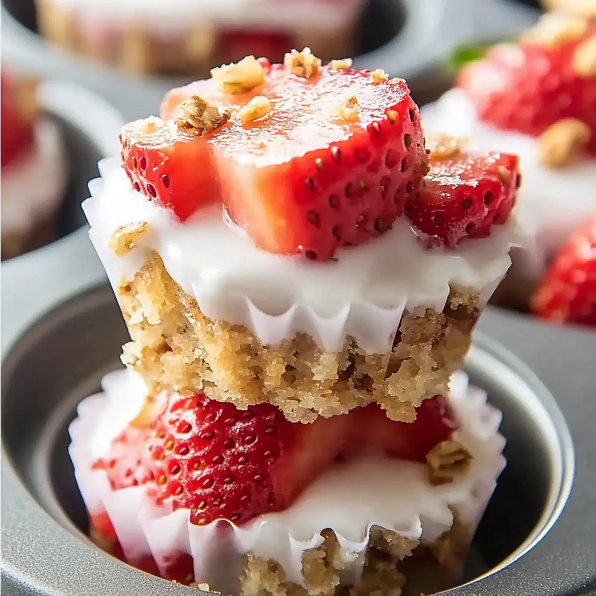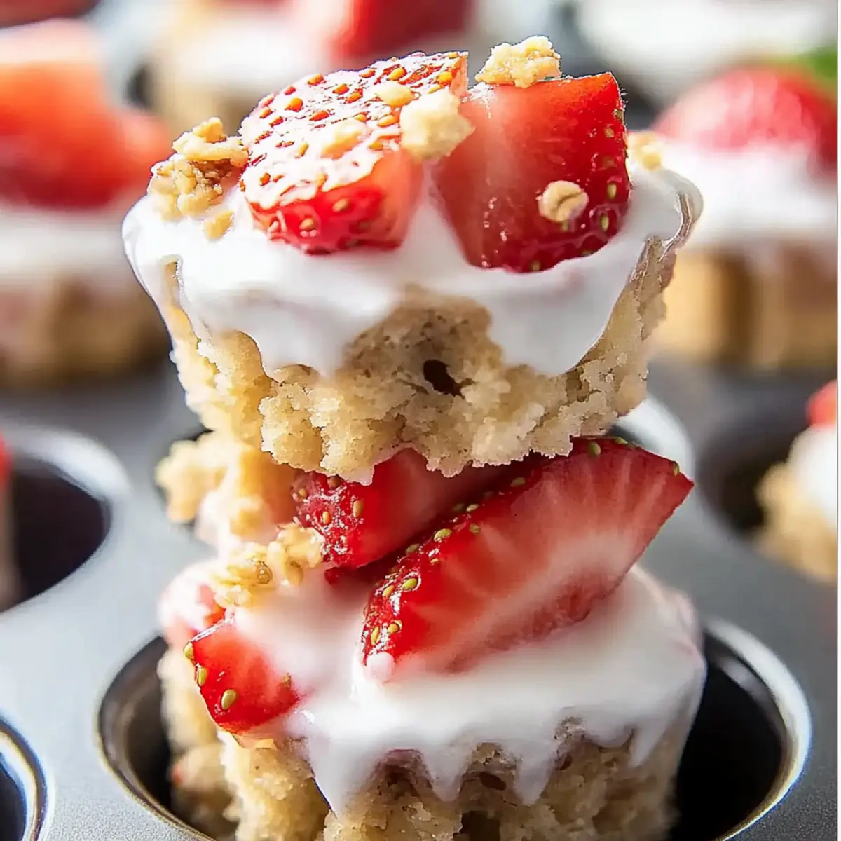 As I rummaged through my fridge the other day, I was pleasantly surprised to discover a container of Greek yogurt and a basket of ripe strawberries just waiting to shine. That’s when the idea for these 3 Ingredient Strawberry Yogurt Bites struck me! This no-bake treat combines creamy yogurt, luscious strawberries, and a satisfying crunch of granola, creating a delightful snack you can whip up in just 15 minutes. Not only are these bites a fantastic way to satisfy your sweet cravings without the guilt, but they’re also gluten-free and perfect for hot summer days. Whether for a quick afternoon pick-me-up or a healthy dessert for the kids, these bites will quickly become a favorite in your home. Curious about how to turn those simple ingredients into a delicious frozen treat? Let’s dive into the recipe! Why are these Strawberry Yogurt Bites a Must-Try? Simplicity reigns supreme with only three ingredients needed, making it a hassle-free option for anyone in the kitchen. Healthy indulgence: These yogurt bites are rich in protein, low in calories, and a great source of Vitamin C, offering a guilt-free treat. Versatile snacking: Feel free to mix in your favorite fruits or use gluten-free granola for a personalized twist. Quick prep: Ready in just 15 minutes, they’re perfect for those busy days! Looking for more refreshing options? Check out my Cucumber Strawberry Salad or indulge in some flavorful Butter Steak Bites. 3 Ingredient Strawberry Yogurt Bites • Making these delightful bites is a breeze with just three simple components! For the Base Greek Yogurt – Use thick, full-fat varieties for a creamy texture that holds up during freezing. For the Flavor Fresh Strawberries – Choose ripe, vibrant strawberries for the best flavor and make sure to pat them dry to avoid excess moisture. For the Crunch Granola – Opt for a lower-sugar granola to enhance the health benefits while providing the perfect crunch and texture. Feel free to personalize these 3 Ingredient Strawberry Yogurt Bites by experimenting with swap-ins, like adding berries or a drizzle of honey! Step‑by‑Step Instructions for 3 Ingredient Strawberry Yogurt Bites Step 1: Prepare the Strawberries Start by washing and hulling the fresh strawberries. Dice half of them into small pieces, about ½ cup, for incorporation into the yogurt mixture, and set these aside. Then, slice the remaining strawberries into thin pieces, approximately ¾ cup, for layering on top. This will create a delicious and vibrant base for your 3 Ingredient Strawberry Yogurt Bites! Step 2: Mix the Yogurt and Strawberries In a mixing bowl, combine 1 cup of thick, full-fat Greek yogurt with the diced strawberries. Stir gently until the strawberries are evenly distributed throughout the yogurt, creating a lovely pink hue. This creamy mixture is the heart of your 3 Ingredient Strawberry Yogurt Bites, so take your time to ensure all flavors meld together beautifully. Step 3: Prepare the Muffin Tin Line a 12-cup muffin tin with paper liners or silicone molds for easy removal later. Using a spoon or spatula, spread some of the yogurt-strawberry mixture in each cup as a base, filling them about halfway. The yogurt base will provide a creamy foundation for each bite, ensuring your 3 Ingredient Strawberry Yogurt Bites are delightful and enjoyable! Step 4: Layer with Sliced Strawberries and Granola Now it’s time to add textural layers! Press the sliced strawberries into each cup on top of the yogurt mixture, followed by a sprinkle of granola. This layering not only enhances the flavor but also adds that satisfying crunch. Repeat the process, adding more yogurt mixture atop the strawberries and granola until each cup is filled. Step 5: Top with Final Yogurt and Granola Cover each cup with any remaining yogurt mixture, smoothing the tops for an even finish. Finally, add a little more granola on top for an added crunch and visual appeal. This step ensures that your 3 Ingredient Strawberry Yogurt Bites are full of flavor and texture all the way through! Step 6: Freeze Until Solid Place the muffin tin in the freezer and allow the yogurt bites to freeze for at least 4 hours, or until they are solid. Make sure they are completely frozen for the best texture. This freezing process transforms your delightful mixture into refreshing treats perfect for warm days. Step 7: Serve and Enjoy Before serving your 3 Ingredient Strawberry Yogurt Bites, let them sit at room temperature for about 5-7 minutes. This short wait helps to soften the bites slightly, enhancing their creamy texture. Once the time is up, simply peel away the liners and enjoy your homemade, guilt-free snacks! Expert Tips for 3 Ingredient Strawberry Yogurt Bites Choose the Right Yogurt: Use thick, full-fat Greek yogurt for the creamiest texture; low-fat options can result in icy, less appealing bites. Prep Strawberries Properly: Pat fresh strawberries dry after washing to prevent excess moisture, which can affect the texture of your 3 Ingredient Strawberry Yogurt Bites. Granola Selection: Opt for lower-sugar granola varieties to enhance health benefits while still delivering that satisfying crunch in each bite. Experiment with Fruit: Feel free to substitute strawberries with other fresh fruits like raspberries or mangoes, but ensure all fruit is pat-dried for the best outcome! Storage is Key: Store any leftovers in an airtight container in the freezer; they’ll stay fresh for up to two months—if they last that long! What to Serve with 3 Ingredient Strawberry Yogurt Bites These delightful, creamy bites are a perfect starting point for a light, refreshing meal or snack experience. Honey Drizzle: A touch of honey adds a natural sweetness, enhancing the fresh strawberries and creamy yogurt without overpowering. Mint Leaves: Fresh mint adds a burst of aromatic freshness, balancing the sweetness of the bites while bringing a pop of color to the plate. Coconut Chips: Toasted coconut chips offer a crunchy, tropic