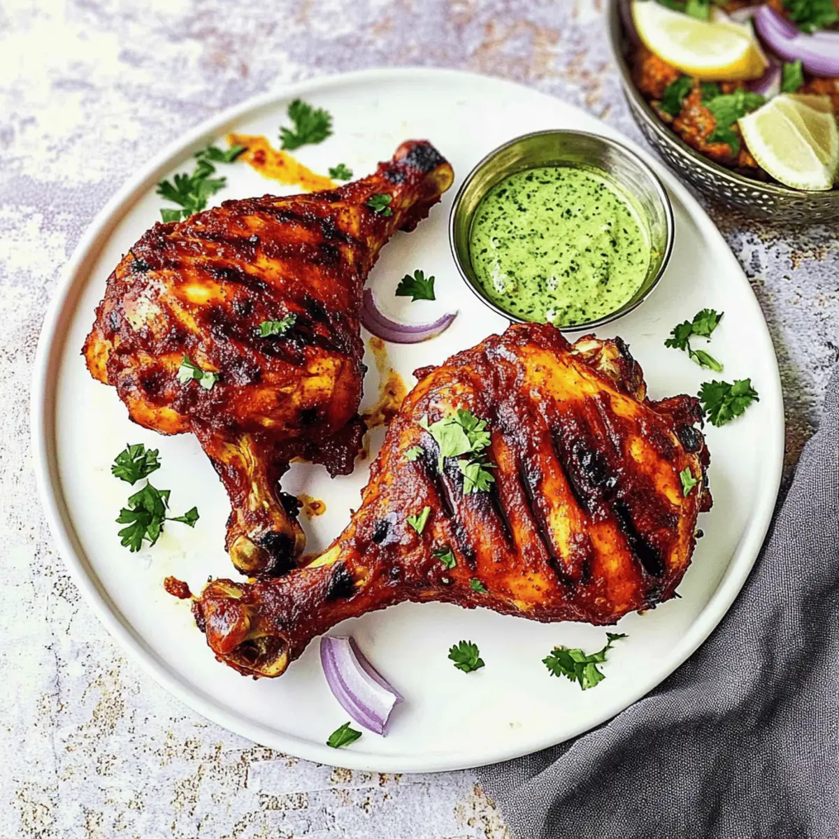 Once cooked, carefully remove the Air Fryer Tandoori Chicken from the basket and let it rest for about 5 minutes. This resting period allows the juices to redistribute, ensuring a moist bite every time. Serve the chicken hot alongside cilantro mint chutney and your choice of naan or rice for a complete and satisfying meal.