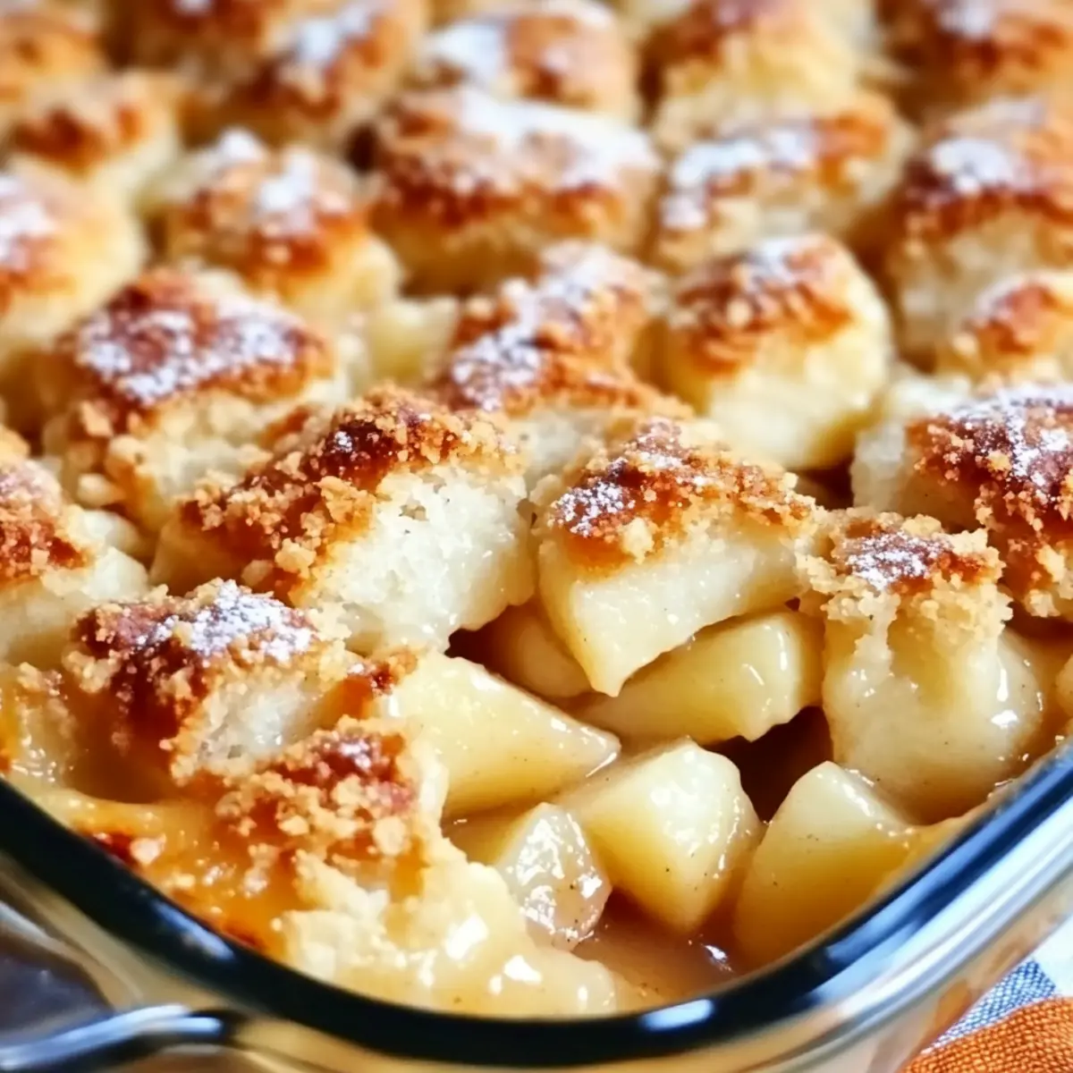 Every fall, I find myself yearning not just for cooler weather, but for that familiar, heartwarming aroma of baked apples wafting through my kitchen. That’s where this Easy Apple Casserole comes into play—a dish that effortlessly blends the cozy flavors of sweet cinnamon and tender apples, topped with a buttery crumble that has everyone reaching for seconds. What I love most about this casserole is its incredible versatility: whether served as a comforting dessert after dinner or a delightful breakfast treat, it’s sure to please every palate at your table. Plus, you can whip it up in just a matter of minutes, making it the perfect solution for those busy, yet festive gatherings. Are you ready to indulge in a slice of autumn bliss? Why Will You Love This Apple Casserole? Comforting Warmth: The cozy flavors of baked apples and cinnamon create an irresistible aroma that fills your home and warms your heart. Quick Preparation: Whipping up this Easy Apple Casserole takes just minutes, allowing you more time to relax and enjoy gatherings with family and friends. Versatile Serving Options: Perfect as a dessert or breakfast, this casserole can easily adapt to any occasion. Enjoy it warm with Savory Chicken Pineapple for a satisfying meal! Crowd-Pleaser: With its sweet, buttery crumble topping, it’s a guaranteed hit at any gathering, leaving everyone wanting more. Easily Customizable: Don’t hesitate to swap in pears or add a pinch of your favorite spices for a unique twist. The possibilities are endless! Apple Casserole Ingredients For the Apple Layer • Apples – 6 medium apples (Granny Smith, Honeycrisp, or a mix) for sweetness and texture; peel, core, and slice before using. • Granulated Sugar – ½ cup enhances sweetness; substitute with a sugar alternative for a lower-calorie option. • Ground Cinnamon – 1 teaspoon adds warm spice; consider using freshly ground for a more robust flavor. • Ground Nutmeg – ¼ teaspoon for depth in flavor. • Lemon Juice – 1 teaspoon brightens and balances the apples. • Unsalted Butter – 2 tablespoons melted for richness in the apple layer. For the Crumble Topping • Quick-Cooking Oats – 1 cup provides texture and structure. • Brown Sugar – ¾ cup, packed for a caramel-like sweetness. • All-Purpose Flour – ½ cup binds the crumble; use a gluten-free alternative if desired. • Salt – ½ teaspoon balances the flavors and enhances sweetness. • Baking Powder – ½ teaspoon helps the topping rise and become light and crumbly. • Cold Unsalted Butter – ½ cup, cold and cubed for that perfect crumbly topping texture. Step‑by‑Step Instructions for Easy Apple Casserole Step 1: Preheat the Oven Begin by preheating your oven to 350°F (175°C). While the oven warms up, lightly grease a 9×13-inch baking dish with a bit of unsalted butter or cooking spray to ensure the casserole releases easily after baking. This step is crucial to achieving that perfect golden crust on your Easy Apple Casserole. Step 2: Prepare the Apples In a large mixing bowl, toss together your peeled, cored, and sliced apples with granulated sugar, ground cinnamon, ground nutmeg, lemon juice, and melted unsalted butter. Ensure each slice is well coated for that rich flavor. Once mixed, spread the apple mixture evenly in the prepared baking dish, creating a fragrant base for your casserole. Step 3: Make the Topping In a separate bowl, combine the quick-cooking oats, packed brown sugar, all-purpose flour, salt, and baking powder. Mixing these dry ingredients well ensures balanced flavors throughout your topping. Next, cut in the cold unsalted butter using a pastry cutter or your fingers until the mixture resembles coarse crumbs. This step is key to achieving that crumbly topping in your Apple Casserole. Step 4: Assemble the Casserole Evenly sprinkle the crumb topping over the prepared apple mixture in the baking dish, ensuring an even distribution for consistent browning. Gently press down the topping with the back of a spoon, which helps it adhere to the tender apples underneath, setting the stage for a delightful combination of textures in your Easy Apple Casserole. Step 5: Bake Place the assembled casserole in the preheated oven and bake for 35–40 minutes. Keep an eye on it, and look for the topping to turn a beautiful golden brown and the apples to start bubbling around the edges. This visual cue will tell you when your Easy Apple Casserole is ready to be enjoyed. Step 6: Serve & Enjoy Remove the casserole from the oven and let it cool slightly before serving. For an extra touch of indulgence, serve it warm with a scoop of vanilla ice cream or a dollop of whipped cream. This delightful combination enhances the comforting flavors of your Easy Apple Casserole, making it a perfect addition to your fall gatherings. What to Serve with Easy Apple Casserole Indulging in a warm slice of apple casserole is a delightful experience; enhance it further with perfect pairings that create a complete meal. Vanilla Ice Cream: A scoop of creamy vanilla ice cream beautifully contrasts the warm apples, adding a silky texture that elevates each bite. Whipped Cream: Light and fluffy, whipped cream adds a touch of sweetness and complements the comforting flavors of the casserole wonderfully. Caramel Sauce: Drizzling caramel sauce over the casserole adds a rich sweetness that marries well with the cinnamon and apple flavors. Coffee: A warm cup of coffee creates a delightful balance to the sweetness of the dish, offering a comforting and cozy vibe. Spiced Apple Cider: This warm drink enhances autumn flavors, immersing you in a seasonal experience as you enjoy your apple casserole. Roasted Nuts: Crunchy roasted pecans or walnuts layered on top provide a delightful textural contrast to the soft, tender apples in the casserole. Fresh Fruit Salad: Bright, juicy fruits like oranges and berries offer a refreshing contrast, making the meal well-rounded and vibrant. Creamy Yogu