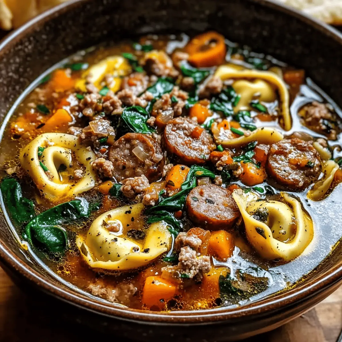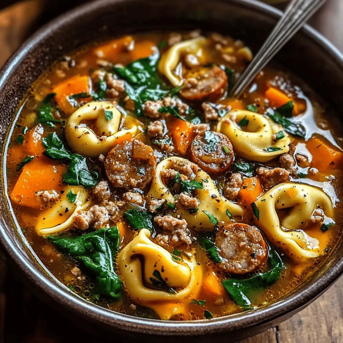 Cozy Autumn Tortellini Soup with Savory Sausage Delight