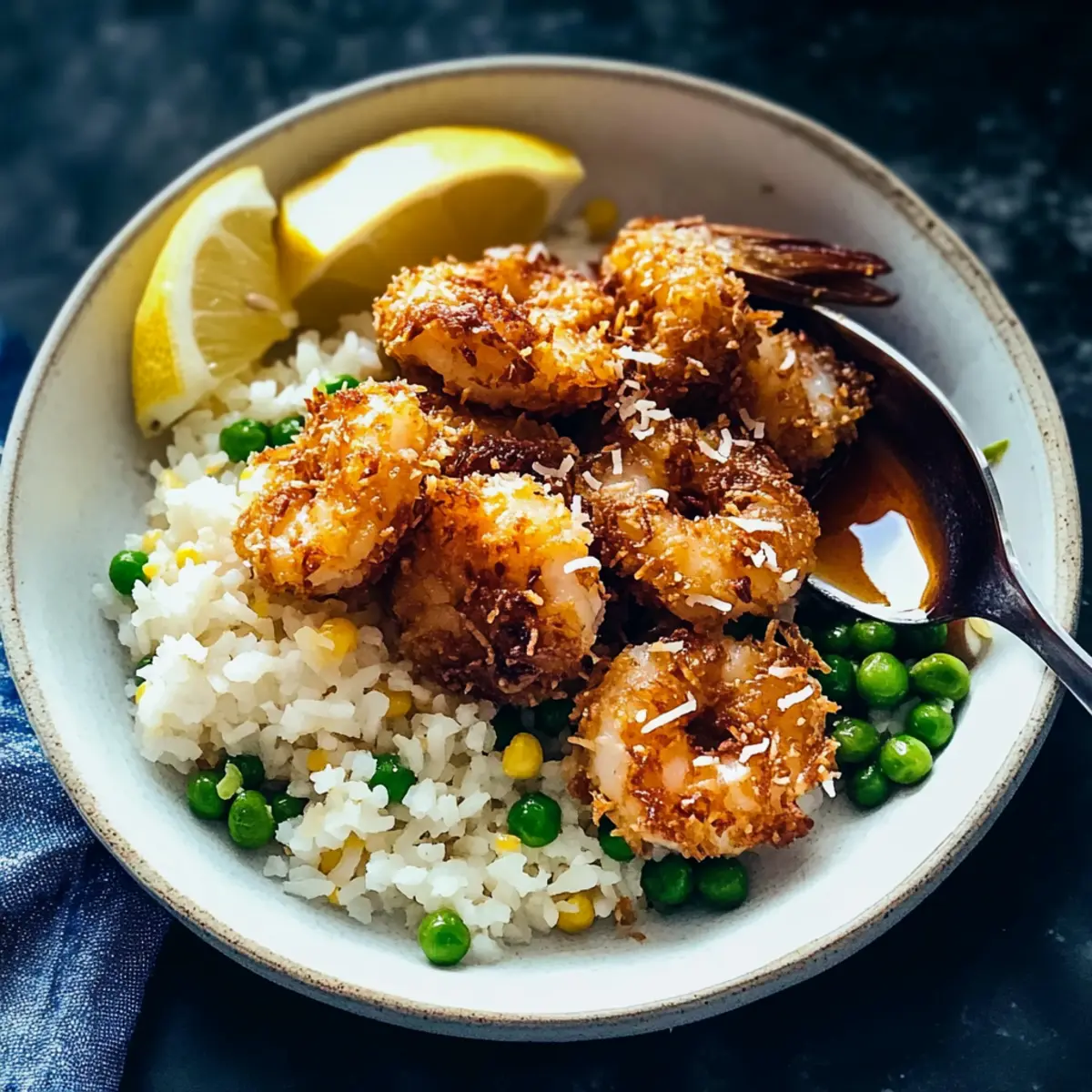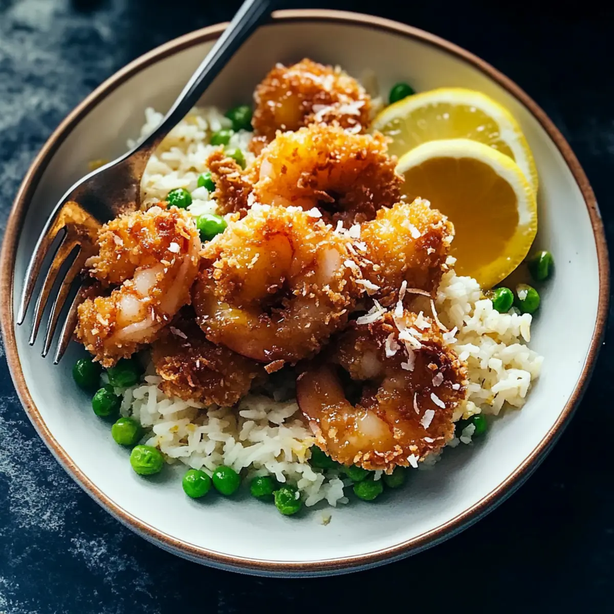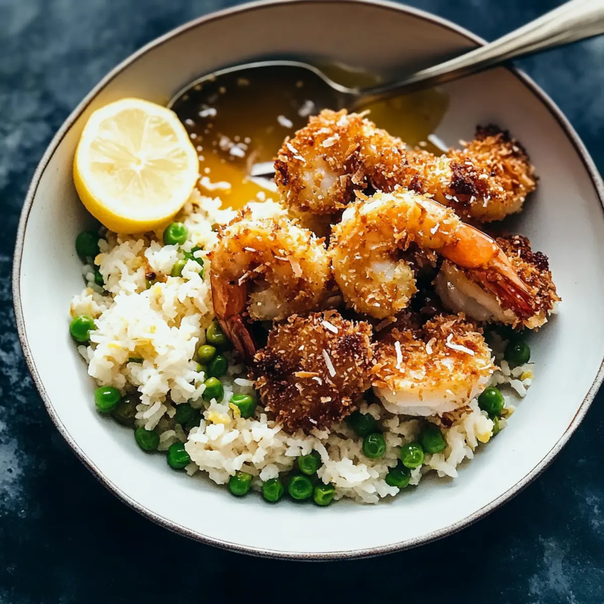 As I pulled a tray of golden Baked Coconut Shrimp from the oven, the tropical aroma filled my kitchen like a gentle ocean breeze, instantly transporting me to sun-kissed shores. This delightful dish features crispy shrimp paired with springy, lemony rice, making it a perfect family-friendly option for a fast yet fabulous dinner. Best of all, it comes together with minimal fuss, letting you enjoy more time with loved ones while delivering a delectable meal that rivals takeout. The pièce de résistance? A sweet honey butter sauce that adds just the right touch of indulgence to each bite. Are you ready to bring a taste of the tropics to your table? Let’s dive into this scrumptious Baked Coconut Shrimp recipe! Why is Baked Coconut Shrimp a Must-Try? Irresistible Crunch: Each bite of these Baked Coconut Shrimp features a perfectly crisp coating that makes for a delightful texture contrast against the tender succulent shrimp inside. Easy to Make: With just a few simple steps, you can serve a stunning dish that feels fancy yet is manageable for a busy weeknight dinner. Flavor Explosion: The combination of honey butter sauce and lemony rice elevates this dish, making it a symphony of sweet and savory flavors that will have everyone asking for seconds! Versatile Pairings: This dish is perfect with a side salad or grilled veggies, allowing you to customize it however your family prefers. Elevate your dinner game and experience a taste of the tropics with Baked Coconut Shrimp, a dish that promises both easy preparation and crowd-pleasing results! Baked Coconut Shrimp Ingredients For the Shrimp • Large Uncooked Shrimp – Opt for these for the best texture and flavor; they stay juicy and tender after baking. • Panko Breadcrumbs – They provide an irresistible crunch; consider substituting with gluten-free options if needed. • Unsweetened Coconut Flakes – Adds a delightful tropical flavor; using sweetened coconut can lend an extra touch of sweetness. • All-Purpose Flour – This forms the base for the coating; for gluten-free diets, alternatives like almond flour work well. • Eggs – Use as a binding agent to help the coating adhere perfectly. • Salt – Enhances all the flavors in the dish; sea or kosher salt works beautifully. • Paprika – Provides a smoky note and vibrant color; for heat, opt for cayenne instead. For the Honey Butter Sauce • Honey – Sweetens the sauce and complements the tropical notes of the shrimp; maple syrup can be used for a vegan option. • Butter – Forms the rich base of the sauce; choose a plant-based version for a dairy-free alternative. For the Rice • Long-Grain or Jasmine Rice – These types give a fluffy texture; consider adding a small amount of lemon zest for a zesty touch. • Frozen Peas – Adds pops of sweetness and vibrant color; fresh peas can elevate the flavor even more. Get ready to create stunning Baked Coconut Shrimp that will become a family favorite, paired beautifully with the springy rice and sweet honey butter sauce! Step‑by‑Step Instructions for Baked Coconut Shrimp with Springy Rice and Honey Butter Sauce Step 1: Prep Shrimp Preheat your oven to 425°F (220°C). Prepare your workstation by setting up three bowls: one filled with a mixture of flour, salt, and paprika; the second containing beaten eggs; and the third holding a combination of panko breadcrumbs and unsweetened coconut flakes. This organized setup will streamline your coating process for the fragrant Baked Coconut Shrimp. Step 2: Coat Shrimp Take each uncooked shrimp and dip it into the flour mixture, ensuring it’s well coated. Next, immerse it into the beaten eggs until evenly covered. Finally, press the shrimp into the panko-coconut mixture, making sure it adheres well and forms a satisfying crust. This multilayered coating is essential for achieving that irresistible crunch in your Baked Coconut Shrimp. Step 3: Bake Line a baking sheet with parchment paper and place the coated shrimp on it, ensuring they’re spread out and not touching each other. Bake in your preheated oven for 15-20 minutes, or until the shrimp are golden brown and the coating is crisp. Keep an eye on them during the last few minutes of baking to achieve that perfect crunch characteristic of Baked Coconut Shrimp. Step 4: Prepare Rice While your shrimp is baking, cook the long-grain or jasmine rice according to package directions. About five minutes before the rice is finished, stir in frozen peas, allowing them to heat through. The combination of fluffy rice and sweet peas will complement the crispy Baked Coconut Shrimp perfectly, creating a delightful texture contrast on your plate. Step 5: Make Honey Butter Sauce In a small saucepan over medium heat, melt the butter. Once melted, stir in honey until well combined and heated through. Taste and adjust sweetness to your liking. This sweet honey butter sauce will add a luscious, glossy finish to your Baked Coconut Shrimp, elevating the dish to new heights of deliciousness. Step 6: Serve To serve, mound the springy rice on a plate and arrange the golden Baked Coconut Shrimp on top. Drizzle the warm honey butter sauce generously over the shrimp, ensuring every bite captures the delightful balance of flavors. This beautiful presentation makes this dish not only a feast for the stomach but also for the eyes! Expert Tips for Baked Coconut Shrimp Pat-Dry Shrimp: Before coating, make sure the shrimp are well-dried. This helps the breading adhere better and results in an even crunch for your baked coconut shrimp. Toast Coconut & Panko: Lightly toast the panko breadcrumbs and coconut flakes before coating to enhance their flavors. Watch closely to avoid burning them! Avoid Overcrowding: When baking, arrange the coated shrimp in a single layer on the baking sheet, ensuring they’re not touching. This promotes even cooking and crispiness. Taste Your Sauce: For the honey butter sauce, adjust the sweetness based on your preference. A touch m