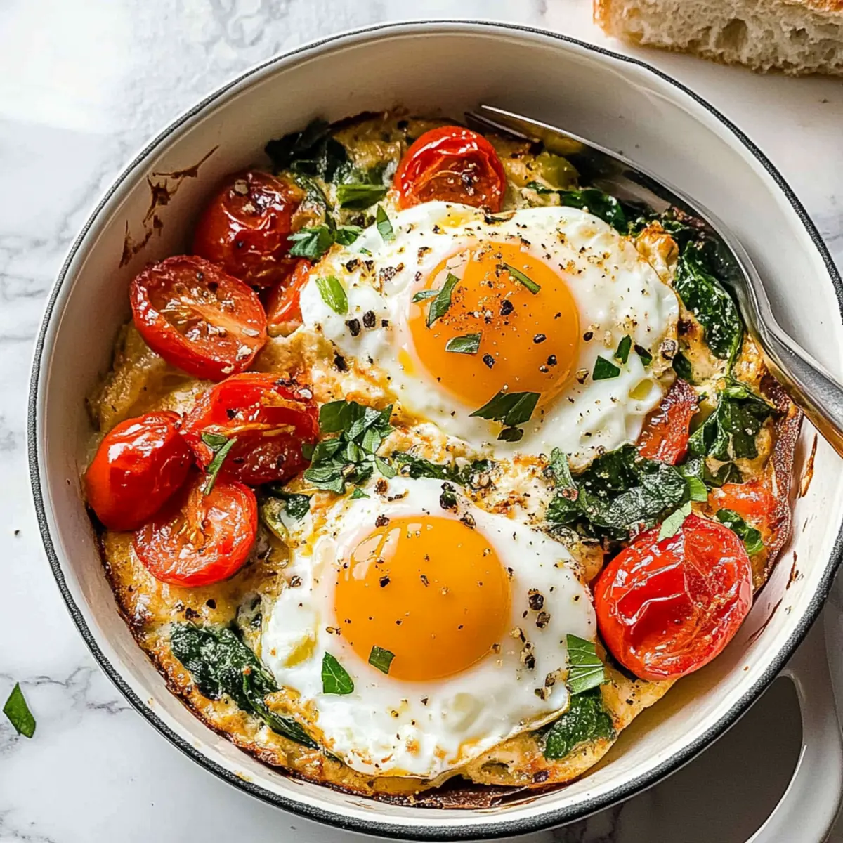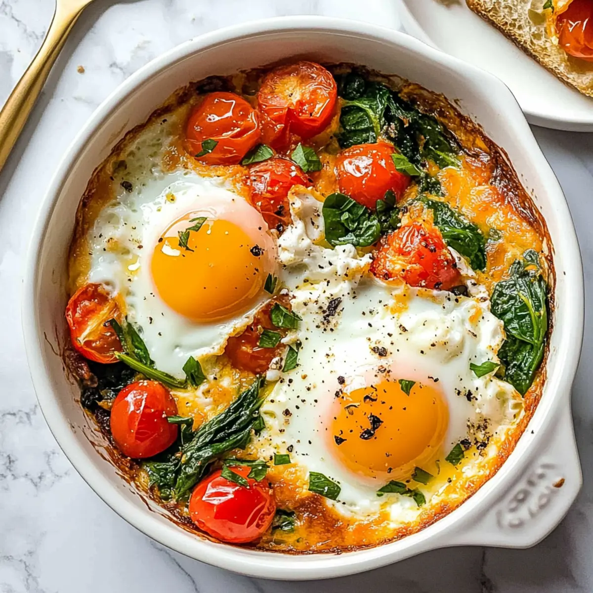 As I savored the first bite of my Mediterranean Baked Feta Eggs, the creamy feta mingling with the sweet tomatoes and wilted spinach transported me straight to a sun-drenched terrace overlooking the sea. This healthy, low-carb breakfast not only captivates the senses but also celebrates vibrant flavors, making it a delightful addition to any brunch table or quick weekday meal. You have the option to create individual ramekins for a fun presentation or bake it all in one dish, accommodating any occasion. Just imagine the smiles when you serve up this nourishing dish, perfect for those who are tired of fast food and craving something fresh and wholesome. Ready to embrace this culinary adventure and tantalize your taste buds? Why Try Baked Feta Eggs Today? Flavorful Fusion: This recipe combines creamy feta with juicy tomatoes and fresh spinach, creating a harmonious blend that’s bursting with Mediterranean goodness. Healthy & Low-Carb: Packed with nutrients and low in carbs, these baked feta eggs are an excellent choice for anyone looking to maintain a healthy diet without sacrificing taste. Easy to Customize: Whether you choose to use individual ramekins or a larger dish, it’s simple to adapt to your preferences. Feel free to experiment with other veggies or add a protein like sausage for an extra boost. Quick to Prepare: In just about 35 minutes, you can create a stunning dish that’s perfect for brunch or even a cozy weekday breakfast. Crowd-Pleasing Presentation: Serve it alongside warm, crusty bread and watch as everyone digs in. This dish is sure to impress family and friends alike! For more exciting recipes combining health and comfort, check out our Mushroom Cheesecake Feta or our delicious Martini Deviled Eggs. Baked Feta Eggs Ingredients For the Veggies • Cherry or Grape Tomatoes – Provides juiciness and freshness; substitute with any seasonal tomatoes. • Red Bell Pepper – Adds sweetness and crunch; green or yellow peppers can be used as alternatives. • Red Onion – Offers a mild pungency and sweetness; can substitute with yellow onion. • Garlic – Enhances flavor; fresh garlic is preferred, but powder works in a pinch. • Olive Oil – Adds richness and helps with baking; use extra virgin for the best flavor. • Dried Oregano – Provides a Mediterranean herb flavor; thyme can be a good substitute. • Sea Salt – Enhances overall flavor; adjust according to personal taste. • Dried Thyme – Adds earthy notes; fresh thyme is a good alternative if available. • Ground Black Pepper – For spice and warmth; white pepper can also be used. • Red Pepper Flakes – Adds heat; omit for a milder dish. • Baby Spinach – Adds nutrition and color; can substitute with kale or Swiss chard. For the Eggs • Large Eggs – The star ingredient creating the dish’s heartiness; egg whites can be used to lower calories. For Garnishing • Chopped Fresh Basil or Chives (optional) – For garnish and added flavor; parsley can be used as an alternative. This exciting blend of ingredients makes Baked Feta Eggs a delectable, nourishing choice for your healthy breakfast! Step‑by‑Step Instructions for Baked Feta Eggs Step 1: Preheat the Oven Begin by preheating your oven to 400°F (200°C). This high temperature ensures that your Baked Feta Eggs will cook evenly and develop a delightful golden crust on top. As the oven warms, gather your ingredients and prepare your baking vessels—either individual ramekins or a large oven-safe dish. Step 2: Prepare the Ingredients For individual ramekins, divide the cherry tomatoes, red bell pepper, red onion, and minced garlic into four dishes. If you opt for a larger dish, mix all these vibrant vegetables together in it. Crumble a generous portion of feta cheese in the center, then drizzle everything with a splash of olive oil, enhancing the flavors and preventing sticking. Step 3: Season the Mixture In a small bowl, combine dried oregano, sea salt, dried thyme, ground black pepper, and red pepper flakes. Sprinkle this flavorful blend generously over the veggies and feta, ensuring each bite of your Baked Feta Eggs is packed with Mediterranean goodness. The herbs will infuse the mixture as it bakes, creating an aromatic experience. Step 4: Bake the Vegetables Carefully place the ramekins on a baking sheet or set the large dish directly in the oven. Bake for about 25 minutes, watching for the vegetables to soften and the feta to start melting and slightly browning. The scent will begin to fill your kitchen, hinting that your Baked Feta Eggs are on their way to perfection. Step 5: Incorporate the Spinach Once the baking time is up, remove your dish from the oven and give it a gentle stir to combine the melted feta with the vegetables. Next, fold in the baby spinach until it wilts slightly, then use a spoon to make small wells for the eggs. This step ensures your eggs will nest perfectly in the flavorful mixture. Step 6: Add the Eggs Crack large eggs gently into each well, keeping the yolks intact. Return the ramekins or baking dish to the oven and bake for an additional 10 minutes, or until the egg whites are set but the yolks are still runny. Keep an eye on the doneness—this will create a delightful texture in your Baked Feta Eggs. Step 7: Garnish and Serve Once out of the oven, sprinkle chopped fresh basil or chives over the top for a burst of color and flavor. Serve your Baked Feta Eggs warm, paired with crusty bread, pita, or toast for dipping. The combination of creamy feta, vibrant veggies, and runny yolk makes for a comforting meal perfect for any occasion. Expert Tips for Baked Feta Eggs Use Quality Feta: Opt for high-quality, creamy feta cheese to ensure the best flavor. Crumble it fresh for a richer taste in your Baked Feta Eggs. Avoid Overcrowding: When using ramekins, make sure not to overcrowd them with veggies. This ensures even cooking and avoids a soggy texture. Pre-Cook Spinach: If using tougher greens like kale, con