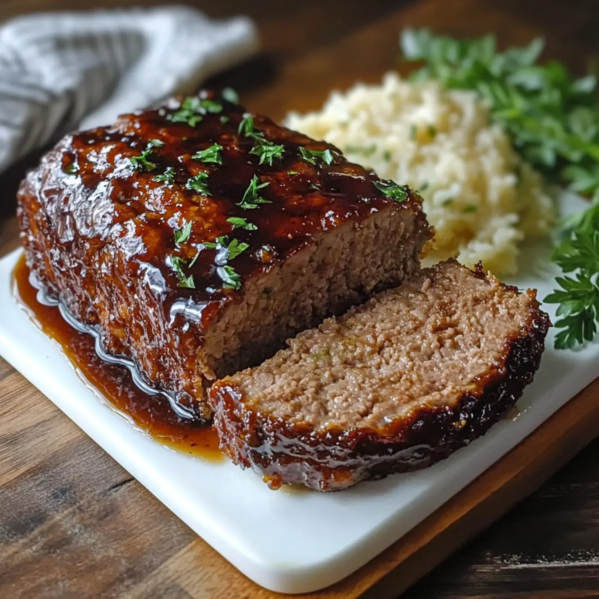 Once fully cooked, remove the Balsamic Glazed Meatloaf from the oven and let it rest for 10 minutes. This step is vital as it allows the juices to redistribute throughout the meatloaf. After resting, slice it carefully and serve with your favorite sides, enjoying the tantalizing flavors in every bite.