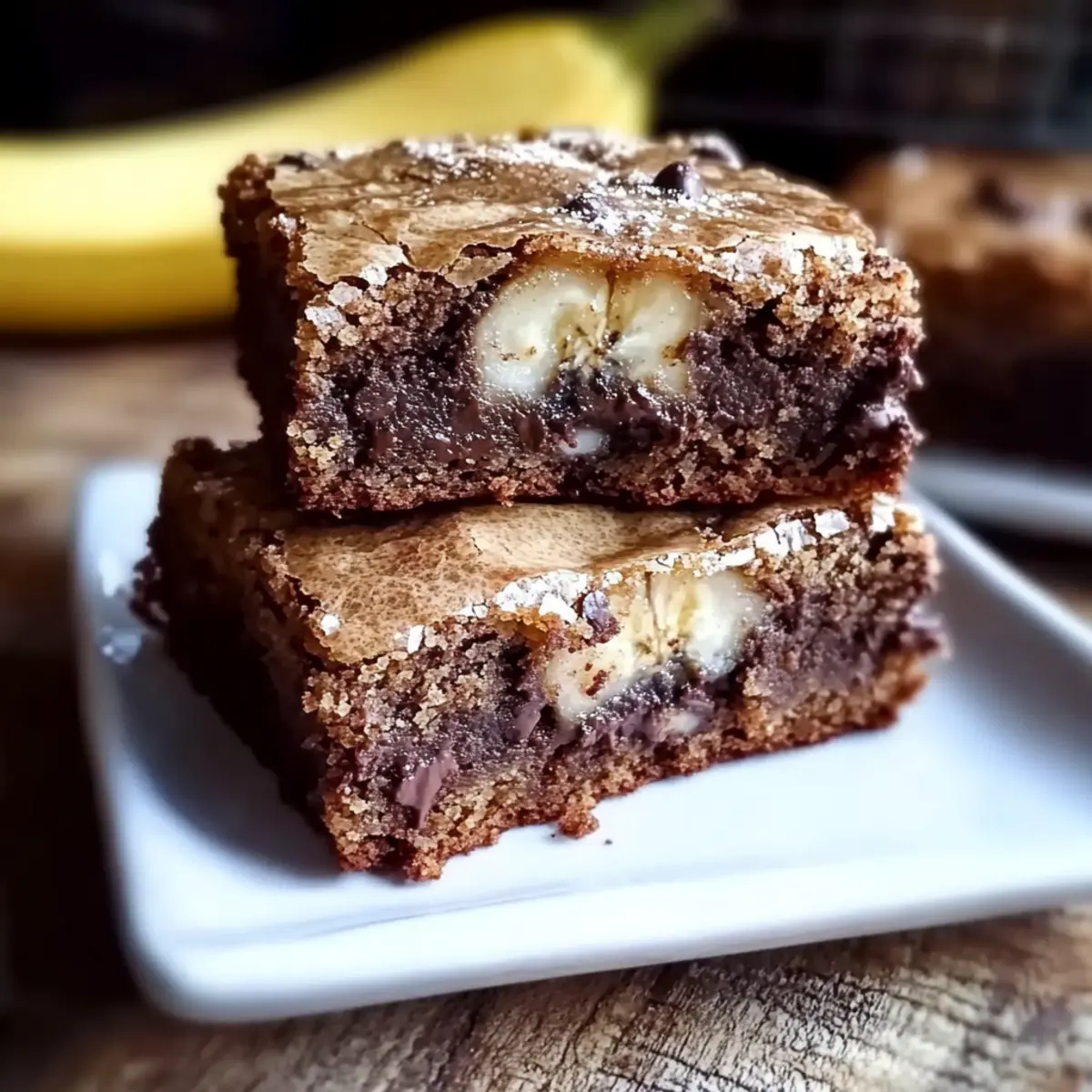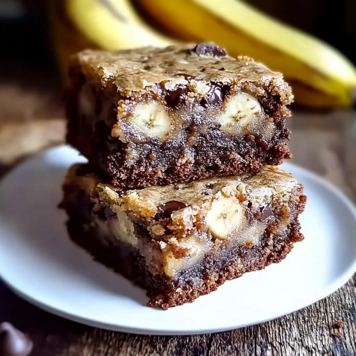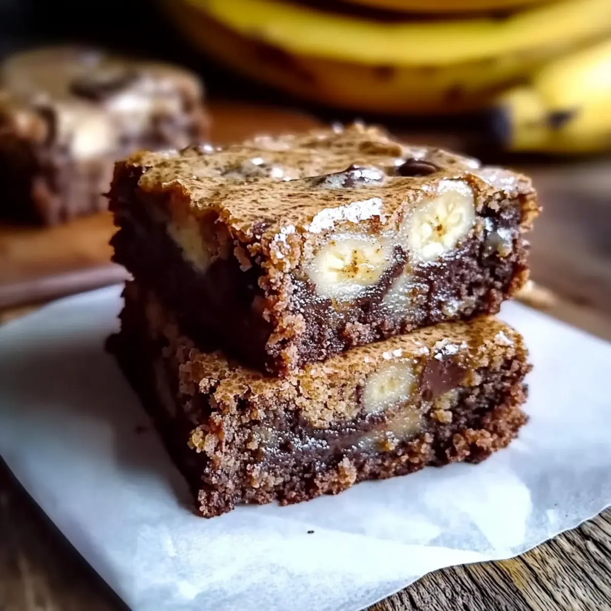 The aroma wafting from my kitchen had neighbors peeking through the window, intrigued by what deliciousness was brewing inside. I was baking a batch of Banana Bread Brownies, the delightful fusion of soft, ripe bananas and rich, fudgy chocolate that you never knew you needed. This recipe is a game-changer, offering the ultimate indulgence without the guilt—it’s quick to whip up and serves as a crowd-pleaser for everything from cozy family evenings to brunch gatherings. Imagine cutting into these dense, chewy squares and seeing that perfect blend of flavors come together; it’s the comfort food we all crave. Ready to transform your ripe bananas into something spectacular? Let’s dive into this deliciously simple recipe! Why are Banana Bread Brownies a Must-Try? Irresistible fusion: These Banana Bread Brownies combine moist banana flavor with rich chocolate, creating a delightful dessert experience. Easy to make: With just a few simple ingredients, you can whip up this indulgent treat in no time—perfect for when unexpected guests arrive. Crowd-pleaser: Expect smiles all around as you serve these fudgy squares at your next gathering or family dinner. Versatile options: Customize your brownies with nuts, chocolate chips, or even a swirl of peanut butter to suit your taste. Delicious warmth: Serve them warm with a scoop of ice cream for a decadent twist that everyone will love and cherish—just like in these Decadent Chocolate Brownies. Satisfy your cravings: The comforting blend of flavors creates a sweet escape from the mundane, making every bite unforgettable. Banana Bread Brownies Ingredients Unlock the secret to delicious Banana Bread Brownies with these essential ingredients! For the Brownies Ripe Bananas – Use very ripe bananas for maximum sweetness and moisture. Granulated Sugar – Adds just the right amount of sweetness and promotes browning. Unsweetened Cocoa Powder – This is your key to achieving that rich chocolate flavor and dark color. Vegetable Oil – Ensures the brownies remain moist; you can substitute with melted coconut oil for a hint of tropical richness. Large Eggs – These bind your ingredients together and help them rise beautifully. Vanilla Extract – Enhances the overall flavor; opt for alcohol-free for the best taste. Baking Powder – Acts as a leavening agent to make your brownies light and fluffy. Ground Cinnamon – Adds warmth and depth to the sweet chocolatey flavor. All-Purpose Flour – Provides structure, keeping your brownies nicely formed. Salt – Balances out the sweetness and enhances all the flavors in your delicious treat. Optional Toppings Chopped Walnuts – Gives a delightful crunch and nuttiness to the brownies. Chocolate Chips – For extra chocolatey goodness, add them in your batter or as a topping. Shredded Coconut – This adds a fun texture and a touch of tropical flair to your brownies. Feel free to get creative with your toppings and make these Banana Bread Brownies truly your own! Step‑by‑Step Instructions for Banana Bread Brownies Step 1: Preheat the Oven Begin by preheating your oven to 350°F (175°C) to ensure it’s hot and ready for baking. While the oven warms up, prepare a 9×9-inch baking pan by greasing it lightly or lining it with parchment paper for easy removal of your delicious Banana Bread Brownies. Step 2: Mash the Bananas In a large mixing bowl, mash 2-3 very ripe bananas until they form a smooth puree. Look for a consistency that’s creamy with no lumps, as this will provide the moist texture your brownies need. This key step also infuses the brownies with natural sweetness, making them extra delightful. Step 3: Combine Sugar and Oil Add the granulated sugar and vegetable oil to the mashed bananas. Use a whisk or spatula to mix these ingredients thoroughly until smooth and well blended. You should aim for a glossy mixture that signifies the sugar is dissolving into the bananas, creating a perfect base for your Banana Bread Brownies. Step 4: Incorporate Eggs and Vanilla Crack in the large eggs one at a time, ensuring you mix well after each addition. This step is crucial for binding your ingredients together. Next, stir in the vanilla extract, enhancing the flavor profile of your brownies. The mixture should appear slightly thick and uniform by the end. Step 5: Mix the Dry Ingredients In a separate bowl, sift the unsweetened cocoa powder, baking powder, ground cinnamon, all-purpose flour, and salt. This step aerates the dry ingredients, ensuring an even distribution of flavors. You should notice a fragrant, chocolatey aroma wafting up—this indicates you’re on the right track to making irresistible Banana Bread Brownies! Step 6: Combine Wet and Dry Mixtures Gradually fold the dry ingredients into the wet banana mixture. Use a rubber spatula to gently combine them until just combined, taking care not to overmix. The batter should remain thick and slightly lumpy for that fudgy texture you’ll love in your Banana Bread Brownies. Step 7: Add Optional Toppings If desired, now is the time to stir in any toppings like chopped walnuts, chocolate chips, or shredded coconut. This step allows you to customize your brownies, creating a delightful blend of flavors and textures. Mixed in, they’ll provide delightful surprises in every bite! Step 8: Bake the Brownies Pour the brownie batter into the prepared pan and spread it evenly with a spatula, smoothing the top. Bake in your preheated oven for 25-30 minutes. Check for doneness by inserting a toothpick into the center; it should come out with a few moist crumbs, indicating that your Banana Bread Brownies are perfectly baked. Step 9: Cool and Slice Once baked, remove the pan from the oven and allow the brownies to cool for about 10-15 minutes in the pan. Once cooled, lift the brownies out using the parchment paper and slice them into squares. The rich, fudgy texture and the comforting aroma will be irresistible, making your efforts truly rewarding! How to S