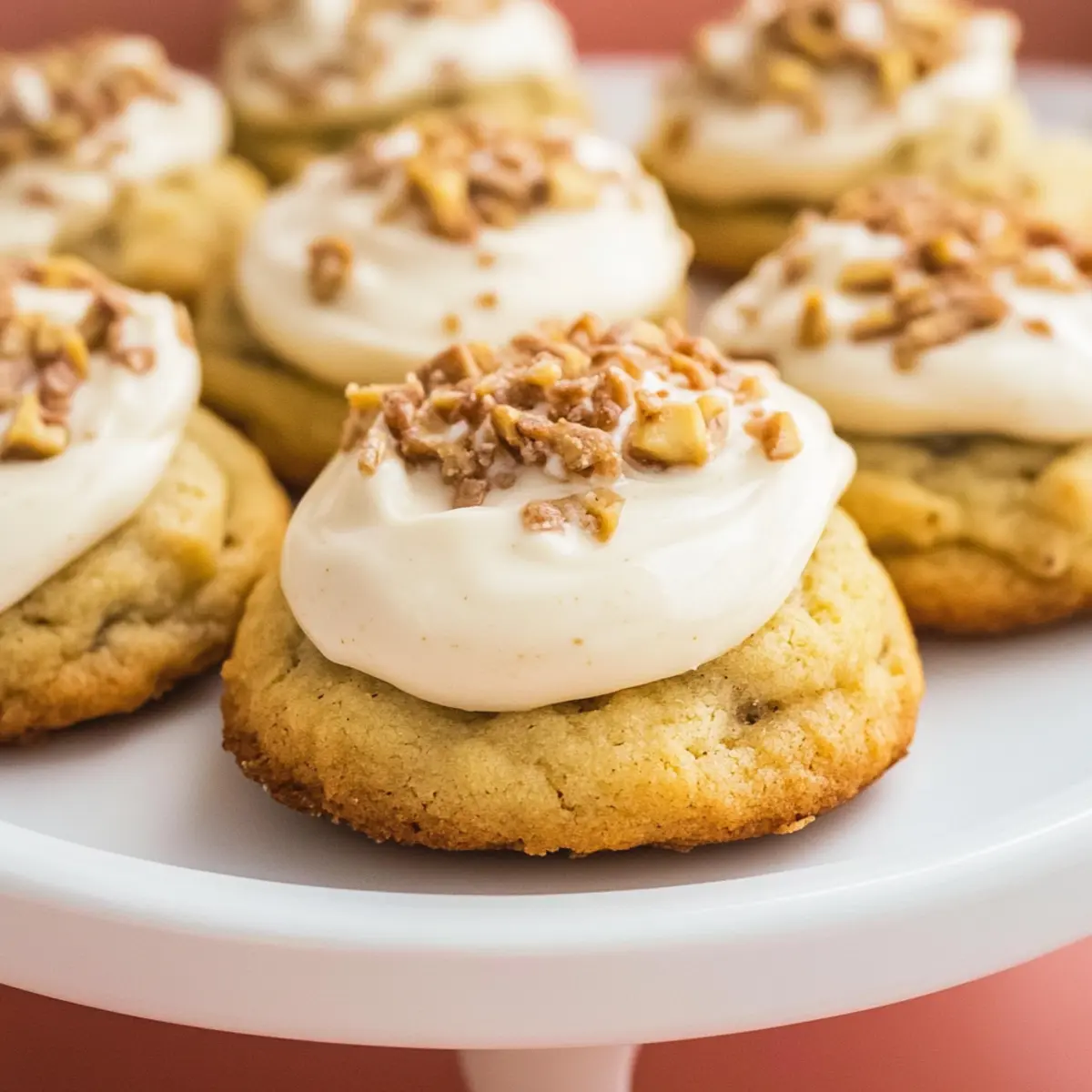 Once your Banana Bread Cookies have cooled completely, it’s time for the final touch! Using a spatula, frost the tops of each cookie generously with your cream cheese frosting. If you’d like, sprinkle with finely chopped pecans or walnuts for an added crunch and flavor boost. Enjoy making these delightful treats!