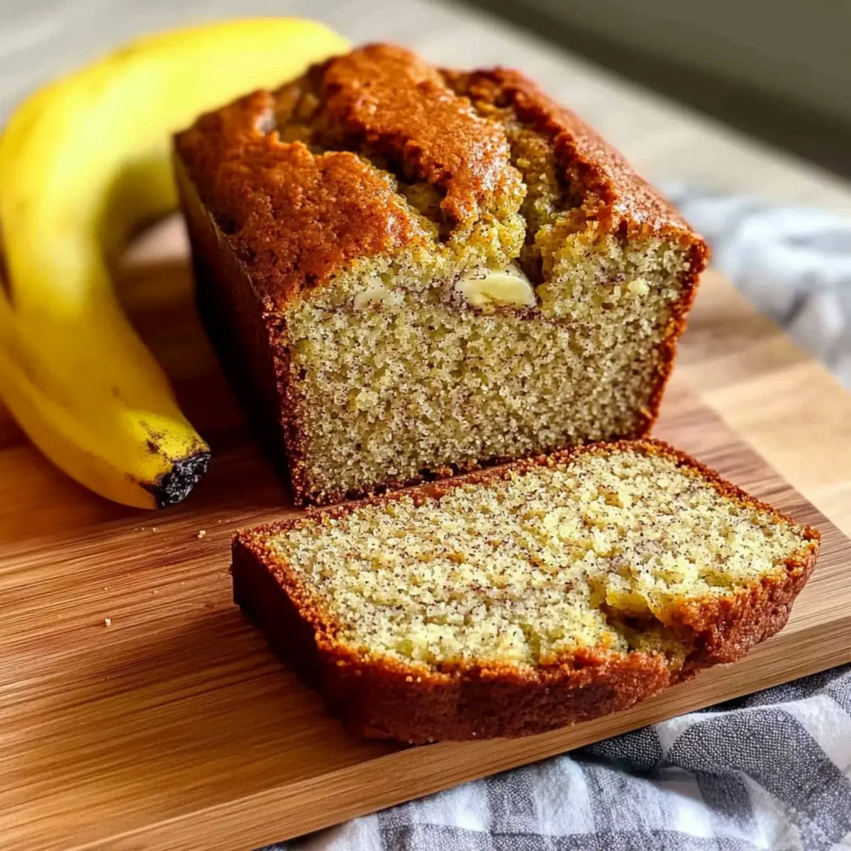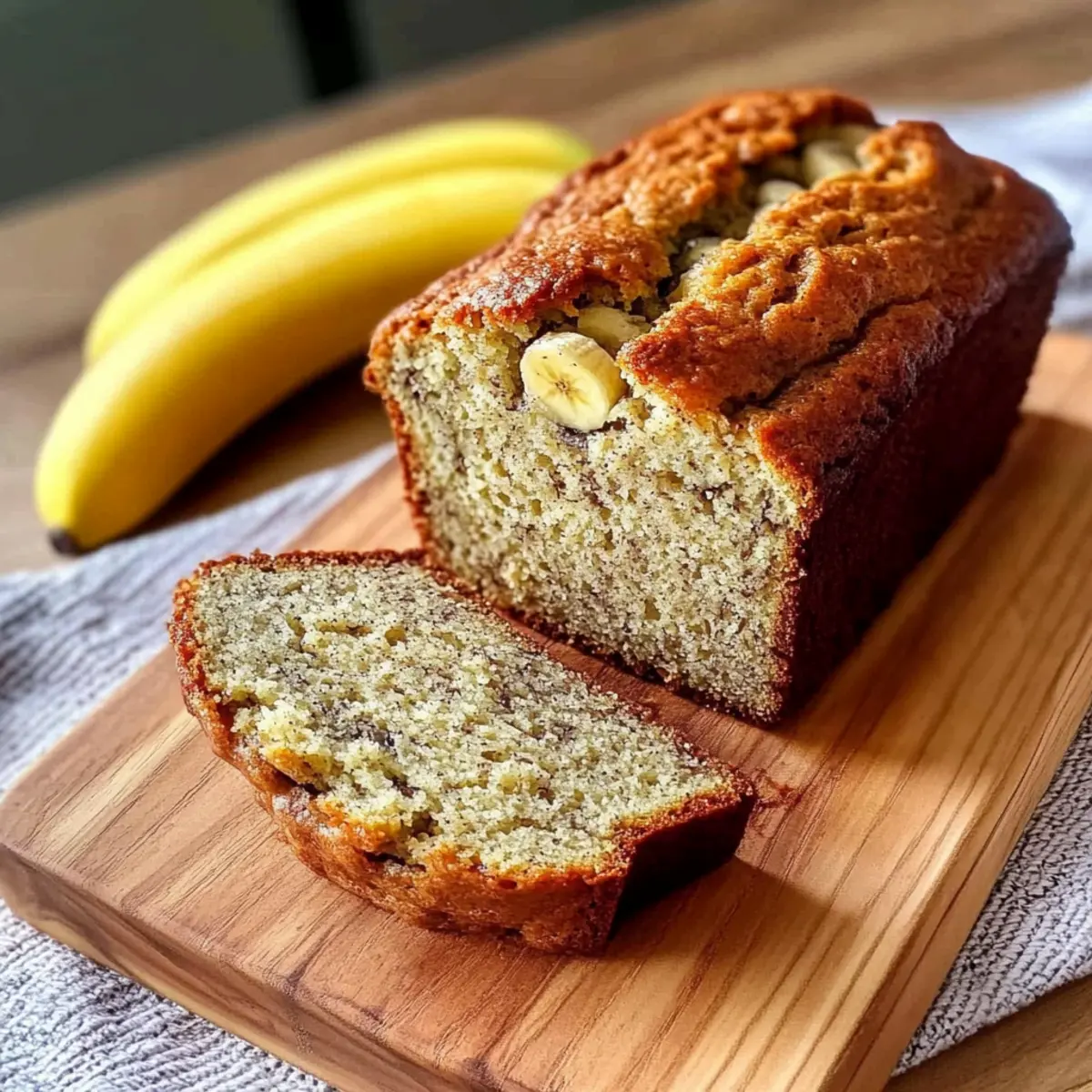 As I rummaged through my pantry one lazy afternoon, I stumbled upon a bunch of overripe bananas—destined for the compost heap, or so I thought. Instead, I decided to whip up a batch of Easy Banana Bread, and let me tell you, it transformed that moment of despair into a delightful kitchen triumph! This recipe is not only quick and simple, taking less than an hour to bake, but it also fills your home with an irresistibly warm aroma that beckons everyone to gather around. Perfect for breakfast, a snack, or even dessert, this banana bread offers endless possibilities for customization with add-ins like nuts or chocolate chips. Curious about how to create the perfect slice? Let’s dive into this comforting classic! Why is Banana Bread so Irresistible? Warm, inviting aroma: The smell of banana bread wafting through your kitchen is pure comfort, inviting family and friends to gather around. Quick and easy: This recipe can be whipped up and in the oven in less than 15 minutes! Versatile delights: Add your favorite mix-ins, like chocolate chips or walnuts, for a personalized touch. Nostalgic taste: This classic recipe will transport you back to cozy childhood memories. Save your overripe bananas with confidence, and check out my tips from the Easy Banana Bread for mixing it up! Banana Bread Ingredients For the Batter • Ripe Bananas – Use very ripe bananas for natural sweetness and moisture. • Melted Butter (unsalted) – Adds richness and contributes to a tender crumb; let it cool slightly before mixing. • Brown Sugar – Sweetens the bread; white sugar can be used as a substitute if necessary. • Large Eggs – Acts as a binder and helps with leavening; swap for ¼ cup of unsweetened applesauce for a vegan option. • Vanilla Extract – Enhances flavor; opt for pure vanilla for the best taste. • All-Purpose Flour – Forms the structure of the bread; avoid substituting with whole wheat flour for a lighter texture. • Baking Soda – Essential for a fluffy rise in the banana bread. • Salt – Balances the sweetness and enhances flavor; don’t skip this step. • Cinnamon – Adds warmth and depth of flavor, making it an optional yet delightful addition. For Optional Add-Ins • Chopped Walnuts or Chocolate Chips – These optional mix-ins add texture and flavor variation to your banana bread. Step‑by‑Step Instructions for Easy Banana Bread Step 1: Preheat and Prepare Pan Begin by preheating your oven to 350°F (175°C) for a perfectly baked banana bread. While the oven warms up, grease a 9×5-inch loaf pan with a bit of butter or cooking spray to ensure that your delicious creation releases easily after baking. Step 2: Mash the Bananas In a large mixing bowl, take your ripe bananas and mash them with a fork until they are mostly smooth, leaving a few lumps for delightful texture. This step not only breaks down the bananas but also releases their sweet aroma, making your kitchen feel cozy and inviting. Step 3: Mix in Wet Ingredients Pour in the melted unsalted butter to the mashed bananas and stir until well combined. Follow this by adding brown sugar, eggs, and vanilla extract. Mix these ingredients until you achieve a glossy, cohesive batter that highlights the sweetness of the banana bread. Step 4: Combine Dry Ingredients In a separate bowl, whisk together the all-purpose flour, baking soda, salt, and optional cinnamon. This blend of dry ingredients will help your banana bread achieve a soft rise and flavorful profile. Make sure to mix well, so every spoonful is evenly balanced. Step 5: Fold in Dry and Wet Mixtures Gently fold the dry mixture into the wet ingredients using a spatula, combining until just no flour streaks remain. It’s essential to avoid overmixing to keep your banana bread light and airy. You should see a slightly lumpy batter that promises soft slices. Step 6: Add Optional Mix-ins If you’re sprucing up your banana bread with walnuts or chocolate chips, this is the moment to fold them gently into the batter. The addition of these delightful chunks will offer a fun surprise in every bite, elevating your banana bread to new heights of flavor. Step 7: Transfer to Loaf Pan Carefully pour the batter into the prepared loaf pan, smoothing the top with a spatula for an even bake. For an appealing visual touch, you can lay sliced bananas on top, inviting everyone to enjoy this comforting, homemade treat. Step 8: Bake to Perfection Place your loaf pan in the preheated oven and bake for 50–60 minutes. You’ll know your banana bread is done when a toothpick inserted into the center comes out clean. If the top browns too quickly, cover it with a piece of foil to prevent burning. Step 9: Cool Before Slicing Once baked to perfection, let your banana bread cool in the pan for about 10 minutes. Then, carefully transfer it to a wire rack to cool completely. Waiting patiently will allow the flavors to settle, ensuring the best possible taste and texture when you slice into it. What to Serve with Easy Banana Bread? There’s nothing quite like pairing your warm, freshly baked creation with complementary sides that elevate the experience. Creamy Greek Yogurt: A dollop of creamy Greek yogurt adds a cool and tangy contrast, balancing sweetness while providing a protein boost. A delightful spoonful can transform a simple slice of banana bread into a mini breakfast parfait. Top it off with fresh berries for a burst of color and flavor. Nutty Granola: Serve banana bread alongside crunchy nutty granola for a satisfying texture contrast. This pairing not only enhances the fiber content but also adds an exciting crunch with every bite. Fresh Fruit Salad: A refreshing fruit salad provides a light and vibrant side to your banana bread. Consider including seasonal fruits like berries, melons, and citrus which bring brightness and a juicy sweetness that complements the baked treat splendidly. Honey Drizzle: A drizzle of honey over banana bread elevates the sweetness naturally, invi