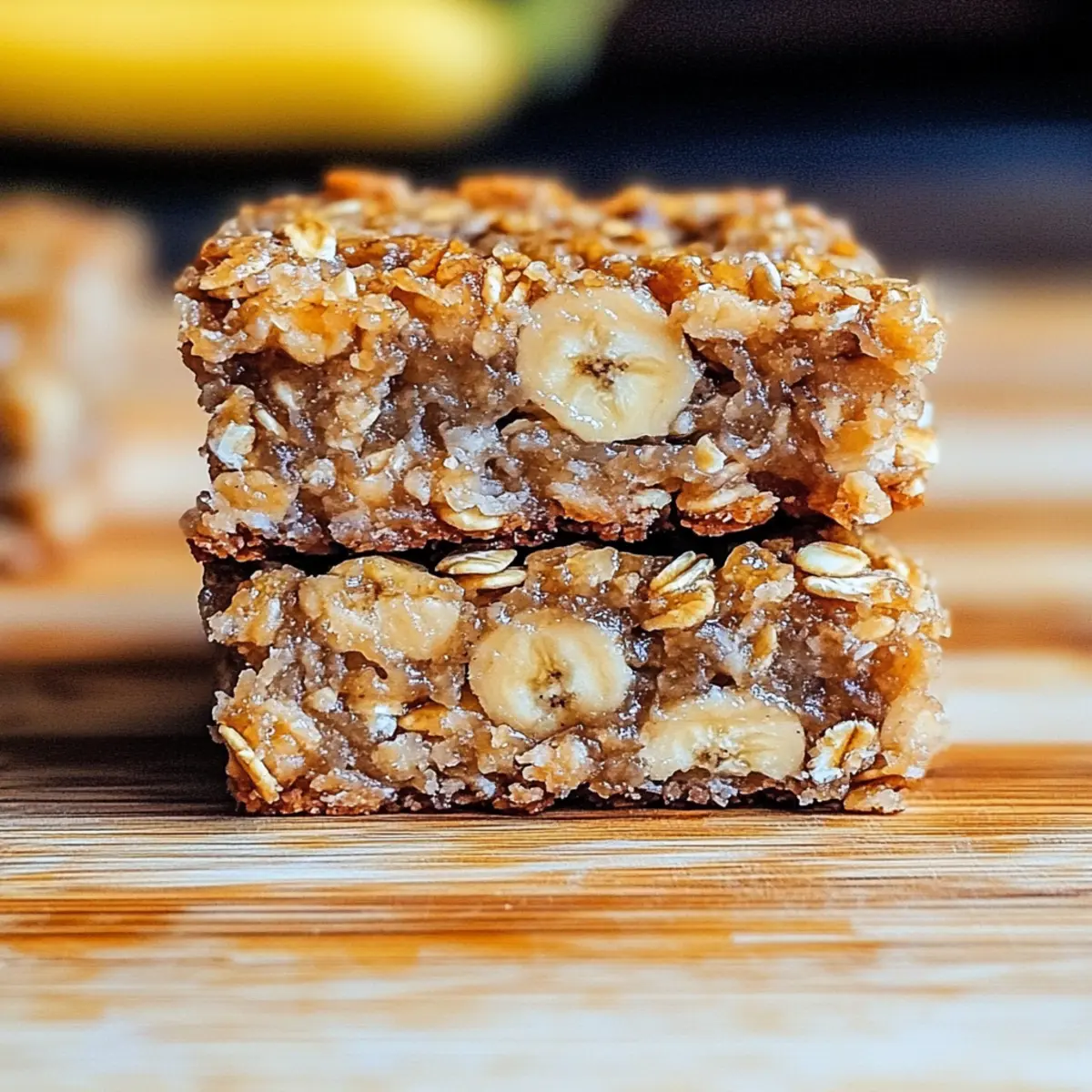 As the oven fills my kitchen with warmth and the irresistible scent of baking bananas, I can’t help but smile. These Banana Oatmeal Bars are my go-to solution for a homemade snack that caters to my cravings and busy schedule. They fuse sweet, ripe bananas with hearty oats, crafting a delightful treat that’s perfect for breakfast, a midday boost, or even dessert. What’s truly exciting is their versatility—customizable to suit your taste and dietary needs, whether you’re looking for a vegan alternative using maple syrup or gluten-free oats. Plus, they’re packed with fiber, making them a nutritious choice that leaves you feeling satisfied. Aren’t you curious to see how easy they are to whip up? Let’s dive into this delicious recipe together! Why Are Banana Oatmeal Bars So Amazing? Healthy Snacking: These bars offer a guilt-free way to satisfy your cravings without sacrificing flavor. Customizable Ingredients allow for endless variations; you can easily adapt it to your taste or dietary preferences. Whether you prefer a vegan option with maple syrup or regular with honey, you’ll love the flexibility! Quick and Easy: A simple mixing process makes these bars a breeze to prepare—perfect for busy days. Wholesome Appeal: Packed with fiber from oats and the natural sweetness of bananas, they keep you full and energized. Don’t forget to check out our Banana Pudding Rice for another delicious treat that complements these bars perfectly! Banana Oatmeal Bars Ingredients For the Bar Mixture Ripe Bananas – Provide natural sweetness and moisture; ensure they are very ripe for optimal flavor. Rolled Oats – Acts as the hearty base, adding structure and fiber; opt for certified gluten-free oats for those with gluten sensitivities. Honey or Maple Syrup – Adds the perfect sweetness; for a vegan option, substitute honey with maple syrup. Eggs – Binds all the ingredients together for structure; substitute with flax eggs for a vegan variation. Baking Powder – Ensures the bars rise, making them light and fluffy. Vanilla Extract – Enhances the overall flavor; it’s optional, but recommended for that extra touch of aromatic sweetness. For Optional Mix-Ins Nuts (e.g., walnuts, almonds) – Add crunchy texture and healthy fats; toasted nuts enhance the flavor profile. Chocolate Chips – Incorporate for a sweet treat; dark chocolate chips can add a delightful richness. Dried Fruits (e.g., raisins, cranberries) – Boost the nutritional value and add a chewy texture; they pair well with the banana’s sweetness. Spices (e.g., cinnamon, nutmeg) – Add warmth and depth to the bars; a sprinkle can enhance the overall flavor significantly. Enjoy creating your Banana Oatmeal Bars—a wholesome and delightful option for any time of the day! Step‑by‑Step Instructions for Banana Oatmeal Bars Step 1: Preheat the Oven Start by preheating your oven to 350°F (175°C). This is a crucial step to ensure that your Banana Oatmeal Bars bake evenly. As the oven warms up, gather your mixing bowls and measuring tools, so you’re ready to dive into the mixing process without delay. Step 2: Mash the Bananas In a medium mixing bowl, take your perfectly ripe bananas and mash them with a fork until they reach a smooth consistency. Aim for a creamy texture with no lumps, as this will contribute to the moisture and sweetness of your Banana Oatmeal Bars. This step should take about 3-5 minutes. Step 3: Mix the Ingredients Add rolled oats, honey or maple syrup, eggs, baking powder, and vanilla extract to the mashed bananas. Stir the mixture until well combined and uniform—this will create the delicious base for your bars. You’ll know it’s ready when all the ingredients are fully incorporated, and the mixture is slightly thick and sticky. Step 4: Prepare the Baking Dish Grab an 8×8-inch baking dish and grease it lightly with cooking spray or line it with parchment paper. This will prevent your Banana Oatmeal Bars from sticking and ensure easy removal after baking. Take a moment to make sure the dish is well-prepared for the abundant goodness coming next. Step 5: Bake the Mixture Pour the banana and oat mixture into the prepared baking dish, spreading it evenly with a spatula. Place it in the preheated oven and bake for 25-30 minutes. Keep an eye on them—you’re looking for a golden-brown top and a toothpick inserted into the center to come out clean, signaling they’re perfectly done. Step 6: Cool and Cut Once baked, remove the dish from the oven and let the bars cool in the pan for at least 10 minutes. This cooling period helps firm up the bars for slicing. After resting, use a sharp knife to cut them into squares; they should hold their shape nicely, showcasing the chewy texture of these Banana Oatmeal Bars. How to Store and Freeze Banana Oatmeal Bars Room Temperature: Keep your Banana Oatmeal Bars in an airtight container at room temperature for up to 3 days. This makes for quick and easy snacking throughout the week! Fridge: For extended freshness, store the bars in the refrigerator for up to a week. Just make sure they’re tightly wrapped or in a suitable container to maintain their texture. Freezer: To preserve your Banana Oatmeal Bars for longer, freeze them in individual portions wrapped in plastic wrap or placed in a freezer-safe bag. They can be stored for up to 3 months. Reheating: When you’re ready to enjoy a frozen bar, simply thaw it in the refrigerator overnight or microwave it for about 20-30 seconds for a warm treat! What to Serve with Irresistible Healthy Banana Oatmeal Bars Elevate your Banana Oatmeal Bars into a delightful meal experience with these perfect pairing ideas that will satisfy your cravings. Creamy Greek Yogurt: A dollop of Greek yogurt adds a refreshing creaminess and pairs beautifully with the sweetness of the bars. Drizzle with honey for extra indulgence! Fresh Fruit Salad: Brighten your plate with a colorful mix of berries, melon, and citrus. The juicy fresh