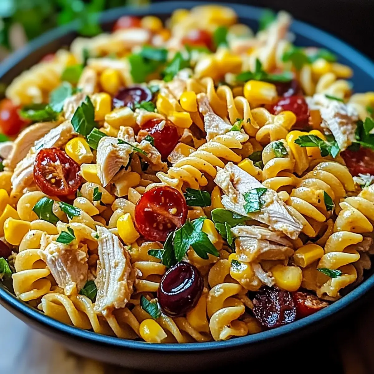 The air was thick with the sweet scent of grilled goodness, and it got me reminiscing about those carefree summer barbecues with friends. That’s how I landed on this vibrant BBQ Chicken Ranch Pasta Salad, a dish that perfectly balances smoky flavors with creamy ranch dressing. If you’re looking for a quick meal that can star at any summer gathering, this salad is your go-to! Packed with juicy tomatoes, tender chicken, and cheerful corn, it delivers on both taste and texture while taking just 45 minutes to whip up. Plus, it’s incredibly versatile—perfect for meal prep or customizing to fit your family’s preferences. Are you ready to elevate your warm-weather dining with this delightful dish? Why is BBQ Chicken Ranch Pasta Salad a Must-Try? Unmatched Flavors: The smoky BBQ sauce paired with creamy ranch dressing brings a burst of flavor that evokes summer nostalgia. Quick to Prepare: In just 45 minutes, you can whip up this delicious salad, making it perfect for busy days. Versatile Ingredients: Customize with your favorite veggies or substitute for healthier options like whole wheat pasta or Greek yogurt. Crowd-Pleasing Dish: Serve it at picnics, barbecues, or potlucks, and watch it disappear in no time! Meal Prep Friendly: Make it ahead and enjoy chilled leftovers—perfect for those warm summer days! Elevate your summer dining with this vibrant BBQ Chicken Ranch Pasta Salad—it’s sure to impress! BBQ Chicken Ranch Pasta Salad Ingredients • Ready to dive into a delightful dish? Here’s what you’ll need! For the Pasta Base Rotini Pasta – Provides structure and acts as the main carbohydrate; substitute with whole wheat pasta for a healthier option. Cooked Chicken (shredded) – Adds protein and heartiness; any leftover rotisserie chicken works beautifully. For the Veggies Cherry Tomatoes – Contributes juiciness and a slight sweetness; you can swap with diced red tomatoes if those are not available. Corn (canned or frozen) – Adds sweetness and texture; fresh corn is a great seasonal alternative. Red Onion (finely chopped) – Offers a crunchy bite and sharp flavor contrast; feel free to use green onions for a milder profile. For Creaminess and Flavor Shredded Cheddar Cheese – Introduces creaminess and richness; opt for reduced-fat cheese for a lighter touch. Ranch Dressing – Serves as the creamy base of the salad; consider Greek yogurt mixed with herbs for a healthier substitute. BBQ Sauce – Infuses the dish with its signature flavor; choose your favorite brand or make your own from scratch. Finishing Touches Salt and Pepper to taste – Essential for seasoning; always adjust according to your liking. Fresh Cilantro or Parsley (optional) – Adds a fresh garnish and brightens the flavors of the salad. With these ingredients, you’re on your way to creating a delicious BBQ Chicken Ranch Pasta Salad that’s perfect for any summer occasion! Step‑by‑Step Instructions for BBQ Chicken Ranch Pasta Salad Step 1: Cook the Pasta Bring a large pot of salted water to a boil over high heat. Add the rotini pasta and cook for 8-10 minutes, or until al dente, stirring occasionally. Once cooked, drain the pasta in a colander and rinse it under cold water to stop the cooking process. This cooling step will prevent the pasta from becoming mushy in your BBQ Chicken Ranch Pasta Salad. Step 2: Combine Main Ingredients In a spacious mixing bowl, combine the cooled rotini pasta with shredded chicken, halved cherry tomatoes, corn (canned or frozen), and finely chopped red onion. Gently mix these ingredients together, ensuring they are evenly distributed. The vibrant colors of the veggies will add visual appeal, making your BBQ Chicken Ranch Pasta Salad a feast for the eyes as well as the palate. Step 3: Prepare the Dressing In a separate bowl, whisk together the ranch dressing and BBQ sauce until fully blended. Aim for a smooth consistency, ensuring no clumps remain. This flavorful dressing will bring all the elements of your BBQ Chicken Ranch Pasta Salad together and enhance the taste profile of the dish. Step 4: Toss the Salad Pour the creamy dressing mixture over the pasta and chicken combination. Using a spatula or large spoon, gently toss all the ingredients together until everything is well-coated with the dressing. This step is crucial to ensure each bite of your BBQ Chicken Ranch Pasta Salad is bursting with flavor. Step 5: Season and Chill Season the salad with salt and pepper to taste, adjusting the flavors to your preference. Once seasoned, cover the bowl with plastic wrap or a lid, and refrigerate for at least 30 minutes. Chilling allows the flavors to meld beautifully, resulting in a more delicious BBQ Chicken Ranch Pasta Salad. Step 6: Final Touches Before Serving After chilling, remove the salad from the fridge and give it a gentle stir to redistribute the dressing. If desired, garnish with freshly chopped cilantro or parsley for a pop of color and freshness. This final touch brightens your BBQ Chicken Ranch Pasta Salad, making it even more enticing for your summer gatherings. Make Ahead Options These BBQ Chicken Ranch Pasta Salad preparations are perfect for busy weeknights! You can cook the rotini pasta and shred the chicken up to 24 hours in advance, and then simply combine them with the veggies right before serving. The salad can be stored in the refrigerator for up to 3 days, keeping the flavors fresh and delightful. To maintain quality, consider adding the dressing just before serving to prevent the pasta from absorbing too much moisture. When you’re ready to enjoy this meal, simply toss everything together, garnish with fresh herbs, and serve for a deliciously satisfying dish with minimal effort! What to Serve with BBQ Chicken Ranch Pasta Salad Elevate your summer dining experience with delicious side dishes and refreshing drinks that complement this vibrant pasta salad. Grilled Veggies: The smoky char from grilled zucchini and bell peppers adds depth to y