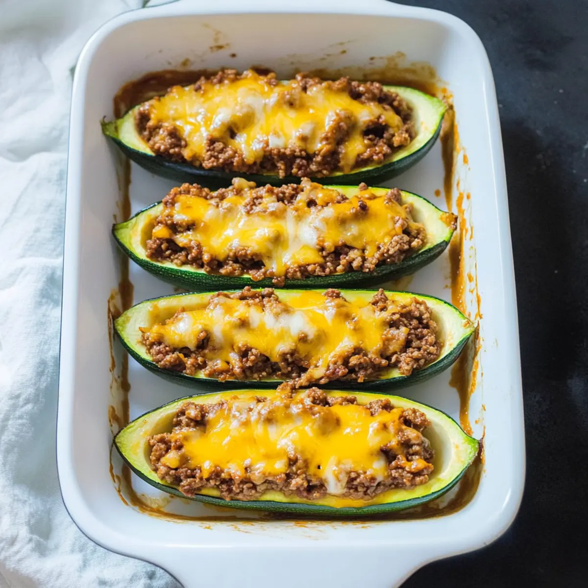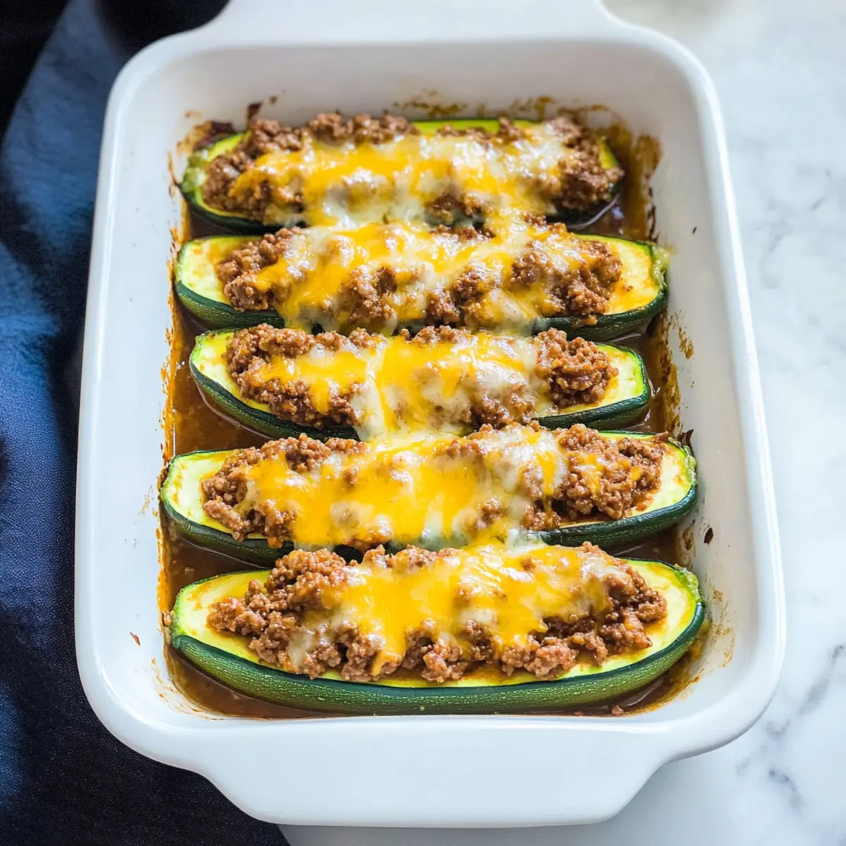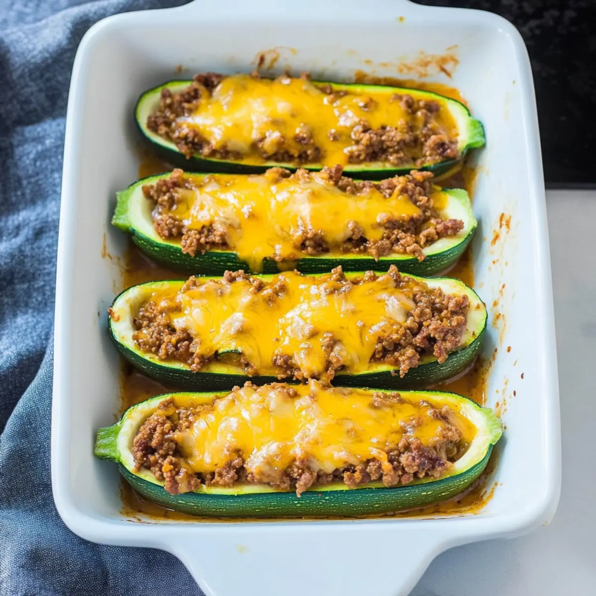 As I stood in my kitchen, the delightful scent of sautéed onions and garlic danced through the air, instantly whisking me to cozy family dinners filled with laughter and love. These Beef Stuffed Zucchini Boats are my go-to dish for a hearty yet healthy meal that’s both low-carb and gluten-free. The best part? They seamlessly capture the rich flavors of comforting classics like lasagna, all while keeping the carbs at bay. Whether you’re trying to satisfy picky eaters or whip up a quick weeknight dinner, this recipe is a winner. With just a handful of ingredients and a simple preparation method, you can create a satisfying dish that’s sure to impress. Ready to take your dinner game to the next level with this delightful twist on traditional fare? Why Are Beef Stuffed Zucchini Boats Amazing? Flavorful Explosion: Each bite of these zucchini boats is packed with savory ground beef, rich marinara, and melted cheese that will keep your taste buds dancing. Healthy Twist: Enjoy all the heartiness of a lasagna without the carbs—perfect for those on a keto or gluten-free diet. Easy to Make: With just a few simple ingredients and straightforward steps, you can have a delicious meal ready in under an hour! Versatile: Customize with your favorite veggies or sauces, whether you want a Mexican flair or stick to classic Italian flavors. Use leftovers from these Savory Ground Beef evening meals for an extra twist! Crowd-Pleaser: Satisfy everyone at the table, including picky eaters, while serving a wholesome, low-carb option that makes dinner fun. Beef Stuffed Zucchini Boats Ingredients • To create these delicious Beef Stuffed Zucchini Boats, gather the following ingredients for a wholesome meal! For the Zucchini Zucchini (6-8 medium) – These are the boats that hold all the delicious filling and provide a low-carb alternative to pasta. For the Filling Ground Beef (1 pound) – This hearty protein brings richness to the filling; swap for turkey or plant-based options for a lighter version. Olive Oil (1 tablespoon) – A healthy fat that aids in sautéing your vegetables without compromising flavor. Onion (1/2 cup, chopped) – This aromatic base adds sweetness and flavor; shallots can be used for a milder experience. Garlic (2 cloves, minced) – Intensifies the taste; can be omitted if preferred for a lighter flavor. Marinara Sauce (1 cup) – Acts as a key binder for the filling, contributing both moisture and flavor; feel free to use homemade for a fresher taste! Italian Seasoning (1 tablespoon) – This blend of herbs brings a romantic Italian flair; opt for fresh herbs if you have them for an even bolder flavor. Salt (1/4 teaspoon) and Pepper (1/4 teaspoon) – Essential seasonings to enhance the overall flavor; adjust to suit your taste. For the Topping Shredded Cheese (1 cup, low-fat cheddar or mozzarella) – Melting cheese adds creaminess and flavor; substitute with Parmesan or dairy-free alternatives if desired. With these ingredients, you’re set to craft mouthwatering Beef Stuffed Zucchini Boats that are not only delicious but also align with your healthy eating goals! Step‑by‑Step Instructions for Beef Stuffed Zucchini Boats Step 1: Prepare Zucchini Preheat your oven to 375°F (190°C). While the oven heats, take 6-8 medium zucchinis and slice them in half lengthwise. Using a spoon, carefully scoop out the insides to create “boats,” leaving a sturdy shell. Reserve the flesh for later. Arrange these zucchini halves on a baking sheet, cut side up, ready for their savory filling. Step 2: Cook Vegetables In a large skillet, heat 1 tablespoon of olive oil over medium heat. Add ½ cup of chopped onions and sauté until they turn golden and translucent, which takes about 2-3 minutes. Stir in 2 minced garlic cloves and cook for an additional minute until fragrant. The mixture should smell deliciously appetizing! Step 3: Cook Beef Add 1 pound of ground beef to the skillet with the sautéed vegetables. Cook the beef and break it apart with a spatula, stirring occasionally, until it’s browned and fully cooked, about 3-5 minutes. Ensure no pink remains, and drain any excess grease if necessary. This savory beef will be the heart of your Beef Stuffed Zucchini Boats. Step 4: Make Filling To the browned beef, add 1 cup of marinara sauce, the reserved zucchini flesh, 1 tablespoon of Italian seasoning, and a pinch of salt and pepper. Allow this mixture to simmer over low heat for about 8-10 minutes, stirring occasionally. The filling should thicken slightly and become deeply flavorful, perfect for stuffing those zucchini boats. Step 5: Stuff Zucchini Carefully spoon the flavorful meat mixture into each hollowed zucchini half, packing it generously. Once filled, sprinkle 1 cup of shredded low-fat cheddar or mozzarella cheese evenly over the top of each stuffed zucchini. The cheese adds a delicious melty layer, ensuring each bite of Beef Stuffed Zucchini Boats is savory and satisfying. Step 6: Bake Transfer the baking sheet with the stuffed zucchini boats to the preheated oven. Bake for 15-20 minutes, or until the cheese is melted and bubbly, creating a beautiful golden crust on top. The zucchini should be tender yet still hold its shape, providing the perfect vessel for your scrumptious filling. Beef Stuffed Zucchini Boats Variations Feel free to put your own spin on these delicious Beef Stuffed Zucchini Boats; the possibilities are endless! Dairy-Free: Swap traditional cheese for a dairy-free alternative like cashew cheese or nutritional yeast for a creamy finish. Spicy Kick: Add chopped jalapeños or red pepper flakes to the beef mixture for a delightful heat that elevates the flavor. Embrace the warmth! Herb Infusion: Mix in fresh parsley or basil just before serving for a burst of freshness that brightens every bite. Veggie-Packed: Toss in finely diced bell peppers or spinach into the meat mixture for extra nutrition and a pop of color. Southwest Flair: Use taco seasoning in place of