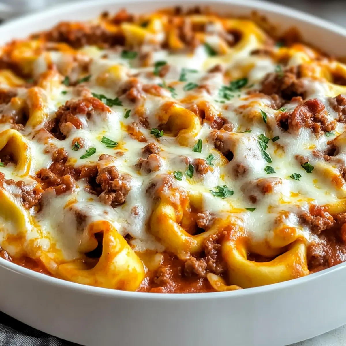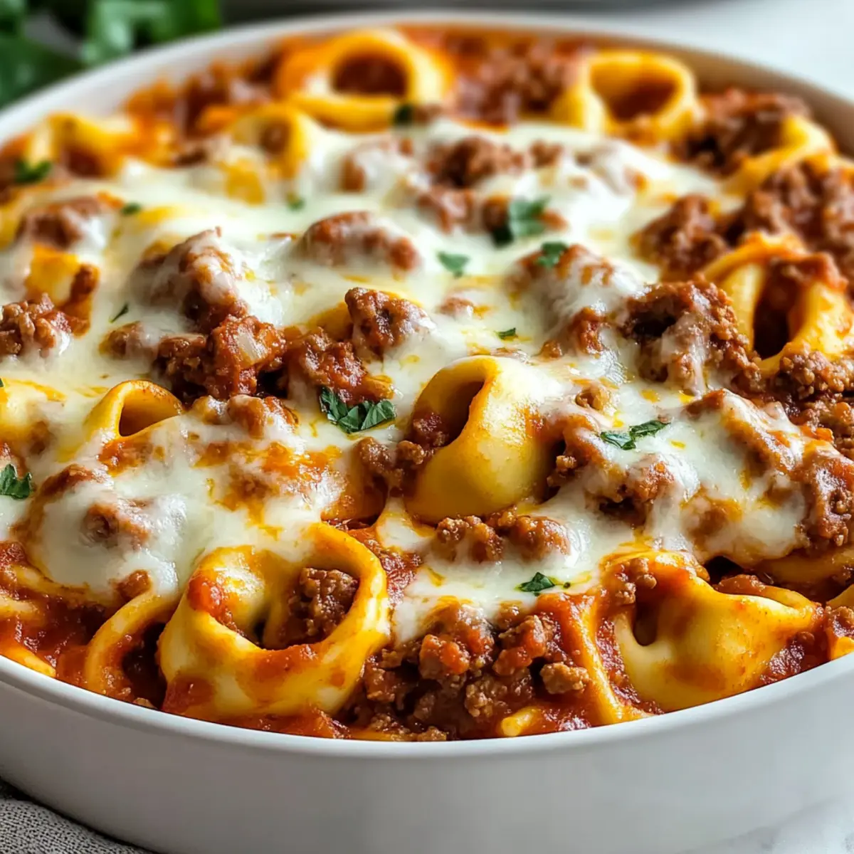 The faint aroma of simmering garlic and savory beef wafts through my kitchen as I prepare for a cozy evening of indulgence. Enter the Irresistible Beefy Tortellini Bake, a dish that wraps you in warmth with its tender tortellini, rich sauce, and gooey cheese. What’s not to love? In just 45 minutes, this comforting Italian dish transforms simple ingredients into a hearty meal that even the busiest families can appreciate. Plus, it’s customizable—swap in turkey, chicken, or even mushrooms for a fun twist! Perfect for those nights when you want a satisfying dinner without the hassle, this low-cal comfort food is sure to become a beloved staple in your home. Are you ready to dive into the comforting depths of this delicious bake? Let’s get started! Why is Beefy Tortellini Bake Irresistible? Cozy Comfort: This dish is the epitome of warmth and comfort, making it perfect for family nights or chilly evenings. Quick to Prepare: Ready in just 45 minutes, it’s an ideal solution for busy weeknights when time is limited. Customizable: Easily adapt the recipe with ground turkey, chicken, or a vegetarian twist using mushrooms or lentils, ensuring everyone is happy at the table! Cheesy Goodness: The gooey mozzarella topping creates a delightful golden crust that’s impossible to resist. Pair it with a simple green salad or warm garlic bread for a balanced meal. Crowd-Pleaser: This dish is sure to impress with its rich flavors, making it a hit with both family and friends! If you’re looking for more comforting ideas, check out my Taco Pasta Bake or the Sweet Potato Bake for wonderful variations! Beefy Tortellini Bake Ingredients • Get ready to create your cozy dinner! For the Bake Ground Beef – This is the main protein source, but feel free to substitute with ground turkey or chicken for a lighter dish; for a vegetarian option, sautéed mushrooms or lentils work beautifully. Chopped Onion – Adds a subtle sweetness and depth; no substitute needed, but you can omit if preferred. Minced Garlic – Enhances flavor dramatically; fresh garlic is ideal, though powdered garlic can be a quick alternative. Crushed Tomatoes – Serves as the vibrant base for the sauce; opt for canned crushed tomatoes for convenience, while fresh tomatoes can work if fully cooked down. Beef Broth – Boosts the moisture and richness in the sauce; swap for vegetable broth for a lighter or vegetarian-friendly dish. Italian Seasoning – Imparts those classic Italian flavors; you can replace it with a mix of dried herbs like oregano and basil if needed. Salt and Pepper – Essential for that perfect seasoning; adjust based on your taste preferences. Refrigerated Cheese Tortellini – The star of the dish providing those creamy, hearty bites; fresh tortellini is recommended, and remember to freeze if not using right away. Shredded Mozzarella Cheese – Adds a gooey topping; part-skim mozzarella is a lower-calorie option, or use cheddar for a fun twist. Each ingredient plays a significant role in crafting the comforting magic of this Beefy Tortellini Bake. Let the aromas fill your kitchen as you prepare this delightful dish that’s bound to become a family favorite! Step‑by‑Step Instructions for Beefy Tortellini Bake Step 1: Preheat Your Oven Start by preheating your oven to 375°F (190°C). This will ensure it’s hot and ready to create that deliciously gooey crust on your Beefy Tortellini Bake. While the oven warms up, gather your ingredients and get your large skillet ready for the next steps. Step 2: Cook the Ground Beef In a large skillet over medium heat, add the ground beef. As it cooks, break it apart with a spatula for even browning. Once the beef starts to brown, approximately 5 minutes in, add the chopped onion and minced garlic. Sauté everything together for another 5-7 minutes until the meat is fully cooked and the onion is translucent. Step 3: Create the Sauce Stir in the crushed tomatoes, beef broth, Italian seasoning, salt, and pepper into your beef mixture. Bring this to a gentle simmer, letting the flavors meld together for about 10 minutes. You’ll know it’s ready when the sauce thickens slightly and starts bubbling invitingly. Step 4: Mix in the Tortellini and Cheese Add the refrigerated cheese tortellini to the simmering sauce, folding gently to incorporate. Mix in half of the shredded mozzarella cheese, stirring well until the tortellini is coated and the mixture appears thick and hearty. This is the heart of your Beefy Tortellini Bake! Step 5: Transfer to Baking Dish Carefully pour the beef and tortellini mixture into a large baking dish, spreading it evenly with a spatula. Make sure it’s well-distributed for even baking. Prepping for the oven, sprinkle the remaining mozzarella cheese generously on top, adding a little extra Italian seasoning if you desire for more flavor. Step 6: Bake to Perfection Pop the baking dish into your preheated oven and bake for 25-30 minutes. Keep an eye on it, and watch as the cheese bubbles and turns golden brown; this is the perfect indicator that your Beefy Tortellini Bake is ready to delight family and friends! Beefy Tortellini Bake Variations Feel free to let your creativity shine with these fun variations that will take your Beefy Tortellini Bake to the next level! Ground Turkey: Swap ground beef for lean ground turkey for a lighter option without sacrificing flavor. It’s a perfect alternative for those looking to cut down on calories. Chicken Love: Use ground or shredded chicken in place of beef for a different protein twist. The chicken pairs beautifully with the cheesy blend and adds its own unique flavor. Vegetarian Delight: Replace meat entirely with sautéed mushrooms or cooked lentils. Both options offer a hearty texture while ensuring everyone can indulge. Flavor Boost: Add chopped spinach or kale for an extra nutritional punch. These leafy greens blend seamlessly into the bake, enhancing both flavor and color. Veggie Medley: Toss in dice