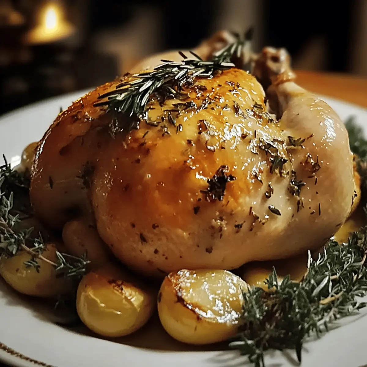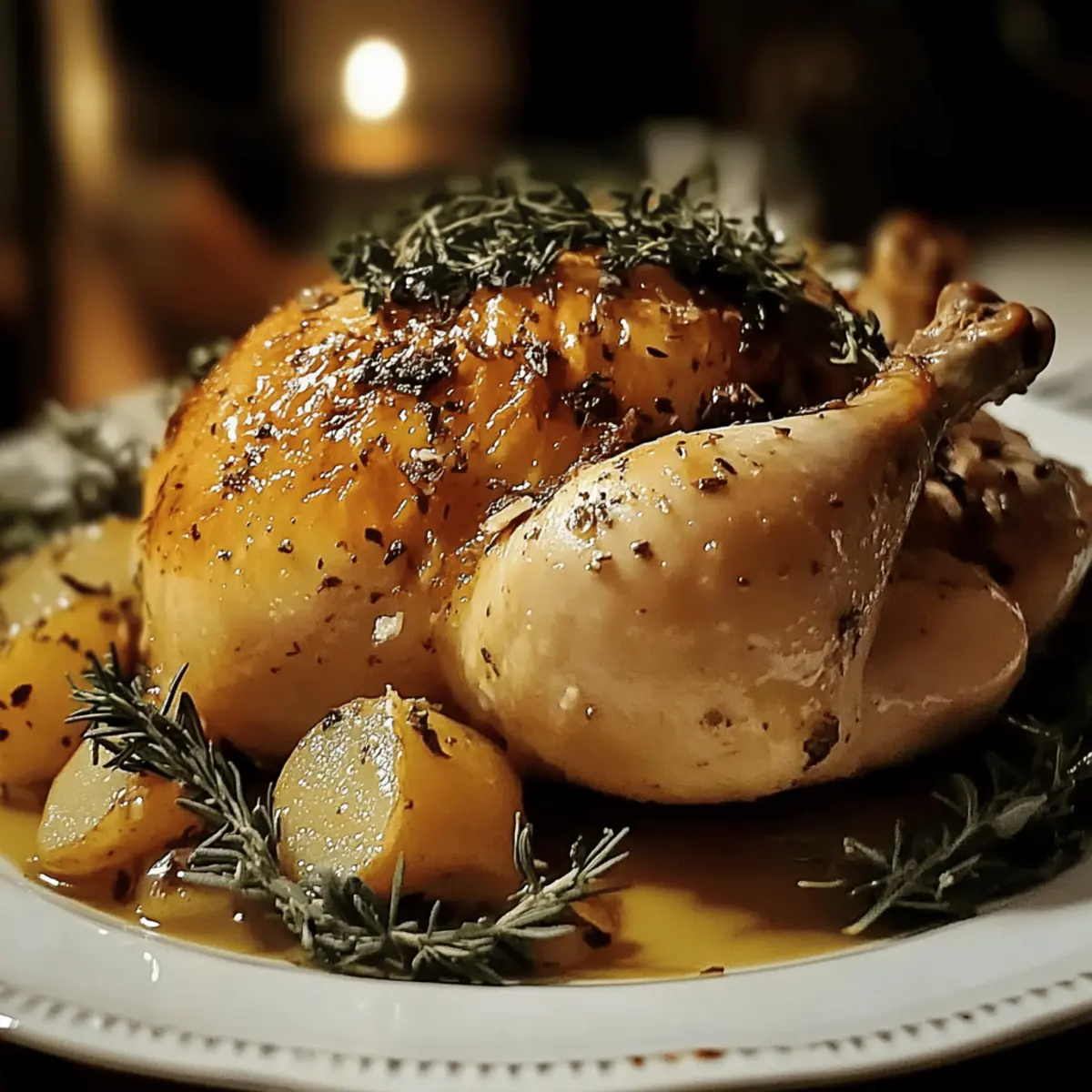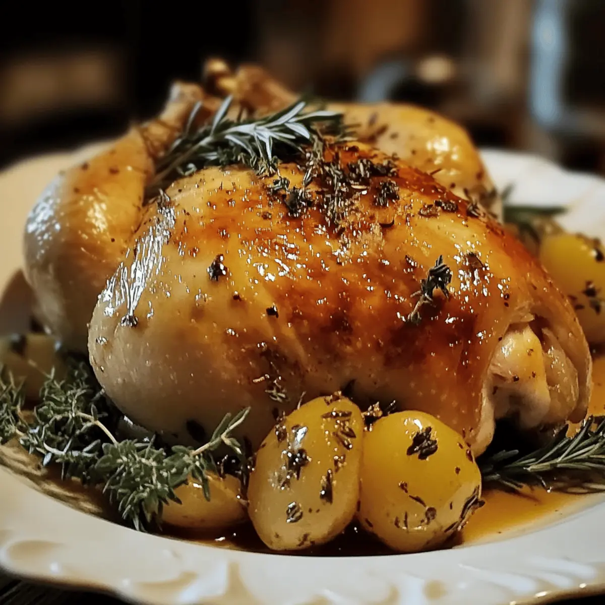The moment I lifted the lid off my roasting pan, a wave of fragrant herbs cascaded through the kitchen, whispering promises of cozy family gatherings to come. This Best Juicy Roast Chicken with Herbs is truly a holiday centerpiece, radiating warmth and love, effortlessly transforming any meal into a celebration. With minimal prep time, you’ll have more moments to savor with your loved ones, all while treating them to a symphony of flavors from fresh rosemary, thyme, and aromatic garlic. Whether it’s for a festive feast or just a comforting Sunday dinner, this dish ensures juicy, tender meat enveloped in crisp, golden skin. Can you already imagine the smiles around your table? Let’s dive into how to create this culinary masterpiece together! Why is this the best roast chicken recipe? Flavor Explosion: Every bite is infused with vibrant herbs and zesty lemon, creating a delightful symphony that excites your taste buds. Crowd-Pleaser: This roast chicken is an undeniable favorite at gatherings, sure to impress both friends and family with its inviting aroma and beautiful presentation. Simplicity Meets Elegance: With just a few easy-to-follow steps, you can create a gourmet dish that looks as impressive as it tastes, making it perfect for any occasion. Versatile Pairing: Enjoy it alongside creamy mashed potatoes, garlic green beans, or your favorite festive sides, ensuring everyone leaves the table satisfied. Time-Saving Prep: Minimal effort goes into the prep, so you can focus more on making memories at the dinner table instead of slaving away in the kitchen! Best Juicy Roast Chicken with Herbs Ingredients For the Chicken Whole Chicken (4-5 lbs) – The centerpiece of your meal; ensure it’s fresh for the best flavor. Sea Salt (1 tablespoon) – Essential for enhancing the chicken’s taste; feel free to adjust according to your preference. Black Pepper (1 teaspoon, freshly ground) – Adds warmth and a layer of flavor to the dish; freshly ground is best for a stronger taste. For the Herb Mixture Fresh Rosemary – Provides a delightful aroma and festive flavor; can be substituted with sage for a different twist. Fresh Thyme – Complements the chicken beautifully; swap it with oregano or basil for an alternative herbaceous profile. Garlic (4 cloves, crushed) – Elevates the dish with its rich flavor; fresh garlic will give the best aroma. Softened Butter (4 tablespoons) – Helps create a rich, herb-infused spread; for dairy-free options, use olive oil. Olive Oil (2 tablespoons) – Assists in achieving a crispy skin; butter can also be used for added richness. For the Lemon Flavor Medium Lemon (zested and sliced) – Adds acidity and brightness to the dish; consider using oranges for a sweeter, citrusy note. For Roasting Vegetables Medium Onion (quartered) – Enhances the roasting flavors; shallots can be a great sweet substitute. Medium Carrots (2, roughly chopped) – Adds a touch of natural sweetness and a beautiful color; feel free to add other root veggies. Celery Stalks (2, roughly chopped) – Complements the aromatics; while optional, it enriches the flavor profile. Delight in crafting the Best Juicy Roast Chicken with Herbs and savor a comforting experience around the dinner table! Step‑by‑Step Instructions for Best Juicy Roast Chicken with Herbs Step 1: Preheat the Oven Begin by preheating your oven to 425°F (220°C). This high temperature ensures that the skin of your Best Juicy Roast Chicken with Herbs crisps up beautifully while the inside stays moist and tender. While the oven heats, gather your ingredients and equipment, including a roasting pan, mixing bowl, and a basting brush. Step 2: Prepare the Herb Butter In a mixing bowl, blend together the softened butter, crushed garlic, chopped rosemary, thyme, and lemon zest until smooth and well combined. This fragrant herb butter will infuse your roast chicken with incredible flavor. Set aside half of the mixture for later use, ensuring it’s easily accessible when it’s time to season the chicken. Step 3: Season the Chicken Take your whole chicken and pat it dry with paper towels; this will help achieve crisp skin. Generously season the chicken’s exterior with sea salt and freshly ground black pepper. Gently loosen the skin around the breast to spread half of the prepared herb butter underneath, allowing the flavors to permeate the meat during roasting. Step 4: Stuff the Chicken Next, insert slices of lemon and any remaining crushed garlic cloves into the cavity of the chicken. This step adds a zesty flavor that complements the herbs beautifully. To secure the chicken, tie its legs together with butcher’s twine and brush the outside of the bird with the remaining herb butter, ensuring an even coating for enhanced flavor and crispiness. Step 5: Arrange Vegetables Place the chicken in the center of a roasting pan, surrounded by your roughly chopped carrots, quartered onion, and celery stalks. These vegetables not only add depth to the flavor of the chicken but also create a delicious base for the dish. Arrange them around the chicken to ensure they roast evenly and soak up the savory juices. Step 6: Roast the Chicken Slide the roasting pan into the preheated oven and roast for approximately 1 hour and 15 minutes. You’ll know your Best Juicy Roast Chicken with Herbs is ready when the skin turns golden brown and the internal temperature reaches 165°F (75°C) at the thickest part. Keep an eye on it, as oven temperatures can vary, and the skin should be perfectly crisp. Step 7: Rest Before Carving Once your chicken has finished roasting, remove it from the oven and tent it loosely with aluminum foil. Allow the chicken to rest for about 15 minutes. This crucial resting period lets the juices redistribute throughout the meat, ensuring each slice is tender and moist. Now is the perfect time to prepare your sides and set the table! How to Store and Freeze Best Juicy Roast Chicken with Herbs Fridge: Store leftover c