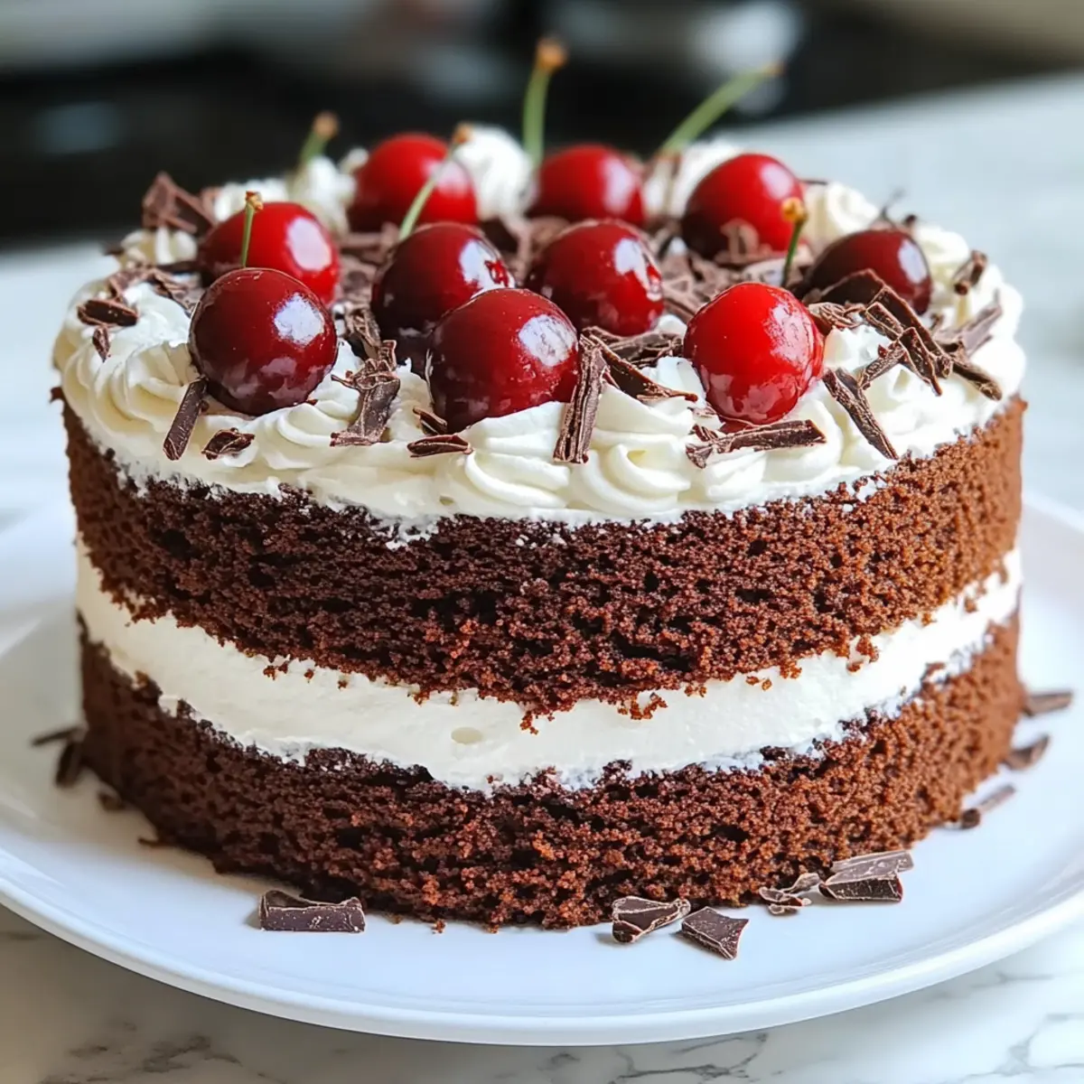 I recommend chilling the assembled Black Forest Cake for at least 2-3 hours before serving. This allows the flavors to meld beautifully, resulting in a more cohesive dessert. The chilling will also help the whipped cream and cherry filling settle nicely in between the layers, creating a stunning presentation and easier slicing!
