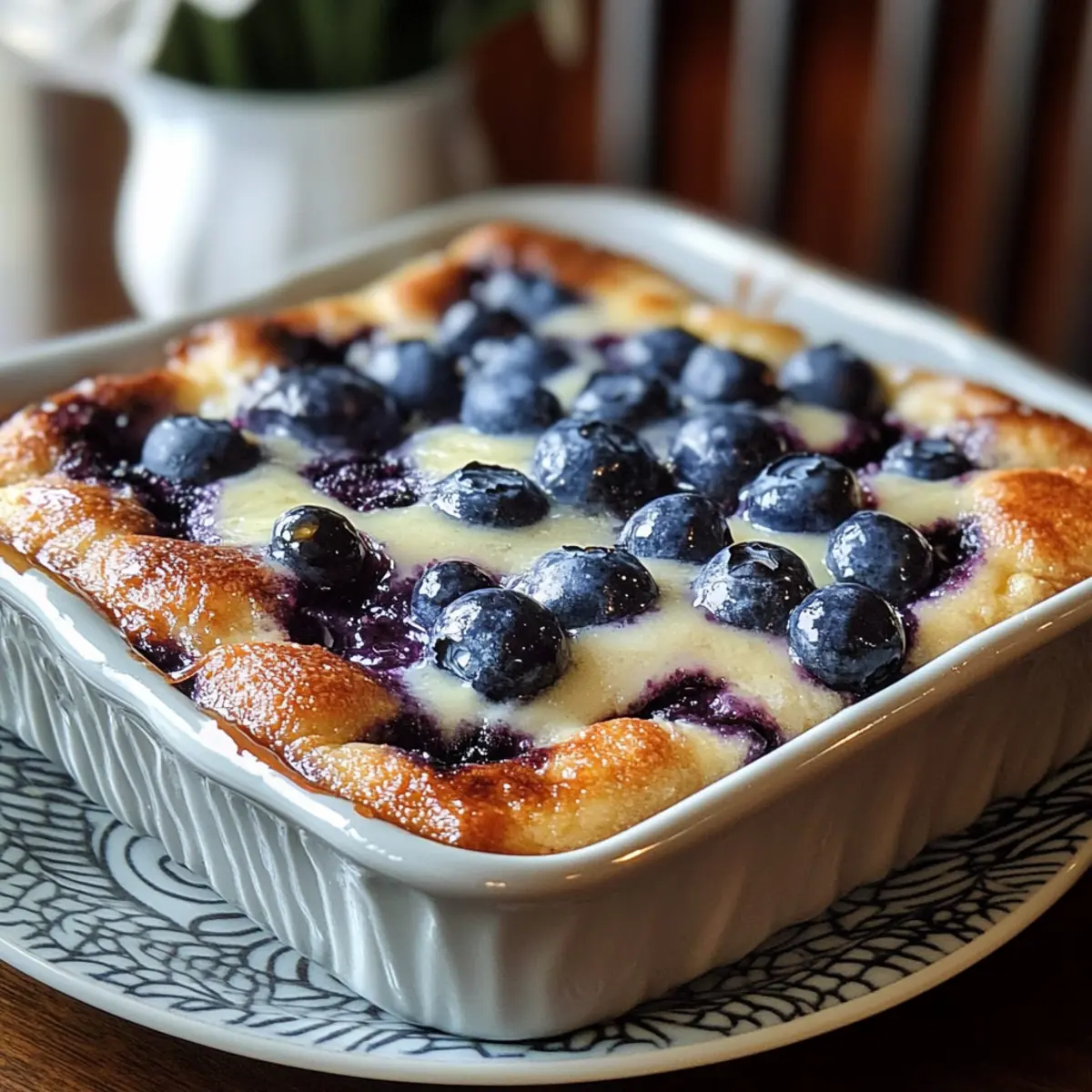 Enjoy the delightful Blueberry Buttermilk Pancake Casserole, a heartwarming breakfast combining pancakes with fresh blueberries.