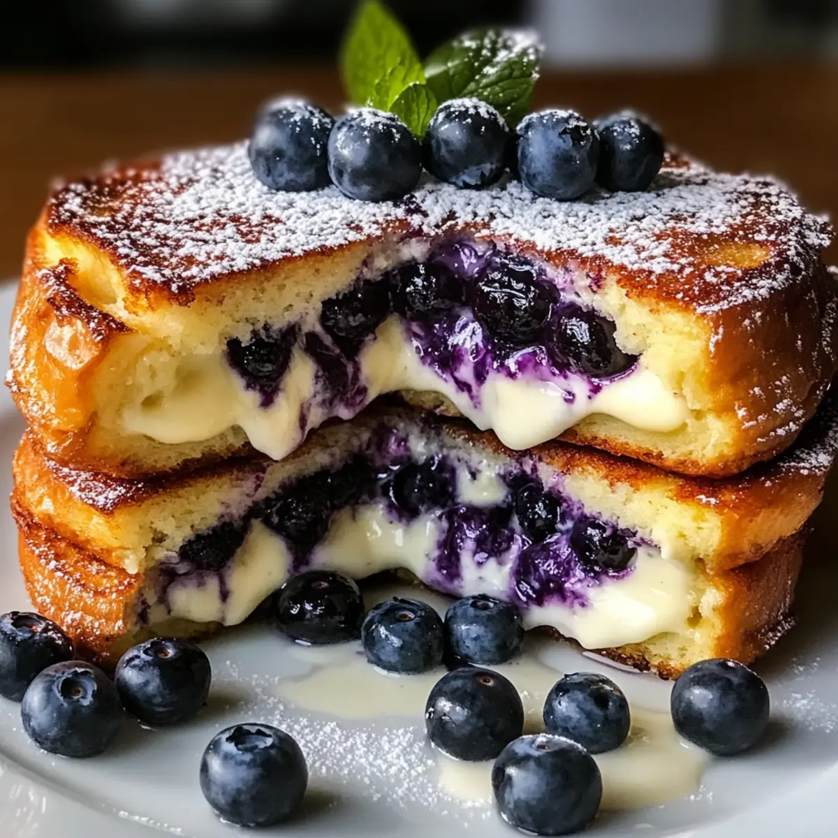 Indulgence at Its Finest: This Blueberry Cheesecake Stuffed French Toast takes your breakfast game to a whole new level with its luxurious cheesecake filling and fresh blueberries.