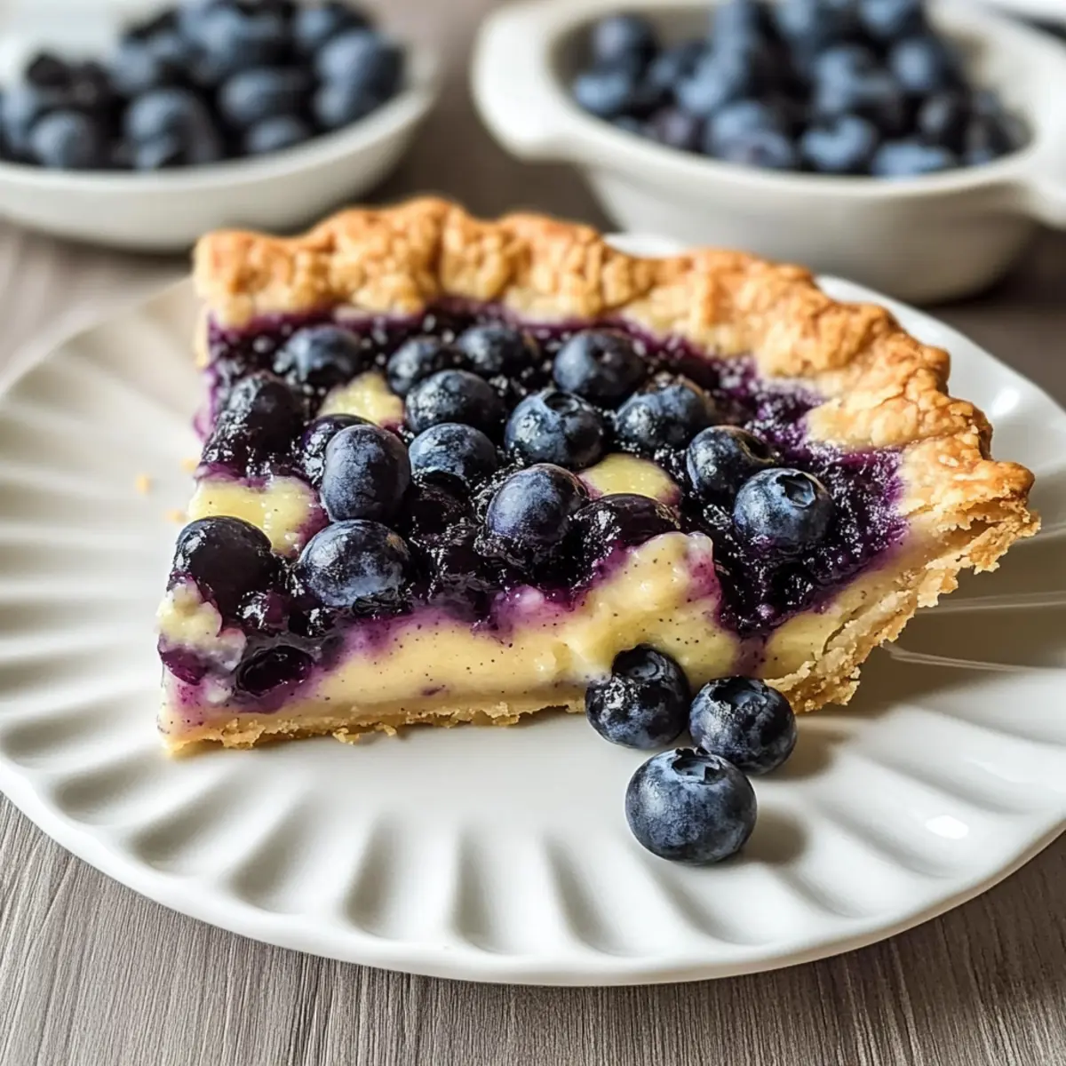 A gentle summer breeze whisked through the kitchen, carrying the sweet aroma of ripe blueberries just waiting to shine. Today, I’m thrilled to share a recipe that transforms these luscious gems into a delightful Blueberry Custard Pie. With a flaky crust cradling a silky custard filling and bursting with juicy blueberries, this dessert checks all the boxes for comfort food that’s also a showstopper. It’s incredibly versatile, allowing you to use fresh or frozen blueberries, making it a go-to for any time of year. Plus, it’s an effortless crowd-pleaser; the perfect ending to a family meal or a picnic treat! So, are you ready to capture a taste of summer and serve a slice of happiness? Let’s dive in! Why Choose Blueberry Custard Pie? Indulgent sweetness: This pie blends luscious blueberries with a smooth custard that’s truly a treat for the taste buds. Easy to make: Simple steps and common ingredients make this recipe approachable for all skill levels. Year-round delight: Use fresh summer blueberries or frozen ones for a delicious dessert anytime. Versatile serving options: Serve it warm, chilled, or with a dollop of whipped cream for extra decadence. If you love creamy textures, don’t miss out on our delightful Pudding Rice Krispie treats that are sure to satisfy! Blueberry Custard Pie Ingredients • Here’s everything you need to create this delicious Blueberry Custard Pie! For the Pie Crust • Unbaked Pie Crust – A flaky base that cradles the luscious filling; homemade is best for flavor! For the Custard Filling • Fresh Blueberries – The stars of the pie, bursting with sweetness; frozen blueberries can be used directly without thawing. • Eggs – Essential for creating a creamy, structured custard. • Granulated Sugar – Sweetens the custard and balances the tartness of the blueberries. • Heavy Cream – Adds a rich, luxurious texture; half-and-half can be substituted for a lighter version. • Vanilla Extract – Enhances the overall flavor, perfectly complementing blueberry sweetness. • Salt – Balances sweetness for a well-rounded flavor. • All-Purpose Flour – Helps to stabilize the filling and absorb moisture from the berries; a hint of lemon zest can brighten the taste! Step‑by‑Step Instructions for Blueberry Custard Pie Step 1: Preheat and Prepare the Crust Begin by preheating your oven to 375°F (190°C). As the oven warms, gently fit your unbaked pie crust into a 9-inch pie dish, ensuring it’s evenly shaped along the edges. Use a fork to prick the bottom, which prevents bubbling while baking. This crisp foundation will hold the luscious filling and juicy blueberries perfectly. Step 2: Arrange the Blueberries Once your crust is ready, evenly distribute 2 cups of fresh blueberries over the bottom. If you’re using frozen blueberries, there’s no need to thaw them, just scatter them directly into the crust. The vibrant color of the blueberries should shine, creating a beautiful base for your Blueberry Custard Pie. Step 3: Whisk the Egg Mixture In a large mixing bowl, whisk together 3 eggs and 3/4 cup of granulated sugar until the mixture is smooth and lightly frothy. This process should take about 1-2 minutes, and the color of the mixture will lighten. A well-mixed egg base is crucial for achieving the right custard texture in your pie. Step 4: Combine the Cream and Flavorings Gradually pour in 1 1/2 cups of heavy cream into the egg mixture, followed by 1 teaspoon of vanilla extract, a pinch of salt, and 2 tablespoons of all-purpose flour. Continue whisking until the mixture is completely smooth and well-blended. The flour will help stabilize the custard, ensuring a perfect consistency in your Blueberry Custard Pie. Step 5: Pour the Custard Mixture Carefully pour the prepared custard mixture over the blueberries in the crust. Make sure to cover the berries evenly, allowing the custard to mingle with the blueberries. You should see the beautiful colors blend slightly as the mixture spreads, ready for baking to perfection. Step 6: Bake the Pie Place the pie in the preheated oven and bake for 40-45 minutes. You’ll know it’s done when the edges look set and firm, but the center retains a slight jiggle. Keep an eye on the pie to avoid overcooking, as a balanced custard consistency is essential for your Blueberry Custard Pie’s delightful texture. Step 7: Cool and Refrigerate After baking, remove the pie from the oven and allow it to cool completely at room temperature. This process will take about 1-2 hours, allowing the custard to set properly. Once cooled, refrigerate the pie for at least 2 hours before slicing to achieve the perfect serving texture, enhancing your Blueberry Custard Pie experience. Blueberry Custard Pie Variations Feel free to explore the endless possibilities of this delightful pie, allowing you to tailor it to your taste buds! Frozen Blueberries: Use frozen blueberries directly without thawing to keep the texture intact and save preparation time. Creamier Custard: Substitute half-and-half for heavy cream, resulting in a lighter yet still delectable custard. Spiced Twist: Add a pinch of cinnamon or nutmeg for warm, comforting spice notes that perfectly complement the blueberries. Mini Pies: Get creative by making mini pies using tart shells for perfect single servings; they’re great for parties! Cream Cheese Layer: Place a layer of cream cheese beneath the blueberries to achieve a rich, luscious dessert with extra creaminess. Zesty Freshness: A touch of lemon zest in the custard adds a refreshing brightness that pairs beautifully with the berries. Sweet Crunch: Top with a sprinkle of granola or crushed almonds before serving for a delightful crunch that contrasts the creamy filling. Whipped Cream Swirls: For added richness, serve each slice with whipped cream or a scoop of vanilla ice cream; it’ll take it to another level! If you love exploring different flavor profiles, be sure to try these variations and make your