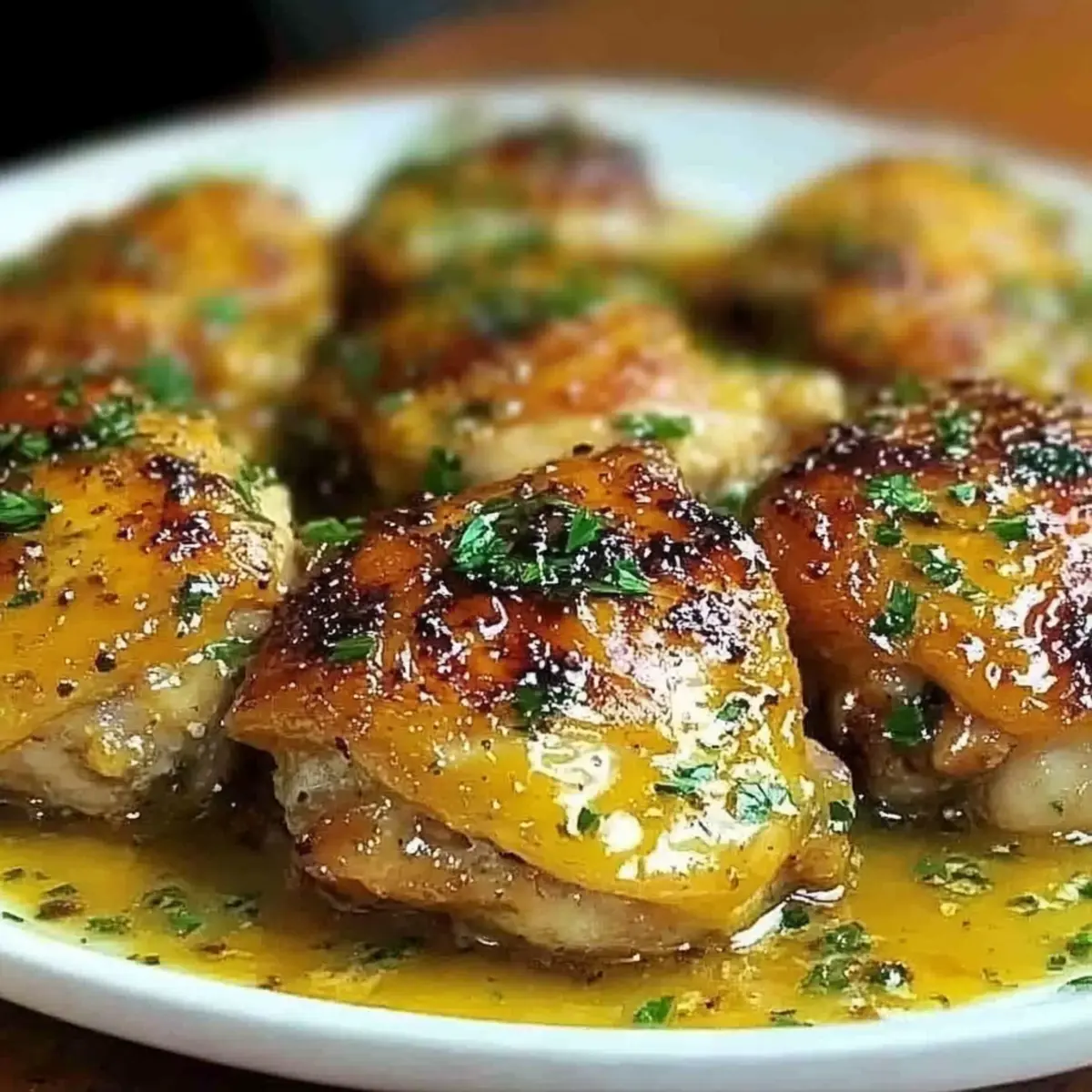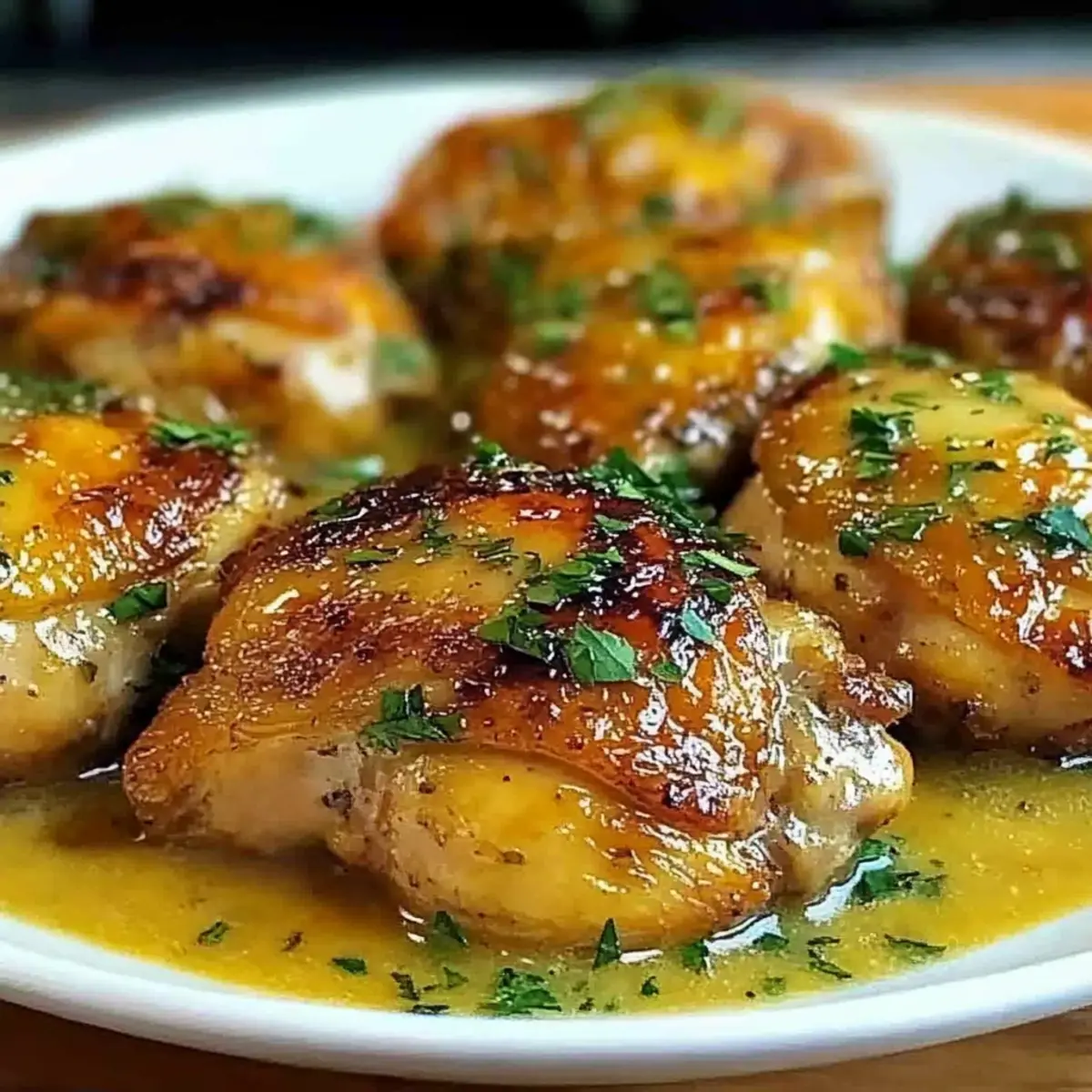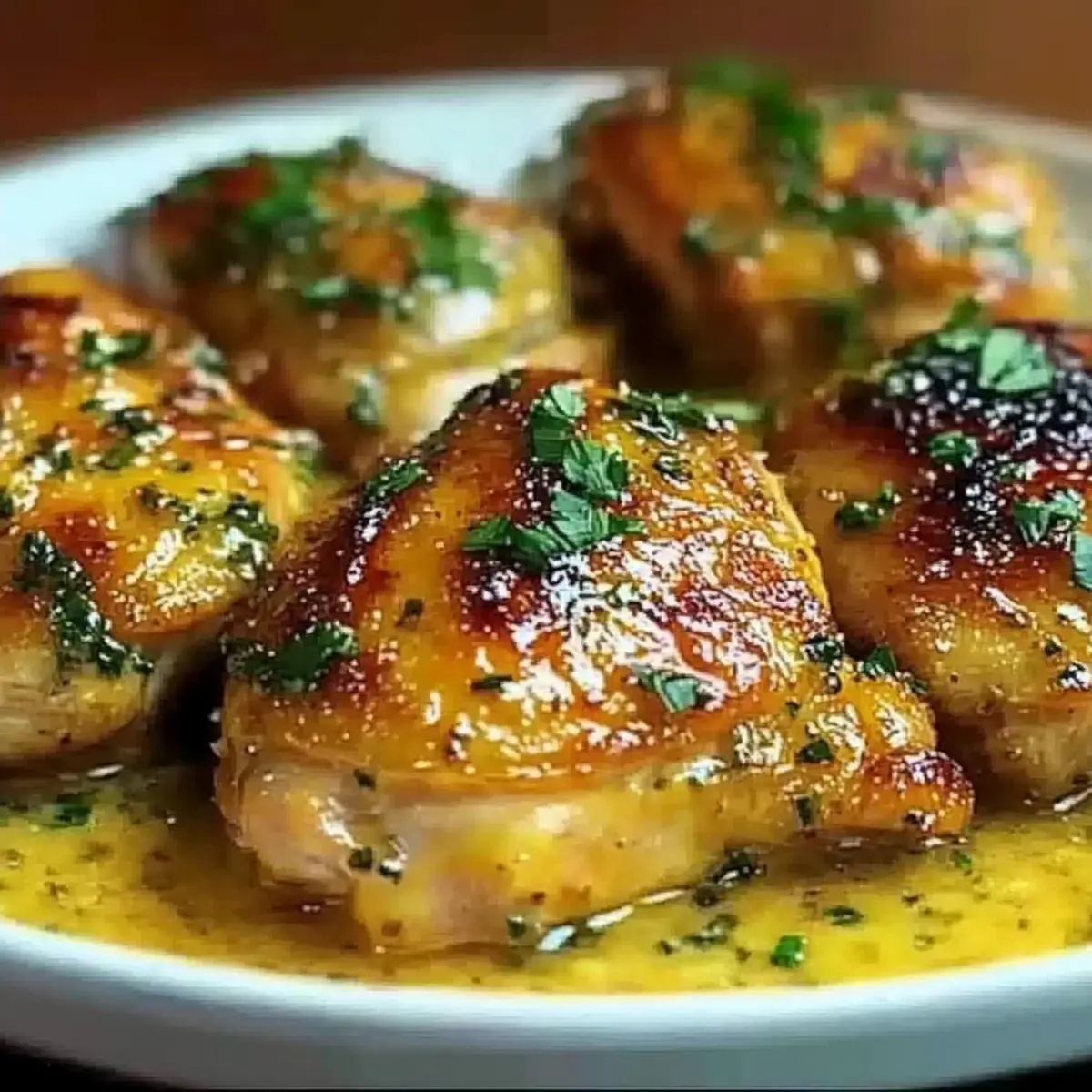 “Is there anything more comforting than the scent of sizzling chicken thighs wafting through your kitchen? This Crispy Garlic Chicken Thighs with Creamy Sauce recipe, inspired by Bobby Flay, takes those humble bone-in thighs and transforms them into a restaurant-quality delight. With golden, crispy skin and a luscious, creamy garlic sauce that’s ready in just one skillet, you’ll love the ease of preparation for your busy weeknights. Not only is this dish a true crowd-pleaser, but it also brings a touch of culinary magic to your table, all while keeping cleanup simple. Ready to elevate your dinner game? Let’s dive into this flavorful adventure!” Why Is This Chicken Recipe a Must-Try? Simplicity: You only need one skillet, making both cooking and cleanup a breeze, perfect for those hectic weeknights. Crispy Perfection: Achieve golden brown, crispy skin that will have your family asking for seconds. Creamy Indulgence: The garlic lemon sauce is a luxurious addition that pairs perfectly with sides like creamy mashed potatoes, turning your dinner into a gourmet experience. Versatile Delight: Feel free to adapt the recipe with boneless thighs or different herbs to suit your taste—it’s all about making it your own! Crowd-Pleaser: This dish impresses not just with flavor but also with its beautiful presentation; it’s sure to be a hit at your next family gathering. Bobby Flay Chicken Thighs Ingredients • Get ready to cook up something scrumptious with these key ingredients! For the Chicken Bone-in, skin-on chicken thighs – The star of the dish, providing juicy meat and perfectly crispy skin. Olive oil – Essential for browning the chicken skin effectively and enhancing flavors. Garlic powder – Adds a robust base flavor that enhances the chicken’s taste. Onion powder – Elevates savory notes for a well-rounded flavor experience. Paprika (smoked, optional) – Adds a beautiful color and a hint of smokiness to tantalize the palate. Kosher salt and black pepper – Key seasoning agents that elevate overall flavor. For the Sauce Butter – Enriches the sauce, imparting creaminess and depth. Shallot – Provides a subtle onion flavor that complements the garlic beautifully. Garlic – Freshly minced for a vibrant flavor boost in the sauce. Low-sodium chicken broth – A flavorful base that keeps the sauce delicious but not overly salty. Fresh lemon juice – Brightens the flavor profile with a zesty lift. Fresh thyme – Infuses the sauce with an earthy aroma that enhances the overall dish. Crushed red pepper flakes – Offers a touch of heat to tantalize the taste buds. Heavy cream – The secret to a rich and creamy sauce that clings beautifully to the chicken. Fresh parsley – Adds a pop of color and freshness at the end. This Bobby Flay chicken thighs recipe is your ticket to an easy yet gourmet weeknight dinner that your family will love! Step‑by‑Step Instructions for Bobby Flay Chicken Thighs Step 1: Prepare the Chicken Begin by patting the bone-in, skin-on chicken thighs dry with paper towels, ensuring the skin is completely moisture-free for optimal crispiness. Next, season each thigh evenly with garlic powder, onion powder, paprika, kosher salt, and black pepper. This flavorful seasoning sets the foundation for your Bobby Flay chicken thighs and enhances the overall taste. Step 2: Sear the Chicken Heat a generous amount of olive oil in a 12-inch cast iron skillet over medium heat until shimmering—but not smoking, about 2-3 minutes. Carefully place the seasoned chicken thighs into the skillet, skin-side down. Allow them to cook undisturbed for 7-8 minutes, or until the skin has turned a deep golden brown, creating a beautiful crispiness. Step 3: Finish Cooking the Chicken Once the skin is crispy, flip the chicken thighs carefully using tongs. Continue cooking for an additional 10-12 minutes or until the internal temperature reaches a safe 165°F. You may need to adjust the heat if the chicken browns too quickly. Once done, transfer them to a plate and tent with foil to keep warm. Step 4: Make the Sauce In the same skillet, reduce the heat to medium and add butter, allowing it to melt and blend with the savory drippings left behind. Toss in the minced shallot and garlic, sautéing for about 2-3 minutes until they become aromatic and translucent. This step builds the base for your luscious creamy garlic sauce. Step 5: Build Flavor with Broth and Spices Next, pour in the low-sodium chicken broth, fresh lemon juice, thyme, and a pinch of crushed red pepper flakes. As you whisk gently, scrape up any browned bits from the bottom of the skillet for added flavor. Let this mixture simmer for 2-3 minutes to allow the ingredients to meld together beautifully. Step 6: Incorporate Cream for Richness Lower the heat further and mix in the heavy cream, stirring continuously. Allow the creamy sauce to simmer for another 5-6 minutes until it thickens to a luscious consistency, coating the back of a spoon. This creamy garlic sauce is what elevates your Bobby Flay chicken thighs into something truly special. Step 7: Combine Chicken and Sauce Return the chicken thighs to the skillet, spooning the creamy garlic sauce generously over each piece. Let everything simmer together for an additional 2-3 minutes to meld the flavors. This final step ensures each bite is infused with creamy deliciousness. Step 8: Garnish and Serve To finish off your dish, garnish it with freshly chopped parsley for a burst of color and freshness. Serve your Bobby Flay chicken thighs hot, ensuring each portion is generously laden with that rich, creamy sauce—perfect for a comforting weeknight dinner. Bobby Flay Chicken Thighs Variations Feel free to get creative and customize this recipe according to your taste or dietary needs! Boneless Thighs: Use boneless chicken thighs for quicker cooking; just adjust the cook time to 4-5 minutes per side. Half-and-Half: Substitute heavy cream with half-and-half for a ligh