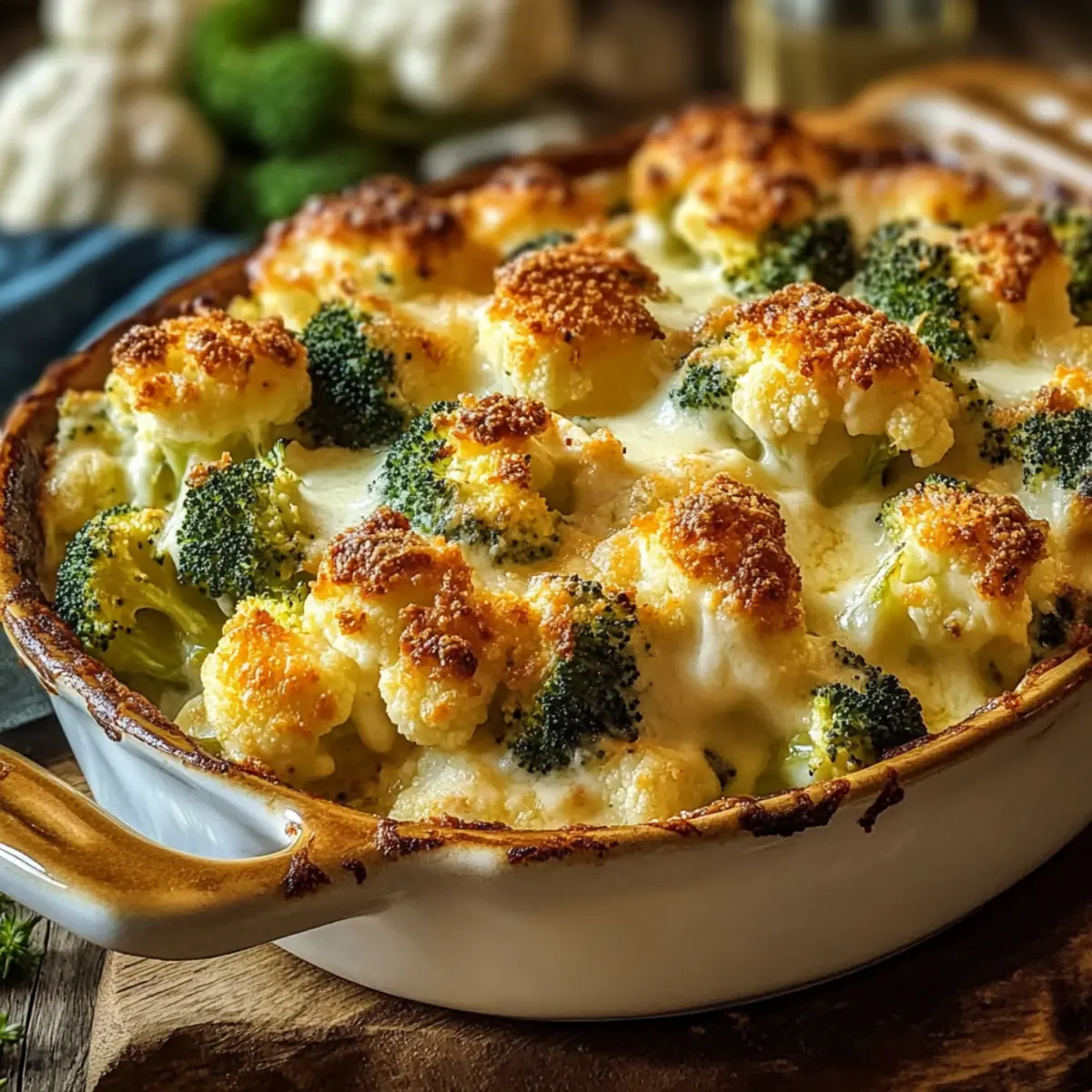 As I pulled my creamy broccoli cauliflower casserole from the oven, the rich aroma enveloped the kitchen, instantly transporting me back to my grandmother’s cozy gatherings. This dish is more than just comfort food; it’s a delightful blend of tender veggies wrapped in a silky cheese sauce that warms both the heart and the soul. One of the best things about this Broccoli Cauliflower Casserole: A Comforting Family Favorite is its versatility—whether you’re after a gluten-free version or want to experiment with various cheeses, this recipe adapts to your needs. Plus, in just under an hour, you can have a hearty meal that’s perfect for busy weeknights or special occasions. Are you ready to bring this family favorite to your table? Let’s dive in! Why Is This Casserole So Irresistible? Comforting, Creamy Goodness: Each spoonful is a warm embrace, blending tender broccoli and cauliflower with a rich cheese sauce. Adaptable Recipe: Easily customize with your favorite cheeses or create a gluten-free version—making it perfect for everyone at the table! Quick and Easy Prep: With just under an hour from start to finish, it’s ideal for busy days when you crave homemade convenience. Crowd-Pleaser: Serve this dish at family gatherings or potlucks, and watch it disappear faster than you can say, “seconds, please!” Perfect Pairing: This casserole goes wonderfully with baked salmon or even on its own as a hearty meal. It’s versatile enough to compliment your favorite protein or fresh salad. Broccoli Cauliflower Casserole Ingredients • The perfect mix for a comforting dish! For the Casserole Broccoli – Fresh florets provide texture and a vibrant color; if using frozen, ensure they are thawed and pat them dry. Cauliflower – Offers a mild flavor and fluffy texture; use fresh for the best results, just like the broccoli. Butter – The base for a delicious béchamel sauce; substitute with olive oil for a dairy-free option. Flour – Essential for thickening the creamy sauce; almond flour works great for a gluten-free version. Milk – Creates a luscious sauce; use any variety or almond milk for a plant-based twist. Cheddar Cheese – The star ingredient that brings richness; sharp cheddar enhances flavor, but feel free to mix with Gruyère for a gourmet touch. Breadcrumbs – Adds a delightful crunch on top; gluten-free breadcrumbs or crushed pork rinds make excellent substitutes. Seasonings (Salt, Pepper, Garlic Powder) – A must to elevate the dish; adjust amounts to suit your taste preferences. Enjoy whipping up this Broccoli Cauliflower Casserole: A Comforting Family Favorite! Step‑by‑Step Instructions for Broccoli Cauliflower Casserole: A Comforting Family Favorite Step 1: Preheat the Oven Begin by preheating your oven to 375°F (190°C). This step is crucial to ensure your broccoli cauliflower casserole bakes evenly, developing a lovely golden crust on top. Take a moment to gather your baking dish, grease it lightly with butter or oil, and set it aside for later. Step 2: Blanch the Vegetables Next, prepare the broccoli and cauliflower by blanching them. Bring a large pot of salted water to a boil, then add in the florets. Blanch for about 3 minutes until tender yet crisp. Once done, drain the vegetables, let them cool slightly, and pat dry to prevent excess moisture from ruining your casserole. Step 3: Create the Creamy Sauce In a medium saucepan, melt 4 tablespoons of butter over medium heat. Once melted, whisk in 1/4 cup of flour to form a smooth paste. Gradually pour in 2 cups of milk, stirring constantly until the mixture thickens, about 5-7 minutes. It should become creamy and coat the back of a spoon, signaling it’s ready for the next step. Step 4: Add Cheese and Seasoning Stir in 1 cup of shredded cheddar cheese and 1/2 cup of Gruyère until melted and combined into the sauce. Season with salt, pepper, and a sprinkle of garlic powder to taste. The cheese should be luscious and gooey, adding that delicious richness that makes this Broccoli Cauliflower Casserole a family favorite. Step 5: Combine Vegetables and Sauce In a large mixing bowl, toss the blanched broccoli and cauliflower with the creamy cheese sauce. Make sure each piece of vegetable is well-coated with the sauce, enhancing their flavors and creating that comforting blend that everyone will love. Step 6: Assemble the Casserole Pour the mixture into your prepared baking dish, smoothing it out evenly. Sprinkle a generous layer of breadcrumbs on top for that irresistible crunch. If desired, melt an extra tablespoon of butter and drizzle it over the breadcrumbs to enhance the crispy texture as it bakes. Step 7: Bake the Casserole Place the dish in the preheated oven and bake for 25-30 minutes. Look for a bubbly surface and a beautifully golden top as tell-tale signs that your Broccoli Cauliflower Casserole is ready to be enjoyed. The casserole should smell heavenly and look invitingly crispy. Step 8: Let it Rest After removing the casserole from the oven, allow it to rest for about 5 minutes. This crucial step helps the sauce firm up slightly, making it easier to serve and ensuring each portion holds together beautifully. Enjoy the comforting aroma and prepare to share this family favorite! What to Serve with Broccoli Cauliflower Casserole As you savor the creamy layers of this comforting dish, envision the delightful accompaniments that can turn your meal into a memorable feast. Roasted Chicken: A succulent chicken adds protein and depth, complementing the cheesy richness of the casserole beautifully. Baked Salmon: The buttery flavors of salmon pair perfectly, creating a satisfying balance with the earthy veggies. Fresh Green Salad: A crisp, light salad brings vibrant freshness to counteract the creamy casserole, enhancing the overall meal experience. Garlic Bread: The crunchy, garlicky bread offers a delightful texture, ideal for scooping up that luscious cheesy sauce. Try serving it warm. Steamed Aspara