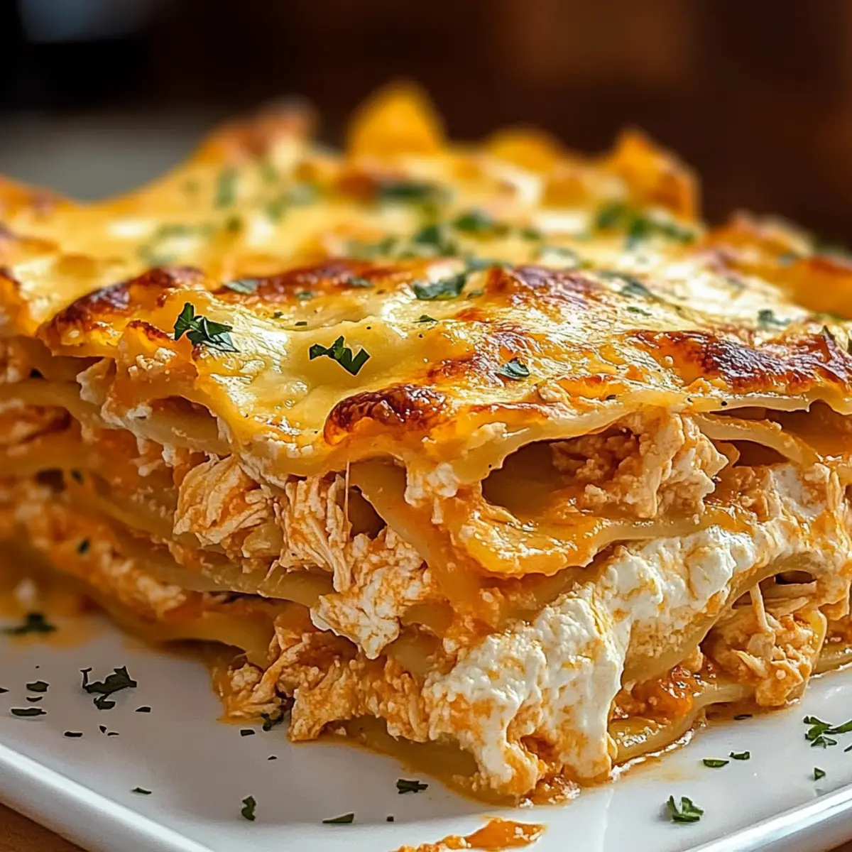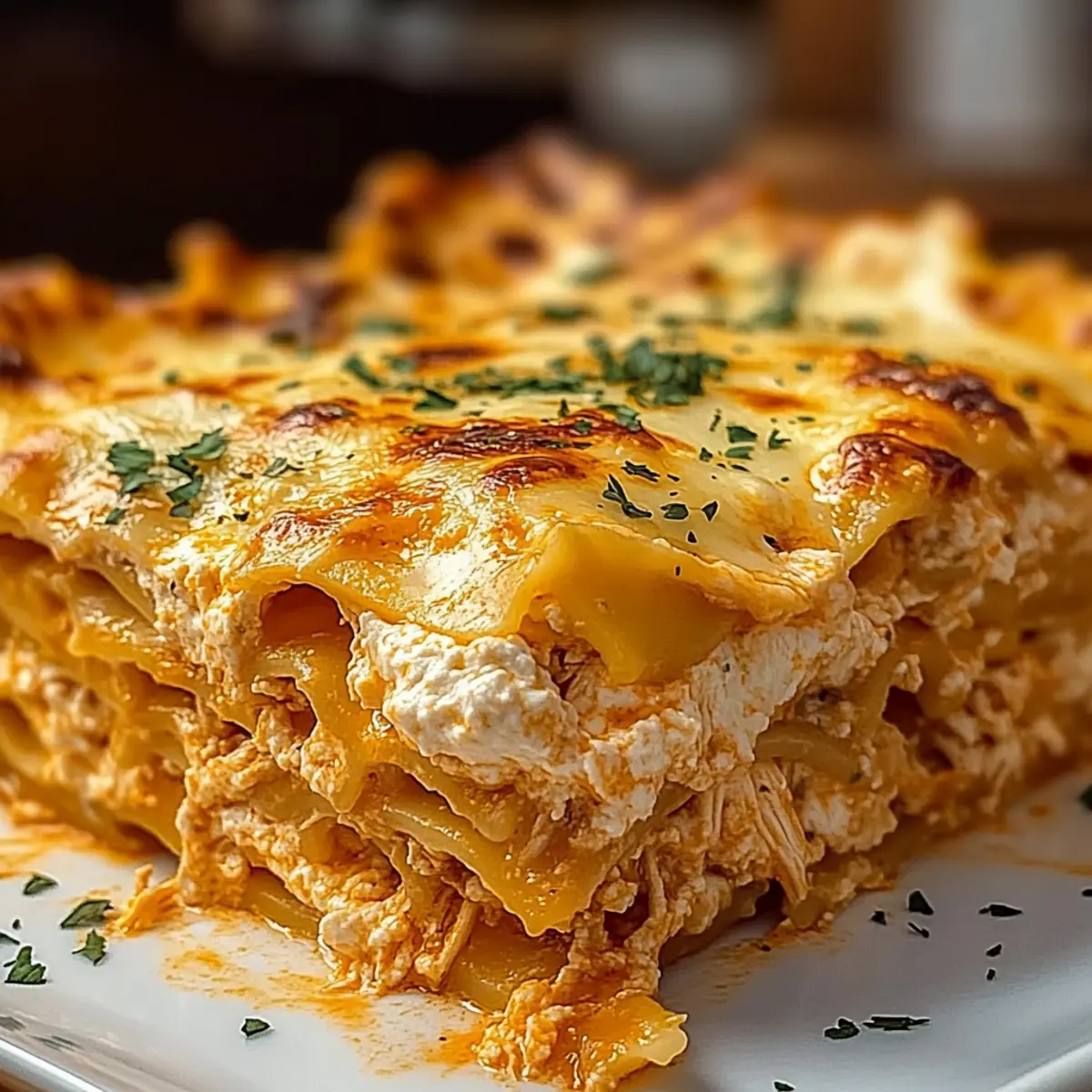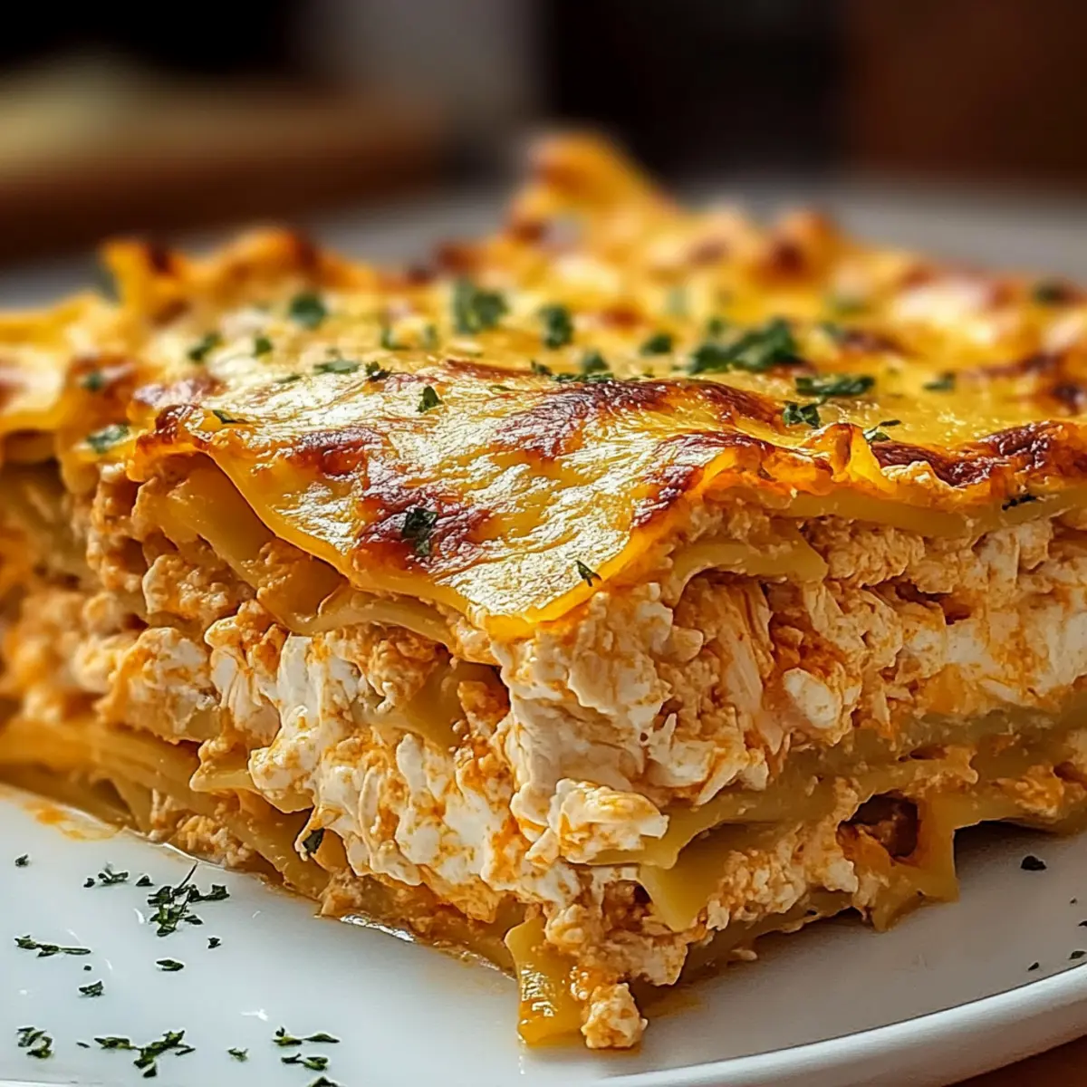 There I was, staring into my fridge, contemplating the sad leftovers of last week when inspiration struck—a tasty twist on my beloved comfort food. Say hello to Buffalo Chicken Lasagna! This zesty dish combines all the goodness of spicy buffalo wings with the warmth of creamy lasagna, making it not just a meal, but a feast that brings everyone together. With its easy prep and make-ahead convenience, it’s a guaranteed crowd-pleaser for game nights or family dinners. You can even play with variations like BBQ Buffalo or Loaded Mexican flavors to keep things exciting. Ready to dive into a dinner that warms both the heart and the belly? Let’s get cooking! Why is Buffalo Chicken Lasagna a Must-Try? Irresistible Flavor Fusion: The combination of zesty buffalo chicken and creamy cheesen invites everyone to dig in. Easy Prep: This recipe is designed for busy schedules, making it perfect for weeknight meals. Versatile Variations: Enjoy a BBQ Buffalo blend or spice it up with a Mexican twist; there’s a flavor for every palate! Crowd-Pleaser: Whether for game day or family gatherings, this dish is sure to impress. Check out more crowd favorites like Buffalo Chicken Tacos for easy meal inspiration! Make-Ahead Convenience: Prepare in advance for hassle-free serving, leaving you more time to enjoy your guests! Delightfully Cheesy: The richness of three types of cheese brings a creamy texture that perfectly balances the spice. Buffalo Chicken Lasagna Ingredients Get ready for a flavorful dish! For the Chicken Mixture Cooked Chicken – shredded; rotisserie or grilled chicken gives the best results. Buffalo Wing Sauce – adds that spicy kick; choose a quality sauce for a robust flavor. Dill Pickle Juice – enhances the wing flavor uniquely; don’t skip this secret ingredient! Ranch Dressing – balances the heat with creaminess; you can adjust to your liking. Cream Cheese – softened; adds a smooth layer of creaminess to the mixture. Garlic Powder & Black Pepper – season to taste; these spices elevate the overall flavor. For the Cheese Mixture Ricotta Cheese – the base for creaminess; feel free to substitute with cottage cheese if desired. Shredded Mozzarella – essential for that melty, cheesy lasagna texture. Parmesan Cheese – freshly grated; adds depth and richness to the cheesiness. For the Pasta and Toppings Lasagna Noodles – use 9-12, either cooked or no-boil for easy assembly. Blue Cheese Crumbles (Optional) – for those who love a tangy kick as a garnish. Green Onions (Optional) – sprinkle on top for a fresh touch. Extra Ranch or Hot Sauce – drizzle on top to personalize your flavor, enhancing the buffalo experience! Gather these ingredients, and let’s dive into the delicious world of Buffalo Chicken Lasagna together! Step‑by‑Step Instructions for Buffalo Chicken Lasagna Step 1: Prep Chicken Begin by shredding your cooked chicken and placing it in a large mixing bowl. Add buffalo wing sauce, dill pickle juice, ranch dressing, softened cream cheese, garlic powder, and black pepper. Mix all the ingredients well until the chicken is thoroughly coated and the mixture is creamy and consistent. This flavorful chicken mixture will serve as the hearty core of your Buffalo Chicken Lasagna. Step 2: Make Cheese Mixture In a separate bowl, combine ricotta cheese, shredded mozzarella, freshly grated Parmesan, more garlic powder, and ranch dressing. Stir until all the ingredients are well mixed and creamy. This cheese mixture will create a rich, gooey layer in your Buffalo Chicken Lasagna, enhancing the overall flavor profile with its creamy texture that pairs deliciously with the spicy chicken. Step 3: Prepare Noodles Cook the lasagna noodles according to the package instructions until they are al dente, usually about 8-10 minutes. Once cooked, drain and lay them flat on a clean surface or parchment paper to dry and prevent sticking. These noodles will create the perfect layers in your Buffalo Chicken Lasagna, adding structure and heartiness to your dish. Step 4: Layer Ingredients Preheat your oven to 375°F. In a greased 9×13 inch baking dish, start layering by placing a few lasagna noodles at the bottom. Spread half of the chicken mixture evenly over the noodles, followed by half of the cheese mixture. Repeat the layering process until all the ingredients are used, finishing with a top layer of noodles. This ensures a beautiful, flavorful bake. Step 5: Bake Cover the assembled Buffalo Chicken Lasagna with foil, making sure to spray the underside with cooking oil to prevent sticking. Bake in the preheated oven for 30 minutes. After this initial baking, remove the foil and continue to bake for an additional 15 minutes. The lasagna should be bubbly and golden on top, indicating it’s ready to come out of the oven. Step 6: Rest Once baked, remove the Buffalo Chicken Lasagna from the oven and let it rest for about 15 minutes. This resting period allows the layers to set properly, making slicing easier and resulting in beautiful, clean portions. The flavors will meld beautifully during this time, ensuring that each bite is absolutely delicious. Buffalo Chicken Lasagna Variations & Substitutions Feel free to explore exciting twists on this dish that will keep everyone guessing and delighted! BBQ Buffalo Blend: Swap buffalo sauce for BBQ sauce for a sweet and tangy flavor twist. Experience how BBQ meets the classic buffalo taste! Loaded Buffalo: Add extra ingredients like black olives, jalapeños, and corn for a loaded version that crunches with every bite. The vibrant toppings bring added texture and a fiesta vibe! White Buffalo: Replace the traditional buffalo sauce with a white sauce made from creamy Alfredo for a milder take. Elegantly smooth, this variation is a real crowd-pleaser if you want to tone down the spice. Mexican Buffalo: Incorporate taco seasoning into the chicken mixture and add black beans for a fun Tex-Mex twist. Layer with some salsa and a sprinkle of cilantro