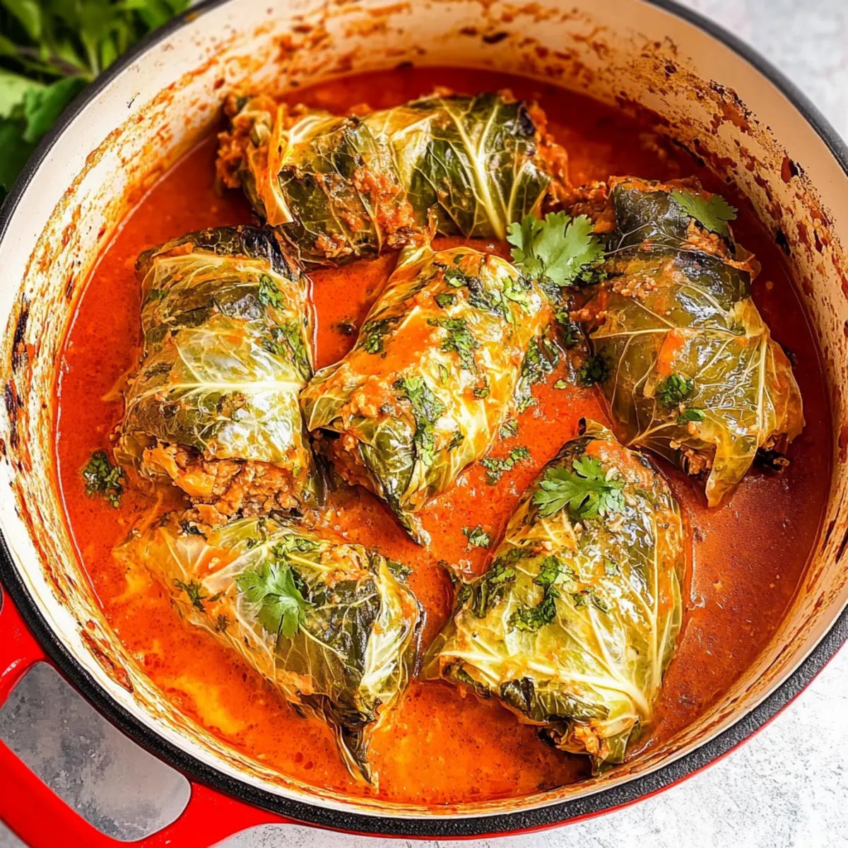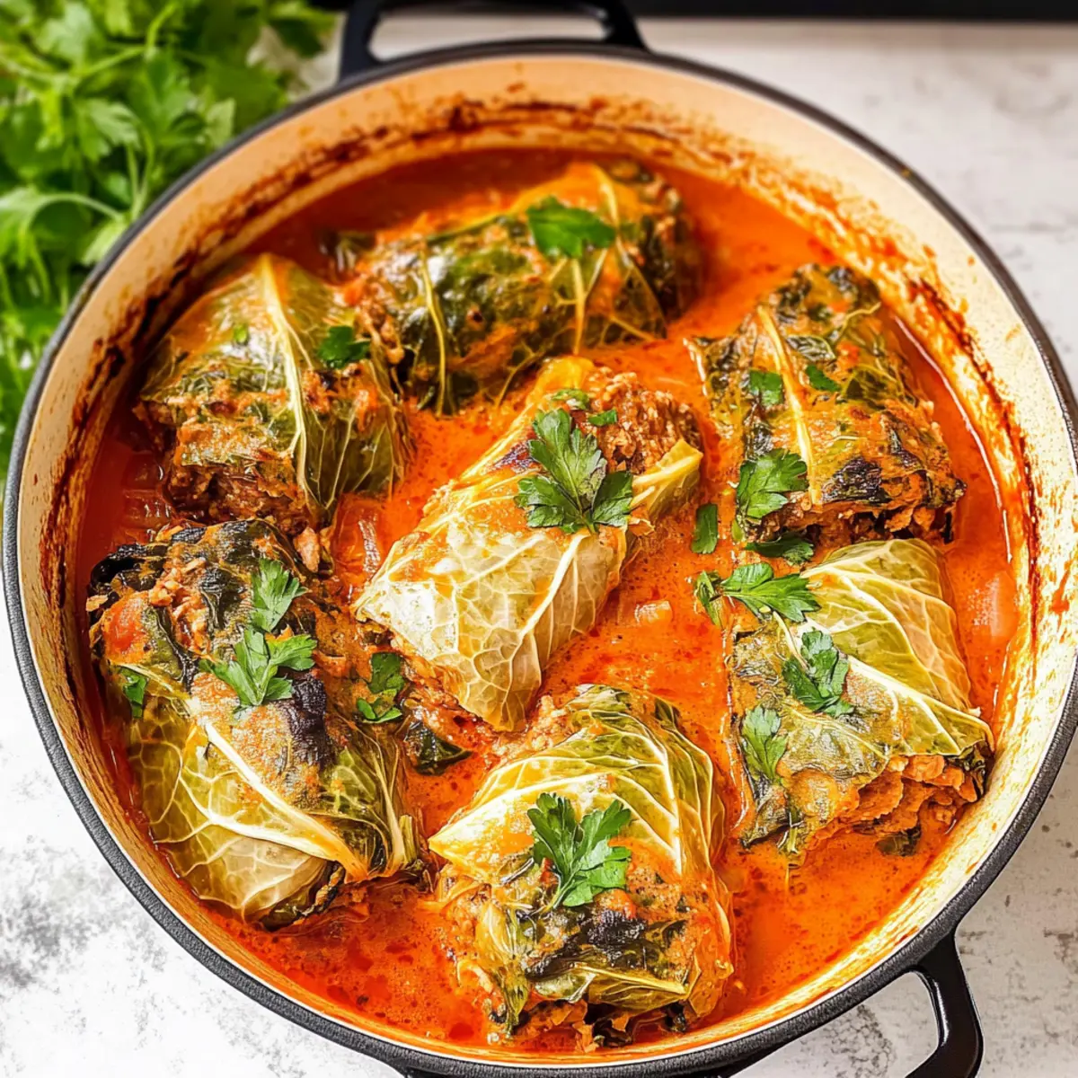 As I rifled through my family’s cherished recipes, a familiar scent whisked me back in time—a cozy kitchen filled with nostalgia, where my grandmother’s Cabbage Rolls Golubtsi danced on the stovetop. These traditional stuffed cabbage rolls are a labor of love, wrapping a savory blend of ground beef and pork in a creamy tomato sauce that warms the soul. Not only are they perfect for assembling on a weekend, but they also make a freezer-friendly meal that’s ready to rescue weeknight dinners from the clutches of fast food. With high vitamin C content, they’re as nourishing as they are comforting. Ready to roll up your sleeves and bring this family favorite to your own table? Let’s dive into the delicious world of Golubtsi together! Why are cabbage rolls so comforting? Comforting Tradition: This recipe brings cherished family memories to life, making it perfect for gatherings. Nutrient-Dense: Packed with vitamin C, these rolls nourish while delighting the taste buds. Freezer-Friendly: Easily prepare a batch to save for busy nights, saving you from fast food. Versatile Filling: Feel free to experiment with flavors, substituting cauliflower rice for a low-carb alternative. Rich & Creamy Sauce: The luscious tomato sauce adds the finishing touch, elevating each bite to pure bliss. Crowd-Pleaser: Whether it’s a family dinner or a potluck, these Golubtsi are sure to impress everyone! For more delicious ideas, check out my Sesame Chicken Cabbage salad or Basil Beef Rolls for a delightful twist! Cabbage Rolls Golubtsi Ingredients Here’s everything you need to bring these comforting Cabbage Rolls Golubtsi to life! For the Filling Cabbage – The outer layer that wraps around the savory filling; fresh, crispy green or savoy cabbage works best. Rice – Acts as a binding agent for texture; any type will do, just cook until al dente. Olive Oil – Used for sautéing the onions and enhancing flavors; don’t skip this step! Onion – Adds sweetness and depth when sautéed; finely chop for even flavor distribution. Ground Beef – The primary protein source; lean beef (5% fat) is recommended for a healthier option. Ground Pork – Adds moisture and richness in flavor; opt for lean pork (5% fat) for balance. Parsley – Freshly chopped for a splash of color and freshness in the filling. Carrots – Grated to incorporate sweetness and moisture; a lovely addition to the mix. Salt and Pepper – Essential for achieving the right flavor balance; season to taste. Bay Leaves – Adds a subtle herbal note while cooking; make sure to remove them before serving. For the Sauce Chicken Stock – Provides moisture and richness; substitute with vegetable stock for a lighter option. Sour Cream or Creme Fraiche – Creates a creamy texture in the sauce; full-fat versions yield the best results. Canned Crushed Tomatoes – The base for the sauce; can be swapped with tomato passata if needed. Step‑by‑Step Instructions for Cabbage Rolls Golubtsi Step 1: Prepare the Cabbage Begin by placing your cabbage heads in the freezer for three days. This method softens the leaves, making them easier to separate later. Once frozen, thaw them in the refrigerator overnight until they are pliable and ready for rolling. Step 2: Cook the Rice In a pot, bring water to a boil and add your chosen rice, cooking until just al dente as you’ll want it to maintain some texture. This should take about 10-12 minutes. Once done, drain the rice and set it aside to cool as you prepare the other filling ingredients. Step 3: Sauté the Vegetables Heat a tablespoon of olive oil in a skillet over medium heat. Add finely chopped onions and let them sauté until they become translucent, about 5 minutes. Next, stir in grated carrots and cook for an additional 2-3 minutes, allowing the flavors to meld together before removing from heat. Step 4: Mix the Filling In a large mixing bowl, combine the ground beef, ground pork, cooked rice, sautéed onions, grated carrots, fresh parsley, salt, and pepper. Mix thoroughly by hand until well-blended. The filling should be moist and fragrant, suitable for stuffing inside the cabbage leaves. Step 5: Prepare the Sauce In a separate bowl, whisk together chicken stock, canned crushed tomatoes, sour cream, salt, and pepper until smooth. This creamy sauce will envelop the cabbage rolls, so ensure the mixture is well combined and velvety before moving on to the next step. Step 6: Separate Cabbage Leaves Carefully remove the thawed cabbage leaves one by one, trimming the thick ribs at the base to make rolling them easier. Lay out the leaves flat on a clean surface, ensuring they are all ready for filling. Step 7: Roll the Cabbage Place approximately two tablespoons of your filling mixture onto each cabbage leaf. Roll the leaf tightly, tucking in the sides as you go to secure the filling. Arrange each roll seam-side down in a large baking dish, ensuring they fit snugly without overcrowding. Step 8: Layer the Rolls Pour a bit of sauce on the bottom of the baking dish, then layer half of the cabbage rolls over this sauce. Sprinkle in the bay leaves and drizzle with half of the remaining sauce before adding the rest of the rolls on top, finishing with the remaining sauce poured over. Step 9: Bake the Cabbage Rolls Cover the baking dish with foil and place it in a preheated oven set to 350°F. Bake for 1 hour, allowing the flavors to meld. After the hour, remove the foil and bake for an additional 30 minutes until the cabbage is tender and the sauce is bubbling and slightly thickened. Step 10: Serve and Enjoy Once baked to perfection, let the cabbage rolls cool slightly. Serve them warm, garnished with a dollop of sour cream and a sprinkle of fresh herbs for an added touch of flavor and color. Enjoy the comforting flavors of these Cabbage Rolls Golubtsi at your family table. Cabbage Rolls Golubtsi Variations Feel free to explore these delightful variations that can take your Cabbage Rolls Golubtsi to new flavor h