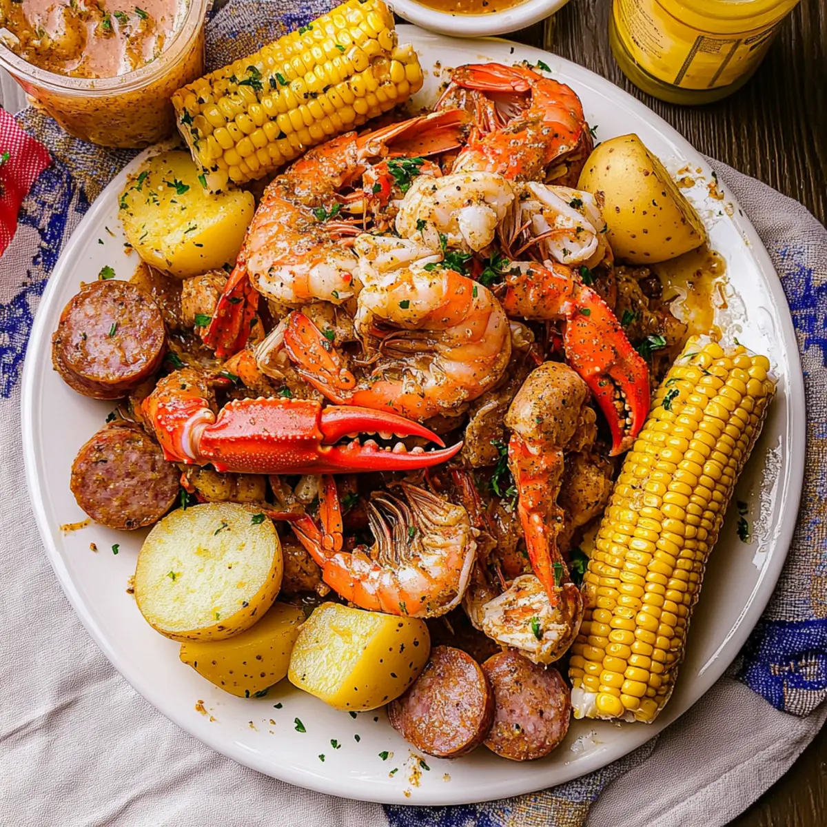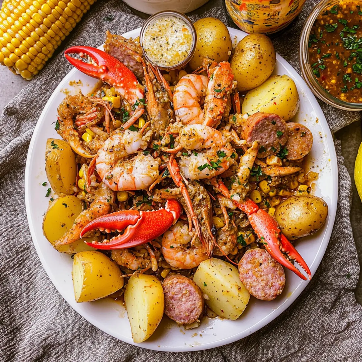 The aroma of simmering spices and fresh seafood is a delightful memory of summer gatherings and hearty family dinners. With this Cajun Seafood Boil with Garlic Butter Sauce, you’re not just preparing a meal—you’re creating an experience! Packed with juicy shrimp, tender crab, zesty andouille sausage, and sweet corn, this dish is both customizable and a guaranteed crowd-pleaser, perfect for those moments when you want a hearty homemade feast. Plus, it’s gluten-free when you choose the right sausages, making it accessible for everyone at your table. So, are you ready to dive in and experience a taste of the South that will leave your taste buds dancing? Why is Cajun Seafood Boil a must-try? Unforgettable Flavor: Experience the vibrant blend of spices in the Cajun garlic butter sauce that elevates the seafood to new culinary heights. Customizable Options: Whether you prefer shrimp, crab, or a mix of both, this recipe is easily tailored to suit different tastes. Easy to Follow: Perfect for cooks of all skill levels, the straightforward steps ensure a delicious outcome every time. Great for Gatherings: This dish brings people together! Serve it as a festive centerpiece for family dinners or casual get-togethers. Cultural Delight: Embrace a rich Southern tradition, sharing joy and food in a communal setting. For a delightful twist, you might also love our Garlic Butter Scallops or Garlic Butter Mushroom dishes that capture similar vibes. Cajun Seafood Boil Ingredients For the Seafood • Jumbo Shrimp – Use fresh or frozen for a sweet and juicy texture. • Snow Crab Clusters – Pre-cooked crab simplifies preparation and adds richness. • Andouille Sausage – Gives a spicy, smoky flavor; substitute with kielbasa for a milder taste. For the Vegetables • Potatoes – Red or yellow varieties add heartiness and pair beautifully with seafood. • Corn on the Cob – Fresh corn provides sweetness; frozen corn is a convenient alternative. • Eggs – Hard-boiled eggs add protein and help create a fulfilling dish. For the Sauce and Seasoning • Garlic Butter Sauce – A homemade blend of butter and seasonings enhances the overall flavor; perfect for soaking up! • Cajun Seasoning – The star of the dish, this mix can be homemade or store-bought to achieve that authentic Cajun flavor. • Old Bay Seasoning – Optional but recommended for adding a traditional seafood taste with a bit of extra spice. This mouthwatering Cajun Seafood Boil with Garlic Butter Sauce is sure to become your new go-to for gatherings! Step‑by‑Step Instructions for Cajun Seafood Boil with Garlic Butter Sauce Step 1: Prepare the Broth In a large pot, combine enough water to cover your ingredients, then stir in Cajun seasoning and Old Bay for that signature flavor. If you choose to add beer, pour it in now for an extra depth of taste. Bring this mixture to a rolling boil over high heat, allowing the spices to infuse, which will take about 5-7 minutes. Step 2: Cook Potatoes Once the broth is boiling, carefully add halved potatoes to the pot. Cook them for about 10 minutes until they’re slightly tender but still firm. This step allows the potatoes to absorb the delicious spices while providing a hearty base for the Cajun Seafood Boil with Garlic Butter Sauce. Step 3: Add Andouille Sausage Next, slice the andouille sausage and introduce it to the boiling pot. Let it cook for an additional 5 minutes to allow the sausage to release its smoky flavors into the broth. You’ll notice the aroma intensifying, indicating that your seafood boil is coming together beautifully. Step 4: Incorporate Corn & Eggs Now it’s time to add the fresh corn on the cob and the whole hard-boiled eggs. Boil everything together for another 10 minutes. The corn will soften, and both the corn and eggs will soak up the rich flavor of the broth, enhancing the overall dish. Step 5: Add Seafood Finally, gently introduce your shrimp and snow crab clusters into the pot. Monitor closely and cook until the shrimp turn pink and curl up, which should take about 3-5 minutes. This is the moment your Cajun Seafood Boil starts looking and smelling irresistible! Step 6: Drain & Serve After all seafood and vegetables are perfectly cooked, carefully drain the mixture in a colander, reserving some of the broth if desired. Transfer the ingredients onto a large serving platter or newspaper-lined table for a fun, communal experience. Generously drizzle the garlic butter sauce over the seafood and veggies before inviting everyone to dig in! Expert Tips for Cajun Seafood Boil Choose Quality Seafood: Opt for fresh or high-quality frozen seafood. This ensures rich flavors in your Cajun Seafood Boil with Garlic Butter Sauce. Perfect Cooking Times: Keep a close eye on cooking times—overcooking shrimp leads to a rubbery texture. They should be pink and curl just right! Season to Taste: Start with the recommended Cajun seasoning, then tailor it to your taste! Don’t hesitate to add extra spices or aromatics. Prep Ahead: To save time, chop vegetables and season seafood in advance. This makes the cooking process smoother and quicker. Presentation Matters: Serve the seafood boil on a newspaper-lined table for a casual, festive atmosphere. It adds to the fun of sharing a meal with friends and family! Make Ahead Options These Cajun Seafood Boil with Garlic Butter Sauce ingredients are perfect for meal prep, saving you time on busy weeknights! You can wash and chop the potatoes, corn, and sausage up to 24 hours in advance, stored in an airtight container in the refrigerator to maintain freshness. If you prefer, you can also hard-boil the eggs a day ahead; they can be refrigerated for easy incorporation later. When you’re ready to serve, simply prepare the broth and add everything together, cooking for about 25 minutes until the seafood is just as delicious and the flavors meld beautifully. By prepping in advance, you’ll enjoy a stress-free gathering that lets you f