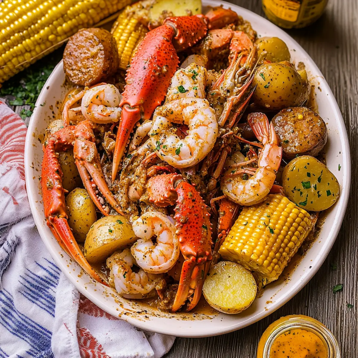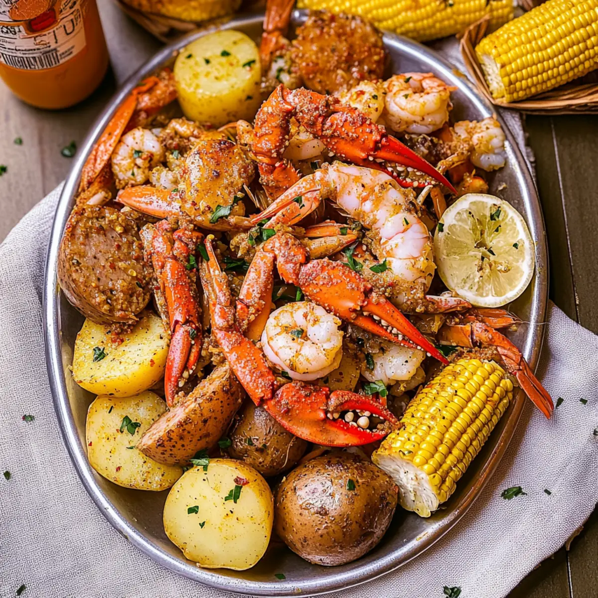As I walked through a bustling summer market, the inviting scent of simmering spices wafted through the air, instantly transporting me to the vibrant streets of Louisiana. Today, I’m thrilled to share my recipe for the Ultimate Cajun Seafood Boil with Garlic Butter Sauce—a dish that’s as much about the experience as it is about the flavors. This delightful seafood medley features jumbo shrimp, succulent crab, and tender potatoes, creating a heartwarming meal that’s perfect for gatherings or those cozy nights at home. With quick prep and a deliciously messy twist, it’s a fun way to savor Southern comfort food with family and friends. So, are you ready to dive into this flavorful feast and create memorable moments around the table? Why is this seafood boil irresistible? Freshness at Its Finest: Using fresh ingredients like jumbo shrimp and crab ensures a delightful burst of flavor that elevates your dining experience. Flavor Explosion: The combination of Cajun seasoning and garlic butter sauce creates a robust, zesty flavor that lingers with each bite. Fun & Interactive Meal: This dish is perfect for gatherings, encouraging everyone to dig in and enjoy messy fun together as you share stories and laughter. Easy Preparation: With simple steps and minimal fuss, you’ll whip up this showstopper without breaking a sweat. Versatile Delight: Customize your boil with various seafood options or spice levels to cater to your crowd’s tastes, ensuring everyone leaves satisfied. Don’t forget to check out my other recipes for delicious options like Garlic Butter Steak or Garlic Butter Scallops for more amazing flavor inspirations! Cajun Seafood Boil Ingredients • Dive into this delicious classic! For the Seafood Jumbo Shrimp – ideal for a sweet, succulent bite; opt for fresh or frozen, deveined for easy cooking. Crab – adds a tender, flaky richness; select pre-cooked legs for convenience. For the Sausage & Veggies Andouille Sausage – brings a smoky flavor to the mix; swap with kielbasa for a milder option if desired. Potatoes – act as the hearty filler; cut baby gold or red potatoes into quarters for even cooking. Corn on the Cob – contributes a sweet crunch; small ears are perfect for serving. Eggs – hard-boiled for protein and creaminess; be sure they’re fully cooked for the best flavor. For the Flavoring Garlic Butter Sauce – crafted with butter, garlic, and optional hot sauce to enhance all ingredients for a heavenly finish. Cajun Seasoning – a spice blend that deepens the broth; try Old Bay seasoning as an alternative for a different flavor profile. Beer (optional) – enriches the broth’s depth; go for a lager, IPA, or pilsner, or simply use water or broth if you prefer. Embrace the essence of the Cajun seafood boil with garlic butter sauce, and let the memories of laughter and shared meals flow! Step‑by‑Step Instructions for Cajun Seafood Boil with Garlic Butter Sauce Step 1: Prepare the Broth Start by filling a large pot with enough water to cover all your seafood and vegetables, approximately 4-6 quarts. If you’re using beer, add it now along with Cajun seasoning for a flavor boost. Bring the mixture to a rolling boil over high heat, and let the fragrant spices infuse for about 5 minutes. Step 2: Cook the Potatoes Once boiling, carefully add the quartered potatoes to the pot. Reduce the heat to medium and let them simmer uncovered for 10-15 minutes, or until they are fork-tender. This step is crucial for achieving perfectly soft potatoes that will absorb the rich flavors of the Cajun broth. Step 3: Add Sausage and Corn Next, toss in the sliced andouille sausage and the corn on the cob. Increase the heat back to medium-high and let the mix cook for another 5 minutes, allowing the flavors to meld. The sausages should be heated through, and the corn will soften slightly while retaining its crunchy texture. Step 4: Incorporate the Seafood Now it’s time to add the crab legs and jumbo shrimp to the pot. Gently stir everything together and let it simmer for an additional 5-7 minutes. You’ll know it’s ready when the shrimp turns pink and opaque, indicating they’ve cooked through, and the crab legs are heated thoroughly. Step 5: Create the Garlic Butter Sauce While your seafood boil is cooking, melt a generous amount of butter in a separate small pan over low heat. Add minced garlic and a splash of hot sauce, stirring constantly for about 2-3 minutes until the garlic is fragrant but not browned. This garlic butter sauce is the essential finishing touch for your Cajun seafood boil. Step 6: Drain and Serve Once everything is perfectly cooked, turn off the heat and carefully drain the seafood and vegetables using a colander. Arrange them on a large serving platter, creating an inviting and colorful display. Drizzle the delicious garlic butter sauce generously over the top, making sure each piece is beautifully coated before serving. What to Serve with Cajun Seafood Boil with Garlic Butter Sauce As you prepare to share this mouthwatering seafood delight, consider these inviting sides and sips that elevate your meal experience. Crusty Garlic Bread: Perfect for soaking up that rich garlic butter sauce, this bread brings a warm, comforting crunch to each bite. Coleslaw: A refreshing, crisp side that adds a delightful crunch and balances the spiciness of the seafood boil. Plus, it’s a great way to add some color to your table! Cornbread: This sweet, buttery bread harmonizes beautifully with the bold flavors of the Cajun spices, making it a must-have for any Southern feast. Lemon Wedges: A simple touch that brightens up the dish; drizzling fresh lemon juice enhances the seafood’s natural sweetness and adds a zesty twist. Iced Tea or Lemonade: A refreshing beverage choice to wash down all that deliciousness; the sweetness of lemonade or the crispness of iced tea complements the spices wonderfully. Potato Salad: A creamy, chilled side that provides a soothing 