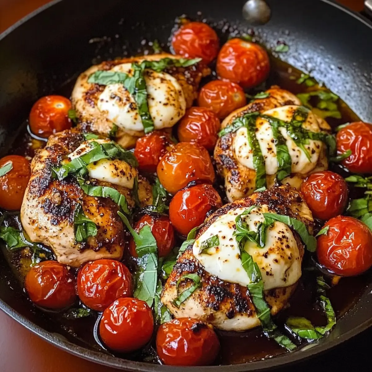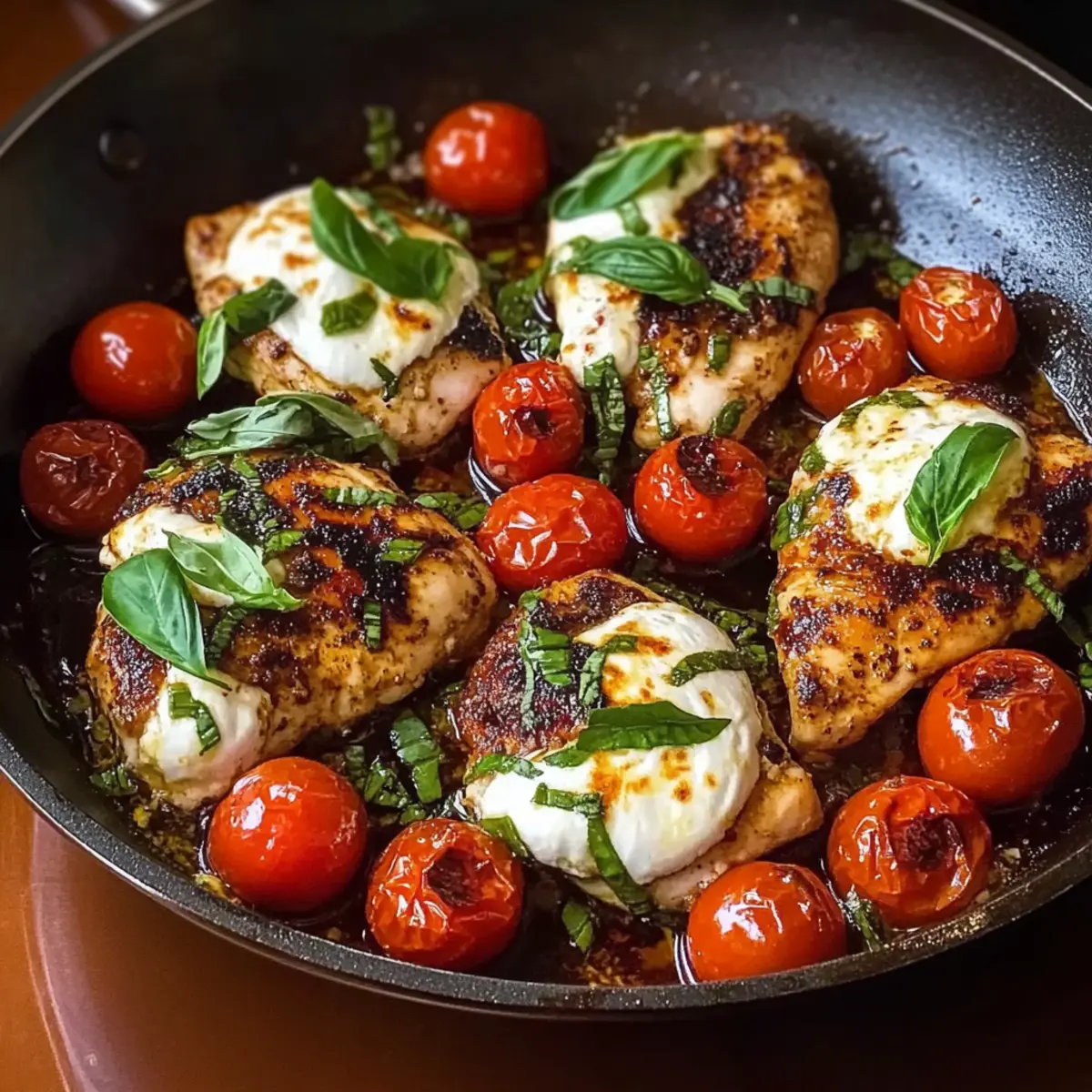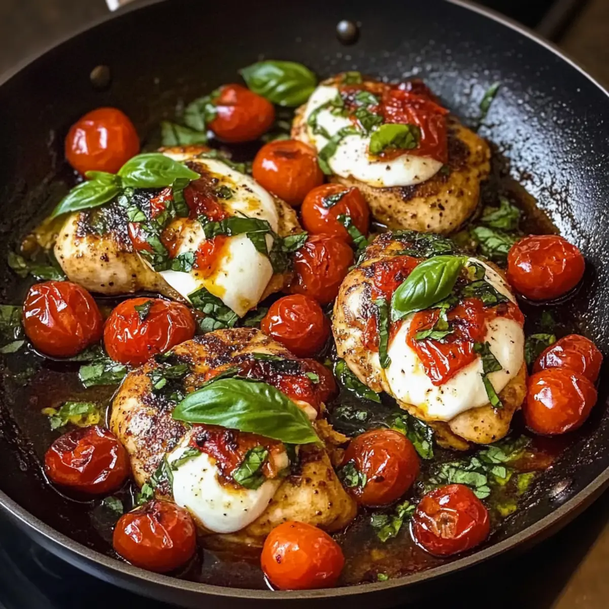 The aroma of sizzling chicken mingling with ripe cherry tomatoes is enough to transport me to a sun-kissed kitchen in Italy. With this Caprese Chicken Skillet, you can effortlessly elevate your weeknight dinners to a whole new level. Picture juicy, golden-seared chicken crowned with warm, melty mozzarella and bursting with vibrant flavors—this recipe is not just easy to make, but it’s also gluten-free and perfect for busy evenings. You’ll love how it requires minimal cleanup while delivering a gourmet experience that leaves everyone at the table impressed. Are you ready to discover a dinner that feels like a special occasion? Why is Caprese Chicken Skillet a Must-Try? Simplicity at Its Best: This dish comes together in under 30 minutes, making it ideal for those hectic weeknights. Flavor Explosion: With the harmony of juicy chicken, creamy mozzarella, and bursting cherry tomatoes, every bite is a delightful experience. Gluten-Free Goodness: Naturally gluten-free, it caters to various dietary needs without compromising on taste. Versatile Ingredients: Enjoy it as is or customize with veggies like bell peppers for added crunch and flavor. Dinner Winner: Impress your family and guests alike; it’s a guaranteed crowd-pleaser that feels fancy without the fuss. Pair it with a refreshing side like a Tzatziki Chicken Veggie Naan Pizza for a complete meal! Caprese Chicken Skillet Ingredients For the Chicken Boneless, Skinless Chicken Breasts – A lean protein base for this mouthwatering dish; ensure they are evenly sized for uniform cooking. Salt & Black Pepper – Essential seasonings that enhance the flavor of the chicken beautifully. Dried Italian Seasoning – Adds classic Mediterranean flavors that perfectly complement the chicken. For the Topping Fresh Mozzarella – Creamy and essential for the Caprese experience; opt for fresh balls or slices for the best melt. Cherry Tomatoes – These tender and sweet gems burst with flavor, bringing a touch of freshness; substitute with grape tomatoes if needed. Fresh Basil – A fragrant herb that brightens the dish; add it last to maintain its vibrant color and aroma. For Cooking Olive Oil – Used for searing the chicken, ensuring a golden crust and delicious flavor. Garlic – Freshly minced for aromatic depth that elevates the dish. Chicken Broth (Optional) – Perfect for deglazing and adding richness to the sauce; you can skip it if you prefer a lighter option. This Caprese Chicken Skillet is sure to deliver a fabulous experience, full of hearty flavors that your family will adore! Step‑by‑Step Instructions for Caprese Chicken Skillet Step 1: Prepare Chicken Pat the boneless, skinless chicken breasts dry using paper towels, ensuring they’re moisture-free for a perfect sear. Generously season both sides with salt, black pepper, and dried Italian seasoning, creating a flavorful base. This seasoning will enhance the taste of your Caprese Chicken Skillet, so take your time to coat them evenly. Step 2: Sear Chicken In a large skillet, heat 2 tablespoons of olive oil over medium-high heat until shimmering, about 1-2 minutes. Carefully place the seasoned chicken breasts in the skillet, searing for 4-5 minutes on each side until they develop a golden brown crust. Keep an eye on them to avoid burning, as the skillet should be hot but not smoking. Step 3: Rest Chicken Once the chicken is beautifully seared, transfer it to a plate and let it rest for at least 5 minutes. This resting period allows the juices to redistribute throughout the meat, ensuring each bite of your Caprese Chicken Skillet will be juicy and tender. Cover it lightly with foil to keep it warm while you prepare the next steps. Step 4: Cook Tomatoes In the same skillet, reduce the heat to medium-low and add 2 cloves of freshly minced garlic, stirring until fragrant, about 30 seconds. Then, toss in the cherry tomatoes, cooking for 5-7 minutes. Stir occasionally until they soften and begin to burst, releasing their sweet juices that will create a delightful sauce. Step 5: Deglaze (Optional) If you’re using chicken broth, pour in about 1/4 cup, scraping up any browned bits from the bottom of the skillet with a wooden spoon. Let it simmer for about 2 minutes, allowing the broth to reduce slightly and intensify the flavors, creating a rich base for your Caprese Chicken Skillet. Step 6: Assemble Dish Return the seared chicken breasts to the skillet and layer slices of fresh mozzarella on top of each piece. This step is crucial to achieving the gooey, delicious topping that Caprese Chicken Skillet is known for, so be generous with the cheese. Step 7: Finish Cooking Cover the skillet with a lid, lowering the heat to low, and cook for an additional 8-12 minutes. Use a meat thermometer to check that the chicken has reached an internal temperature of 165°F, ensuring it is cooked through. During this time, the mozzarella will melt beautifully over the chicken. Step 8: Final Rest Once cooked, remove the skillet from heat and let it sit, covered, for about 5 minutes. This final rest helps the flavors meld together, making every bite of your Caprese Chicken Skillet a harmonious blend of juicy chicken, rich cheese, and roasted tomatoes. Step 9: Serve To finish, garnish the dish with fresh basil leaves, which will add a burst of vibrant color and aromatic freshness. Spoon some of the pan sauce over the top of the chicken before serving to elevate the dish even more. Your stunning Caprese Chicken Skillet is now ready to impress! What to Serve with Caprese Chicken Skillet Creating the perfect meal is all about balancing flavors and textures, and you’ll find a delightful array of pairings to complement this Italian favorite. Creamy Risotto: Rich and creamy, risotto beautifully soaks up the pan sauce, enhancing each bite of tender chicken. It’s the ultimate comfort food. Garlic Bread: Crusty, buttery garlic bread is perfect for sopping up the savory juices, adding a satisfying crunch to ea