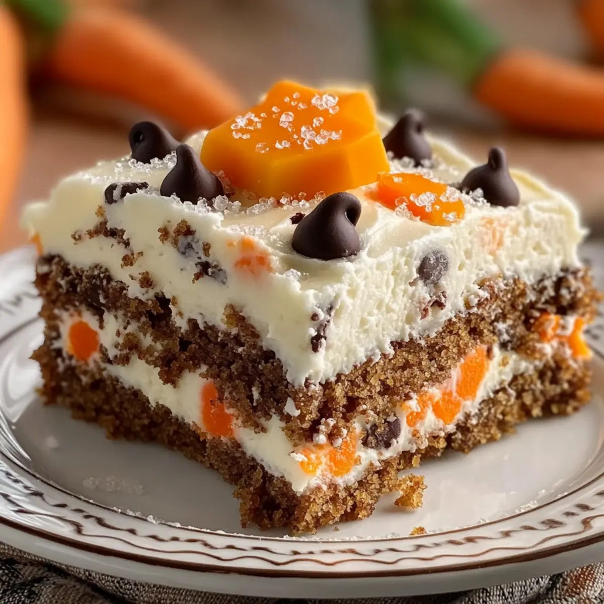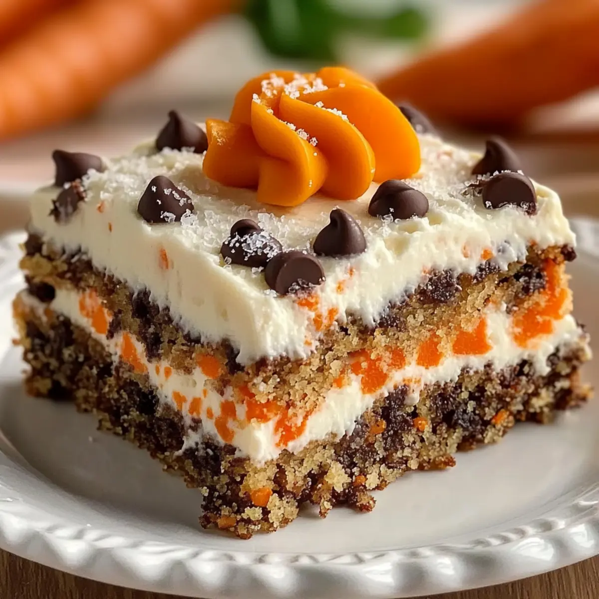 As the aroma of baking fills the air, you might find yourself reminiscing about family gatherings and cozy afternoons spent enjoying homemade treats. My Perfectly Moist Carrot Cake Bars with Cream Cheese Frosting not only evoke those warm memories but also bring a delightful twist to classic comfort food. You’ll love how easy these bars are to whip up, making them a stunning yet simple dessert perfect for any occasion. Plus, with optional mix-ins like chocolate chips and dried fruit, you can customize each batch to suit your taste. Are you ready to create a kitchen masterpiece that will have everyone asking for seconds? Why Are Carrot Cake Bars a Must-Try? Irresistible Flavor: These carrot cake bars combine the sweetness of finely shredded carrots with the warm embrace of aromatic spices, creating a nostalgic dessert experience. Easy to Make: With minimal effort and straightforward steps, even beginner bakers can whip up this delightful treat. Versatile Customization: Mix in your favorite ingredients like chocolate chips or dried fruit, making every batch unique. Perfect for Any Occasion: Whether for potlucks, parties, or a cozy afternoon tea, these bars are sure to impress guests. Plus, they pair beautifully with Cheesecake Fruit Salad for a delightful dessert spread! Moist and Tender: This recipe guarantees bars so moist that they melt in your mouth, topped with a heavenly cream cheese frosting that provides the perfect balance of sweetness. Make-Ahead Friendly: Bake and store them in the fridge for quick, delicious treats anytime. Get ready to enjoy a homemade dessert that brings joy to every bite! Carrot Cake Bars Ingredients • Here’s everything you need to make your Carrot Cake Bars with Cream Cheese Frosting absolutely perfect! For the Batter All-Purpose Flour – Provides structure; you can substitute with a gluten-free blend for a gluten-free option. Baking Soda – Acts as a leavening agent for a light texture. Salt – Balances and enhances the flavors. Ground Cinnamon – Adds a warm, spiced flavor that complements the carrots beautifully. Ground Nutmeg – Enhances the aromatic profile, giving depth to the bars. Granulated Sugar – Sweetens the cake; reduce by 1/4 cup for less sweetness without losing flavor. Light Brown Sugar – Adds moisture and rich flavor due to its molasses content. Vegetable Oil – Keeps the bars moist; substitute with applesauce for a lighter version if desired. Large Eggs (room temperature) – Binds ingredients and enriches the cake; room temperature eggs emulsify better. Vanilla Extract – Enhances the overall flavor profile. Finely Shredded Carrots – The star of the show, providing moisture and lovely texture; using a food processor makes shredding a breeze. Chocolate Chips – Adds sweetness and bursts of flavor; swap with nuts for a crunchy texture. Mixed Dried Fruit (like chopped pineapple and raisins) – Imparts a chewy texture and delightful sweetness; feel free to experiment with cranberries or apricots. For the Cream Cheese Frosting Cream Cheese (softened) – The base for the creamy, rich frosting. Unsalted Butter (softened) – Adds extra richness to the frosting; make sure it’s softened for easy mixing. Powdered Sugar (sifted) – Sweetens and thickens the frosting to your desired texture. Flaky Sea Salt – A sprinkle on top enhances flavors and adds a gourmet touch. Candy Carrots – Optional garnish for a festive, playful presentation! This lineup of ingredients will create a deliciously moist carrot cake bar experience paired with irresistible cream cheese frosting. Just imagine how these will melt in your mouth! Step‑by‑Step Instructions for Carrot Cake Bars with Cream Cheese Frosting Step 1: Preheat and Prepare Preheat your oven to 350°F (175°C) and prepare a 9×13 inch baking pan by greasing it lightly or lining it with parchment paper for easy removal. This will ensure that your delicious carrot cake bars come out perfectly without sticking. While the oven heats, gather your ingredients for a smooth cooking experience. Step 2: Mix Dry Ingredients In a medium mixing bowl, whisk together the all-purpose flour, baking soda, salt, ground cinnamon, and ground nutmeg until well combined. This blend of dry ingredients forms the foundation for your moist carrot cake bars, and you’ll want to ensure there are no lumps. Set this bowl aside and progress to the next step while the warm scents of the spices begin to fill your kitchen. Step 3: Combine Wet Ingredients In a large mixing bowl, combine the granulated sugar, brown sugar, and vegetable oil, whisking until the mixture lightens in color and consistency. This step usually takes about 2 minutes; the sugars should be well incorporated, giving your bars a rich sweetness. Now, it’s time to bring in the eggs! Step 4: Add Eggs and Vanilla Incorporate the large eggs one at a time into the wet mixture, whisking thoroughly after each addition. Then, stir in the vanilla extract, ensuring a smooth batter that’s rich and luxurious. This step adds depth to the flavor of your carrot cake bars with cream cheese frosting, making them irresistible. Step 5: Combine Wet and Dry Ingredients Gently fold the dry ingredients into the wet mixture until just combined, taking care not to overmix. Aim for a smooth batter with a few streaks of flour visible. This process typically takes about a minute; overmixing can lead to dense bars, so be gentle as you bring the mixture together. Step 6: Add Carrots and Mix-Ins Now it’s time to add the finely shredded carrots, chocolate chips, and mixed dried fruit to the batter. Using a spatula, fold these ingredients in lightly until evenly distributed. Your carrot cake bars are going to shine with bursts of flavor from these additions, so ensure everything is incorporated without overworking the batter. Step 7: Spread Batter and Bake Pour the batter into the prepared baking pan, spreading it evenly with a spatula. Bake in the preheated oven for 3
