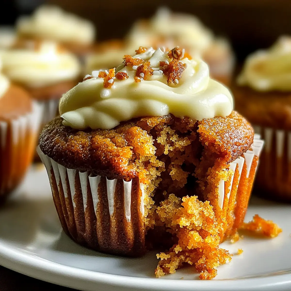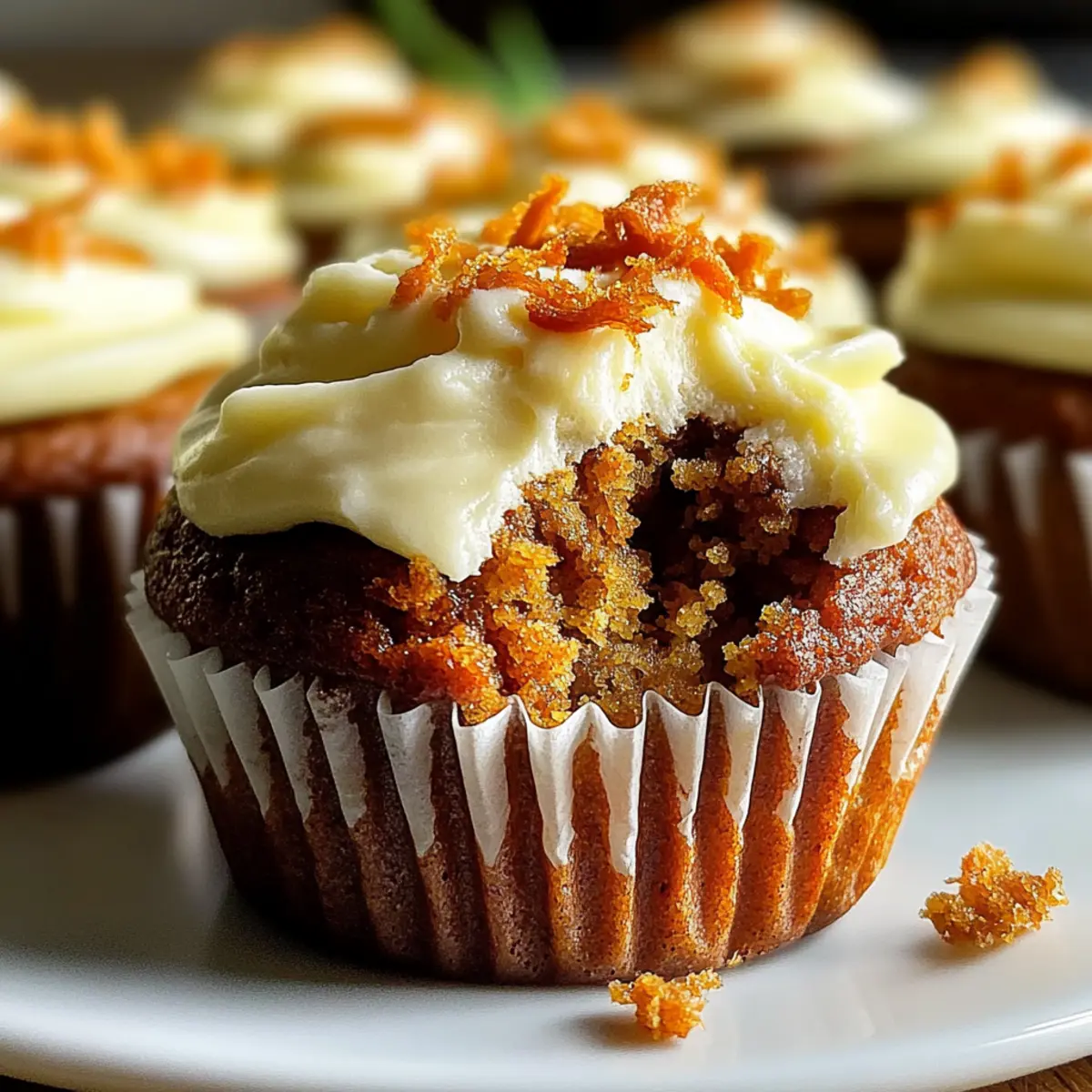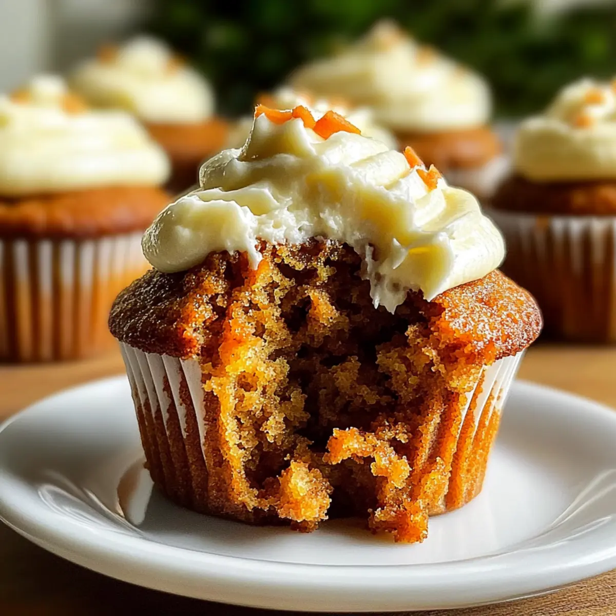 You won’t believe how quickly your kitchen can transform into a baking wonderland with these delightful Carrot Cake Muffins with Cream Cheese Frosting. The warm aroma of cinnamon mingling with the sweet scent of freshly grated carrots will draw you in as soon as they hit the oven. What makes these muffins so irresistible? They’re not just quick and easy to whip up; they’re also a versatile treat that can straddle the line between breakfast and dessert effortlessly! Perfect for bustling mornings or a cozy afternoon snack, these muffins offer a comforting escape from the ordinary. Plus, the creamy frosting elevates every bite, turning simple moments into joyful indulgences. Ready to embrace a homemade delight that’s sure to win hearts? Let’s dive into the recipe that brings a sprinkle of sweetness to your day! Why are these muffins so special? Irresistible Flavor: Each muffin bursts with warm cinnamon and sweet carrot, creating a delightful balance that’s hard to resist. Quick and Easy: With simple ingredients and minimal prep time, you can whip up a batch in no time! Versatile Treat: Perfect for breakfast or as a delectable dessert option, these muffins effortlessly fit any occasion. Enjoy alongside a refreshing Cheesecake Fruit Salad for an extra burst of flavor. Moist and Fluffy: The combination of grated carrots and a touch of vegetable oil ensures each bite is a little cloud of goodness. Creamy Finish: A luscious cream cheese frosting adds the perfect tangy richness, elevating your muffin experience to something extraordinary. Crowd-Pleaser: Whether it’s a family brunch or a casual snack with friends, these muffins are sure to win hearts and satisfy cravings! Carrot Cake Muffins With Cream Cheese Frosting Ingredients For the Muffins Grated Carrots – Provides natural sweetness and moisture; ensure you use fresh carrots for the best flavor. All-Purpose Flour – Gives structure and stability; you can substitute with whole wheat flour for added nutrition. Brown Sugar – Adds depth and moisture to the muffins; consider using coconut sugar for a lower glycemic option. Cinnamon – Offers warm spice flavor; for an extra kick, feel free to mix in a dash of nutmeg or ginger. Baking Powder – Helps muffins rise; make sure it’s fresh for optimal leavening. Eggs – Binds ingredients together and adds moisture; try flax eggs for a vegan alternative. Vegetable Oil – Keeps muffins moist; you can use applesauce for a lighter and fruitier version. Vanilla Extract – Enhances the overall flavor and adds a lovely aroma. For the Cream Cheese Frosting Cream Cheese – The star of the frosting, providing tangy richness; for a lighter frosting, use Greek yogurt mixed with cream cheese. Powdered Sugar – Sweetens the frosting; feel free to adjust based on your taste preferences. Vanilla Extract – Complements the cream cheese beautifully and adds depth to the flavor. These Carrot Cake Muffins with Cream Cheese Frosting are the ultimate treat that perfectly combines sweetness and spice, making them a delightful option for any time of day! Step‑by‑Step Instructions for Carrot Cake Muffins With Cream Cheese Frosting Step 1: Preheat the Oven Begin by preheating your oven to 350°F (175°C). Meanwhile, line a standard muffin tin with paper liners, which will help prevent the muffins from sticking and aid in easy removal. This preparation is key to achieving perfectly baked Carrot Cake Muffins that rise beautifully and have a lovely golden color. Step 2: Mix Dry Ingredients In a large mixing bowl, whisk together the all-purpose flour, baking powder, cinnamon, and a pinch of salt. Ensure the ingredients are well combined and that there are no lumps. This dry mix serves as the foundation of your Carrot Cake Muffins, providing structure and flavor that complements the moisture from the carrots. Step 3: Combine Wet Ingredients In a separate bowl, combine the freshly grated carrots, brown sugar, eggs, and vegetable oil. Whisk these ingredients together until they’re nicely blended and the mixture appears smooth. The carrots will add natural sweetness and moisture, creating a deliciously tender crumb once baked into muffins. Step 4: Blend Dry and Wet Mixtures Slowly add the dry ingredient mixture to the wet ingredients, stirring gently until just combined. Be cautious not to overmix; a few lumps are perfectly fine. This step is crucial, as overmixing can lead to dense muffins. The resulting batter will be slightly thick, filled with the warmth of spices and the delightful scent of carrot. Step 5: Portion the Batter Using a large spoon or a muffin scoop, evenly distribute the batter into the prepared muffin tins, filling each cup about two-thirds full. This allows enough space for the muffins to rise without overflowing. As you fill them, take a moment to appreciate the vibrant orange flecks of carrot peeking through the batter—an inviting sight! Step 6: Bake the Muffins Place the muffin tin in the preheated oven and bake for 18 to 20 minutes. Keep an eye on them and start checking at the 18-minute mark; they’re done when a toothpick inserted into the center comes out clean or with a few moist crumbs. The muffins should have a lovely golden hue on top, signaling that they’re ready to come out. Step 7: Cool Before Frosting Once baked, remove the tin from the oven and let it cool for about 10 minutes in the pan. Then, transfer the muffins to a wire rack to cool completely. This step is essential, as it ensures the muffins set properly and prevents the cream cheese frosting from melting into a gooey mess. Step 8: Prepare the Cream Cheese Frosting While the muffins are cooling, it’s time to whip up the cream cheese frosting. In a medium bowl, beat the softened cream cheese with powdered sugar and a splash of vanilla extract until smooth and creamy. Make sure to mix thoroughly to achieve a rich and fluffy texture that will beautifully complement your Carrot Cake Muffins. Step 9: Frost 