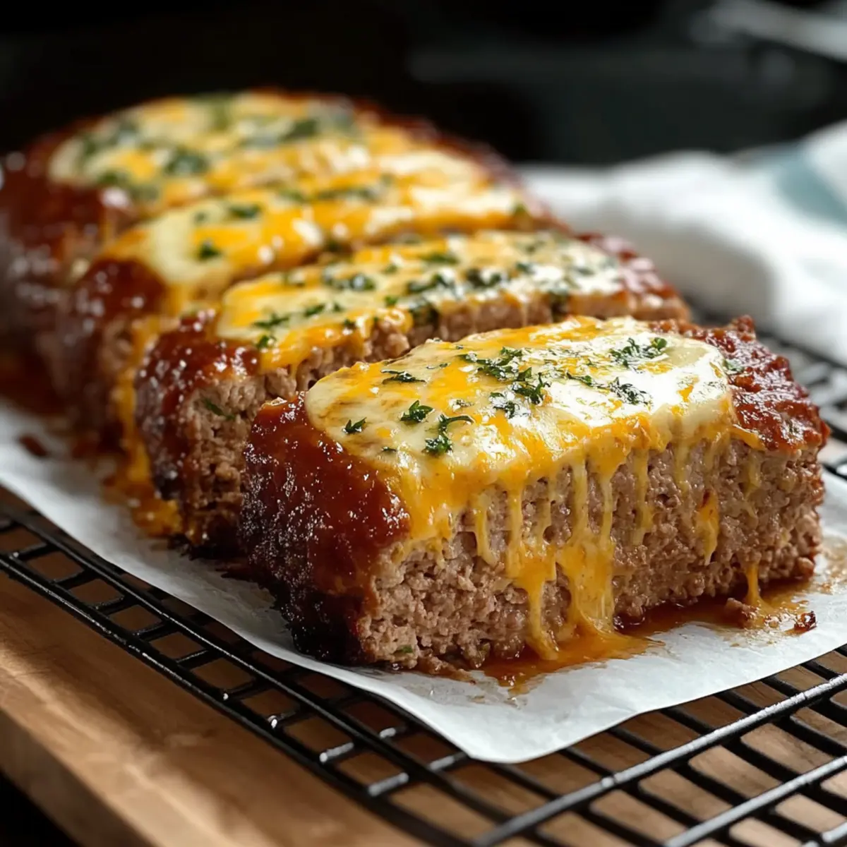 Comforting, Cheesy Goodness: Each slice of this Cheddar-Stuffed Meatloaf reveals a gooey cheese center that takes the classic dish to new heights.