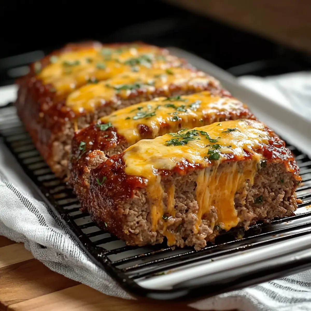 Once baked to perfection, remove your Cheddar-Stuffed Meatloaf from the oven and allow it to rest for 10 minutes before slicing. This rest period helps the juices redistribute, resulting in a moist, flavorful meatloaf. You can garnish with chopped parsley for an added touch before serving.