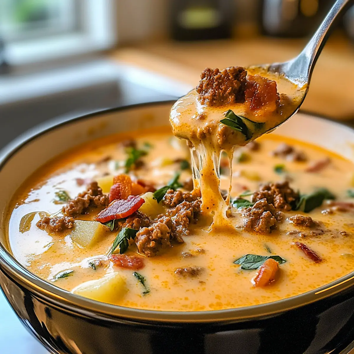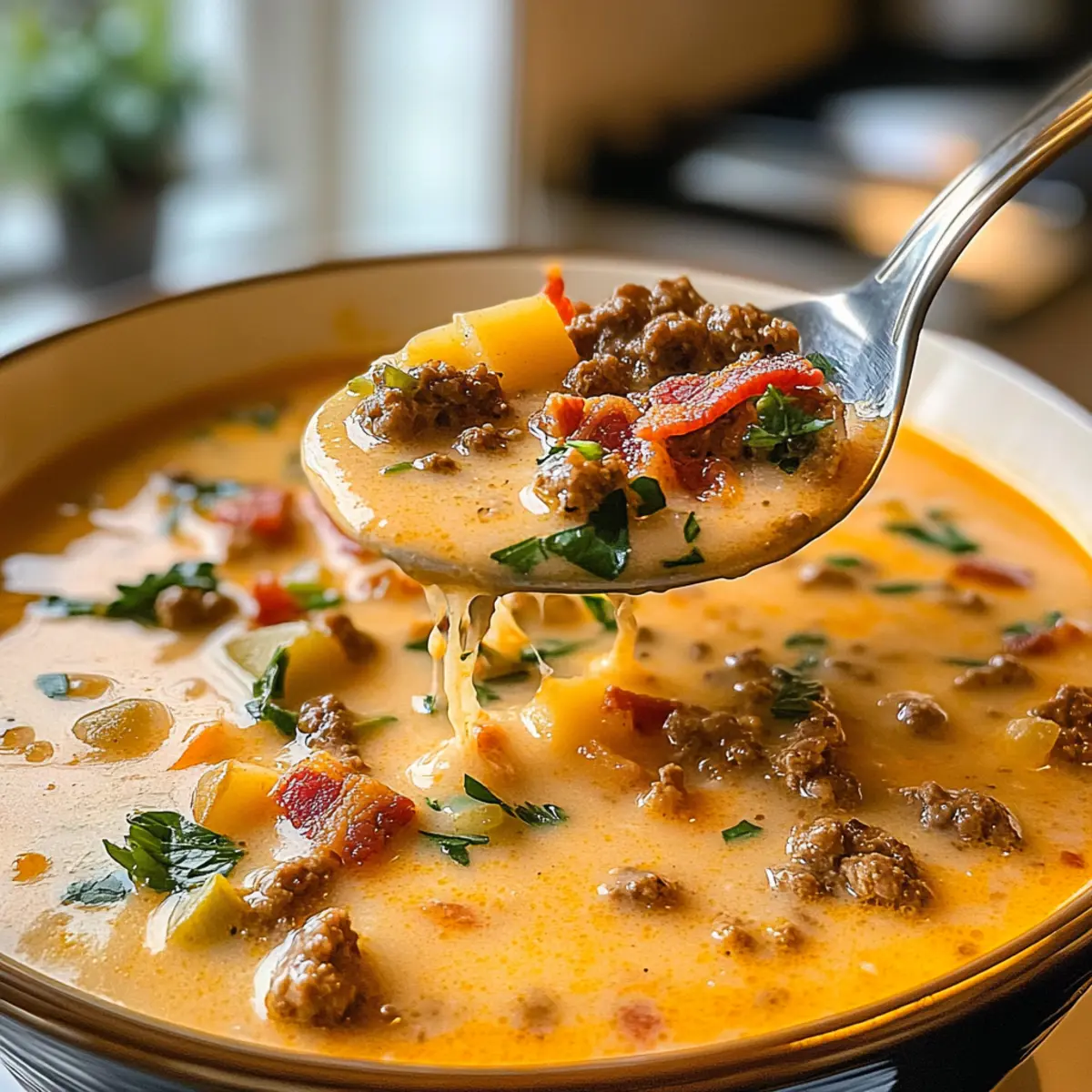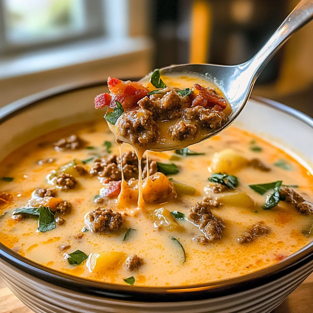 The unmistakable aroma of simmering comfort food fills the air as you prepare a pot of Crockpot Cheeseburger Soup. This dish effortlessly marries the nostalgic flavors of a classic cheeseburger with the cozy richness of your favorite soup. With its creamy texture and hearty ingredients, it’s sure to become a staple during those chilly nights when all you want is something warm and satisfying. Not only is this recipe easy to throw together, thanks to the slow cooker, but it’s also a crowd-pleaser that even the pickiest eaters will adore. Imagine serving up a bowl filled with tender potatoes, savory beef, and melty cheddar, all while basking in the joy of dining with loved ones. Are you ready to learn just how simple it is to whip up this delightful dish? Why is this Cheeseburger Soup a must-try? Comfort at its Core: This Crockpot Cheeseburger Soup wraps you in a comforting embrace, perfect for chilly evenings. Flavor Explosion: The savory blend of beef and cheese creates a deliciously rich taste that will have your family coming back for seconds. Simple Preparation: With minimal prep and a slow cooker doing the hard work, you can enjoy more time relaxing with loved ones. Versatile Options: Feel free to experiment! Swap ground beef for turkey or chicken, or add jalapeños for a little heat. Crowd Favorite: Easy to serve, this soup appeals to both kids and adults, making it perfect for family dinners or gatherings. Pair it with hearty sides like Ravioli Soup Cozy or Hearty Olive Soup for an unforgettable meal! Cheeseburger Soup Ingredients For the Soup Base • Ground Beef – This provides the essential umami flavor and heartiness; you can substitute with ground turkey or chicken for a lighter option. • Onion – Adds sweetness and depth; use a medium onion, finely chopped for optimal flavor. • Garlic – Fresh cloves bring aromatic depth; about 3-4 cloves will enhance the taste remarkably. • Potatoes – Diced potatoes make the soup hearty; opt for waxy varieties like Yukon Gold for creaminess. • Carrots – Introduce color and natural sweetness, beautifully balancing the dish. • Beef Broth – Low-sodium is best to maintain flavor without overwhelming saltiness. For the Creaminess • Heavy Cream – This crucial ingredient provides richness and a luxurious texture; don’t skimp for optimal creaminess! • Cheddar Cheese – Shredded sharp cheddar delivers that iconic cheeseburger flavor when melted into the soup. Optional Topping • Bacon Bits – A crunchy garnish that adds a delicious smoky flavor; perfect for those who enjoy an extra texture. This Crockpot Cheeseburger Soup is sure to become your go-to recipe for comfort food and warmth! Step‑by‑Step Instructions for Crockpot Cheeseburger Soup Step 1: Prep Ingredients Begin by gathering all your ingredients. Chop the onion, garlic, carrots, and potatoes into bite-sized pieces, making sure they are evenly sized for even cooking. Set up your crockpot to get ready for the delicious Crockpot Cheeseburger Soup that awaits. This prep work will ensure a smooth cooking process. Step 2: Sauté Ground Beef and Aromatics In a skillet over medium heat, brown the ground beef until it’s no longer pink, typically about 5-7 minutes. Drain any excess fat to keep the soup from being greasy. Add the chopped onion and minced garlic to the skillet and sauté for an additional 3-4 minutes until the onion is translucent and fragrant, enhancing the savory aroma of your cheeseburger soup. Step 3: Add to Crockpot Transfer the sautéed beef mixture into the crockpot, followed by the diced potatoes, sliced carrots, beef broth, and season with salt and pepper to taste. Give it a good stir to combine all the ingredients thoroughly, ensuring that the flavor of the beef and vegetables meld beautifully in your Crockpot Cheeseburger Soup. Step 4: Simmer Cover the crockpot and set it to cook on low for 6-8 hours or on high for 3-4 hours. The goal is for the vegetables to become tender and the flavors to blend harmoniously. You’ll know it’s ready when you can easily pierce the potatoes with a fork and the irresistible aroma fills your kitchen! Step 5: Add Cream and Cheese About 30 minutes before serving, gently stir in the heavy cream and shredded cheddar cheese. Watch as the cheese melts into the soup, creating a creamy and rich texture that enhances the cheeseburger flavor. Adjust salt and pepper according to your taste to ensure the perfect balance. Step 6: Serve Ladle the Crockpot Cheeseburger Soup into bowls and serve hot. Ideal for chilly nights, this delightful soup pairs wonderfully with crusty bread or crunchy crackers that will soak up every delicious drop. Gather your loved ones and enjoy this warm, comforting dish together! Cheeseburger Soup Variations Feel free to make this delicious Cheeseburger Soup your own with these delightful variations and substitutions! Turkey or Chicken: Swap ground beef for ground turkey or chicken for a lighter, leaner soup without losing flavor. Try using garlic herb seasoning to elevate the chicken, giving it an extra punch. Veggie Boost: Add diced bell peppers, zucchini, or even corn for extra color and nutrition. Not only would this make it visually appealing, but the added veggies enhance its heartiness! Spice it Up: Incorporate diced jalapeños or red chili flakes for a hot twist that will warm you from the inside out. This spicy variation can turn a cozy night into an adventure for your taste buds! Cream Cheese Twist: Reduce the heavy cream and add a block of cream cheese for an ultra-rich and creamy texture. This will ensure a velvety soup that lingers on your palate, perfect for spreading on bread. Thicker Consistency: For a silky texture, mix cornstarch with water and stir it in during the last 30 minutes of cooking. A thicker soup creates a satisfying feeling with every scrumptious bite! Cheesy Delight: Experiment with a mix of cheeses such as Monterey Jack or pepper jack for a unique flavor 