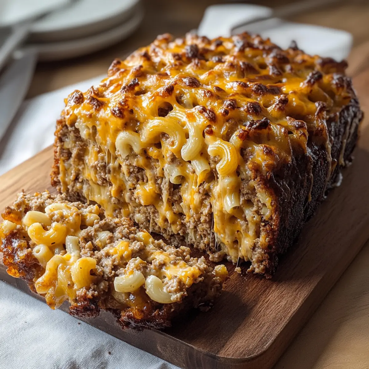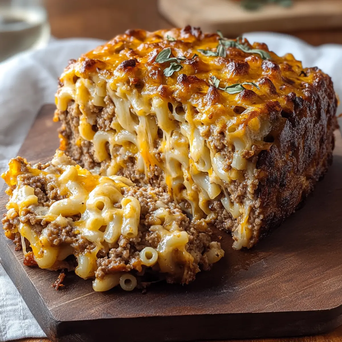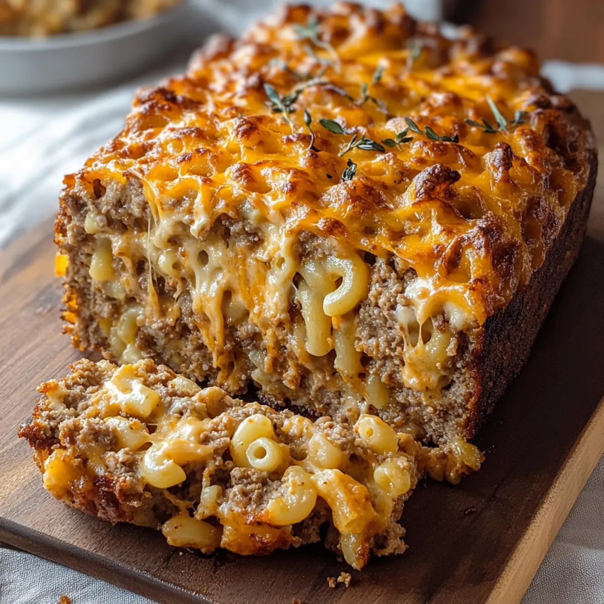 The smell of freshly baked meatloaf wafted through my kitchen, transporting me back to cozy family dinners. If you’re in the mood for a comforting dish that combines the hearty richness of ground beef with the creamy goodness of pasta, then you’re in for a treat with this Cheesy Macaroni-Stuffed Homestyle Meatloaf. It’s not just a meal; it’s a nostalgic hug in food form, making it a hit with both kids and adults alike. Plus, it’s budget-friendly and adaptable—sneak in veggies or swap out ingredients to make it your own! Are you ready to whip up this delightful dish that turns a classic favorite on its head? Let’s dive in! Why is this meatloaf recipe a must-try? Comfort Food Bliss: This Cheesy Macaroni-Stuffed Homestyle Meatloaf combines the best of two favorites, giving your family a hearty meal they’ll adore. Budget-Friendly: Using staple ingredients, this recipe makes it easy to whip up a delicious dinner without breaking the bank. Endless Customization: Tailor the flavors by swapping ingredients, like trying Cheesy Hamburger Rice for a different twist or adding your favorite veggies. Kid-Approved: The cheesy macaroni filling makes this dish incredibly appealing to children, turning even picky eaters into fans! Time-Saving Delight: With minimal prep and just one hour in the oven, you’ll have a satisfying dish ready for busy weeknight dinners. This comforting meal truly brings everyone together around the table! Cheesy Macaroni-Stuffed Homestyle Meatloaf Ingredients For the Meatloaf Cooked Macaroni – Provides that creamy, cheesy base everyone loves; use whole grain pasta for a healthier option. Ground Chuck – The savory protein foundation; swap for ground turkey or pork for a lighter dish. Fine Soft Bread Crumbs – Binds the mix and adds texture; gluten-free breadcrumbs can be used for dietary needs. Skim Milk – Keeps the meatloaf moist without excess calories; almond milk is a great lactose-free alternative. Eggs – Essential for binding everything together; flax eggs work if you’re seeking a vegan option. Chopped Onion – Infuses deep flavor and moisture; shallots add a sweeter touch if desired. Chopped Green Peppers – Adds a nice crunch and vibrant color; omit or replace with finely grated carrots for a veggie boost. Reduced-Fat Cheddar Cheese – Offers that classic cheesy flavor; feel free to experiment with pepper jack or mozzarella for a twist. Salt – Enhances and elevates the overall flavor of the dish. Pepper – Brings warmth and depth to each bite. For Serving Ketchup or BBQ Sauce – A traditional topping that can elevate the flavor profile; personalize to your taste! This Cheesy Macaroni-Stuffed Homestyle Meatloaf is all about comfort and creativity, allowing you to tailor it to your family’s preferences! Step‑by‑Step Instructions for Cheesy Macaroni-Stuffed Homestyle Meatloaf Step 1: Preheat the Oven Begin by preheating your oven to 350°F (175°C). This essential step ensures a perfectly cooked Cheesy Macaroni-Stuffed Homestyle Meatloaf, so set your timer for 10 minutes while the oven heats up. As you wait, gather your ingredients to streamline your preparation. Step 2: Cook the Macaroni In a large pot of boiling salted water, cook the macaroni according to the package directions for about 8-10 minutes until al dente. Drain the macaroni thoroughly in a colander, giving it a gentle shake to remove excess water, then set it aside to cool slightly. This provides the creamy base for your meatloaf. Step 3: Combine Ingredients In a large mixing bowl, combine the cooked macaroni, ground chuck, fine soft bread crumbs, milk, eggs, chopped onion, chopped green peppers, reduced-fat cheddar cheese, salt, and pepper. Using a spatula or your hands, mix everything thoroughly until all ingredients are well incorporated, achieving a rich and hearty filling for your Cheesy Macaroni-Stuffed Homestyle Meatloaf. Step 4: Shape the Meatloaf Once the mixture is evenly blended, transfer it to a greased baking dish or loaf pan. Shape the mixture into a loaf, ensuring it’s compact and smooth on the surface. This will help the meatloaf hold its shape during baking and promote even cooking throughout the dish. Step 5: Bake the Meatloaf Place the loaf into your preheated oven and bake for 1 hour. Keep an eye on it; the meatloaf should emerge firm and golden-brown on top, showing that it’s cooked through. A meat thermometer inserted in the center should read at least 160°F (70°C) for safety. Step 6: Rest Before Serving Once baked, carefully remove your Cheesy Macaroni-Stuffed Homestyle Meatloaf from the oven and allow it to rest for about 5 minutes. This resting period is crucial, as it helps the meatloaf firm up and makes slicing easier while retaining all those delicious juices. Step 7: Slice and Enjoy After resting, slice the meatloaf into generous portions and serve warm. The beautiful contrast of cheesy macaroni inside the savory meatloaf will be a showstopper at the dinner table. Pair slices with ketchup or BBQ sauce for an added flavor boost, and enjoy the comforting delight of this hearty dish! Cheesy Macaroni-Stuffed Homestyle Meatloaf Variations Feel free to play with this comforting recipe and make it truly yours with these creative ideas! Dairy-Free: Substitute all dairy products with almond or cashew milk and a vegan cheese alternative. Enjoy a deliciously creamy meatloaf without the dairy! Spicy Kick: Add cayenne pepper or red pepper flakes for a delightful heat. It will give your meatloaf an exciting twist while still being family-friendly. Veggie-Packed: Sneak in extra veggies, such as grated zucchini or spinach, for a nourishing boost. Not only do they add moisture, but they also amp up the health factor without losing flavor. Different Meats: Switch out ground chuck for lean ground turkey or chicken to lighten it up. Both options offer a deliciously satisfying taste while keeping the dish hearty. Cheese Swap: Experiment with gouda or pepper