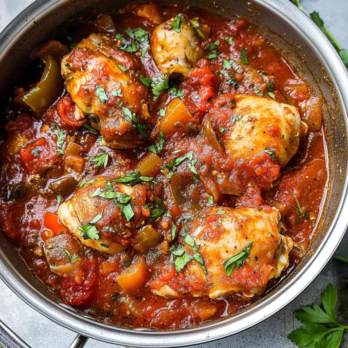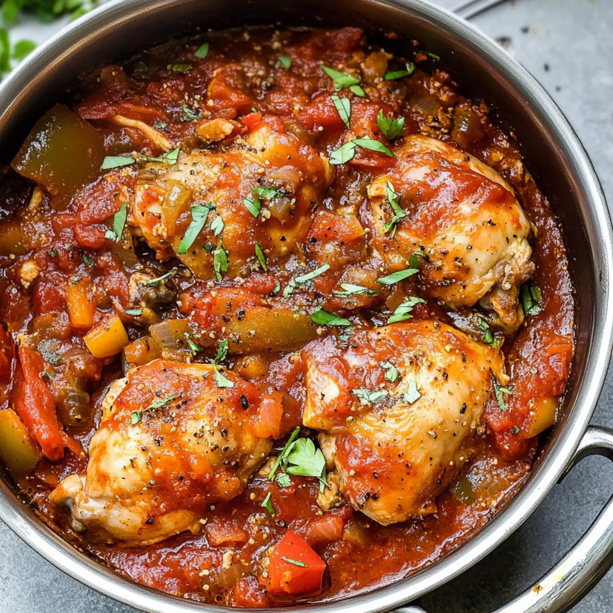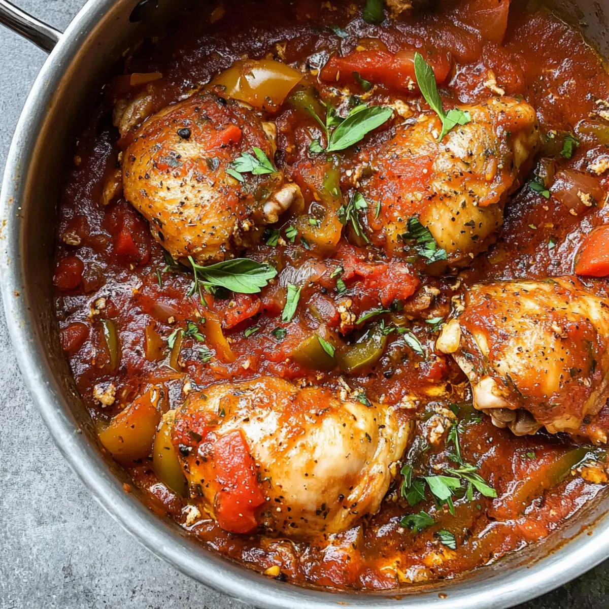 The aroma of sizzling chicken fills the air, transporting me straight to a bustling Italian kitchen. This Easy One-Pot Chicken Cacciatore is not just a meal; it’s a celebration of comforting flavors that wrap you in a warm embrace. With tender chicken thighs basking in a rich, tomato-based sauce loaded with mushrooms and bell peppers, it offers both depth and simplicity in every bite. Perfect for busy weeknights, this dish comes together quickly and minimizes cleanup—leaving you with more time to savor the moments that matter. Whether served over pasta or on its own, it promises to be a crowd-pleaser that even the pickiest eaters will adore. Ready to make your kitchen the heart of your home with this delicious recipe? Let’s dive in! Why is Chicken Cacciatore a Must-Try? Simplicity: This one-pot dish marries convenience and taste, perfect for home cooks of any level. Hearty Flavors: The rich tomato sauce blends beautifully with tender chicken thighs, mushrooms, and bell peppers, creating a comforting meal that feels gourmet. Customizable: Whether you opt for a splash of red wine or throw in some olives, this recipe invites creativity and personal touches. Quick Preparation: In just under an hour, you can whip up a satisfying dinner—ideal for busy weeknights when time is of the essence. Crowd-Pleaser: Serve it over pasta, rice, or polenta, and watch this dish win over even the pickiest eaters—just like our beloved Tzatziki Chicken Veggie Naan Pizza! Chicken Cacciatore Ingredients For the Sauce Olive Oil – Essential for sautéing and adding a rich flavor; avocado oil can be a good substitute. Crushed Tomatoes – Creates the delicious, saucy base; consider using fire-roasted for deeper flavor. Dry White Wine – Enhances the sauce’s depth; replace with low-sodium chicken broth for a non-alcoholic version. Garlic – Infuses the dish with aromatic depth; fresh garlic is preferred, but garlic powder is a substitute. Italian Seasoning – A blend of herbs that brings Italian flavors to life; equal parts dried oregano and basil can be used in its place. Balsamic Vinegar – Balances the sauce with acidity and sweetness; red wine vinegar serves as a nice alternative. For the Chicken Boneless Skinless Chicken Thighs – Tender and flavorful, they’re the star protein; bone-in chicken can be used, but will require a longer cook time. For the Vegetables Yellow Onion – Adds a rich aromatic base; shallots or red onions can provide a milder flavor. Green Bell Pepper – Offers sweetness and vibrant color; any bell pepper variety will work or substitute with zucchini for a low-carb option. Baby Bella (Cremini) Mushrooms – Contributes umami and texture; button mushrooms are a great substitute if desired. For the Seasoning Kosher Salt – Elevates flavor; sea salt or table salt can be used with minor adjustments for salinity. Ground Black Pepper – Adds heat and depth; freshly ground yields the best flavor. For Garnish Fresh Parsley or Basil – Optional, but these herbs finish the dish beautifully and bring a pop of freshness. This Chicken Cacciatore recipe is not only simple to make but will also impress your family with its authentic Italian flavors! Step‑by‑Step Instructions for Easy One-Pot Chicken Cacciatore Step 1: Brown Chicken Heat 2 tablespoons of olive oil in a large Dutch oven over medium-high heat. Season the boneless skinless chicken thighs with kosher salt and ground black pepper, then sear the chicken for about 3-4 minutes on each side until golden brown. Once browned, transfer the chicken to a plate and set aside, allowing the pot to retain those delicious fond flavors. Step 2: Sauté Vegetables Reduce the heat to medium and add the remaining tablespoon of olive oil to the pot. Sauté the diced yellow onion and green bell pepper until softened, approximately 4 minutes. Stir in the minced garlic and cook for 1 more minute until fragrant, making sure not to let it burn. The vegetables should be tender and aromatic, setting the stage for the sauce. Step 3: Deglaze and Simmer Pour in the dry white wine, using a wooden spoon to scrape up any brown bits from the bottom of the pot. Let the wine reduce by half, which should take around 3 minutes. Next, stir in the crushed tomatoes, sliced baby bella mushrooms, Italian seasoning, and balsamic vinegar. Bring the mixture to a gentle simmer, allowing flavors to meld. Step 4: Cook Chicken in Sauce Return the browned chicken to the pot, nestling it into the vibrant sauce. Cover the pot partially and let it simmer for about 15-20 minutes until the chicken is cooked through and reaches an internal temperature of 165°F. The sauce should thicken slightly, enveloping the chicken in a rich and flavorful embrace. Step 5: Final Touches Taste the Chicken Cacciatore and adjust seasonings with additional salt and pepper as needed, ensuring the flavors pop. For serving, you can either shred or dice the chicken into pieces or serve the thighs whole, creating a comforting and hearty dish to enjoy with your favorite side. Expert Tips for Chicken Cacciatore Perfectly Brown: Make sure to well-sear the chicken for maximum flavor. Rushing this step can result in a bland taste—take your time here! Even Cooking: Use a heavy-bottomed pot to promote even heat distribution, preventing any hot spots that could cook the chicken unevenly. Wine Substitute: If you’re avoiding alcohol, simply replace dry white wine with low-sodium chicken broth. This keeps the Chicken Cacciatore flavorful without the added alcohol. Layered Flavors: Consider marinating the chicken thighs beforehand in olive oil and herbs. This extra step enhances the richness of the Chicken Cacciatore. Vegetable Variability: Feel free to mix in seasonal vegetables like zucchini or carrots. They not only add nutrition but also personalize your dish while keeping it close to traditional recipes. How to Store and Freeze Chicken Cacciatore Fridge: Store leftover Chicken Cacciatore in an air