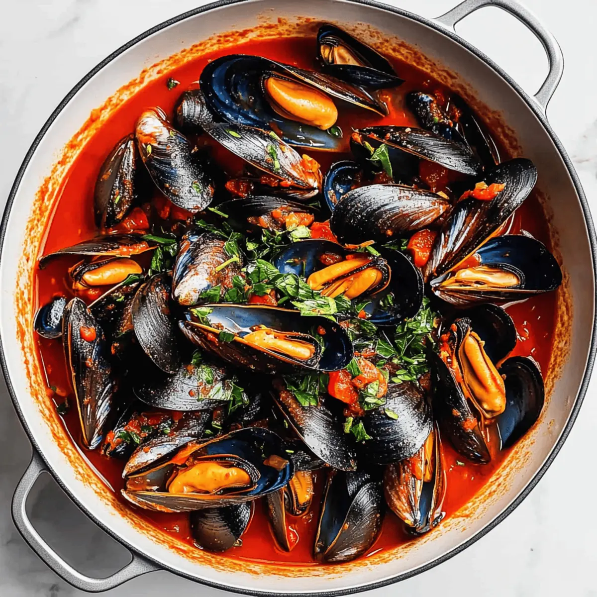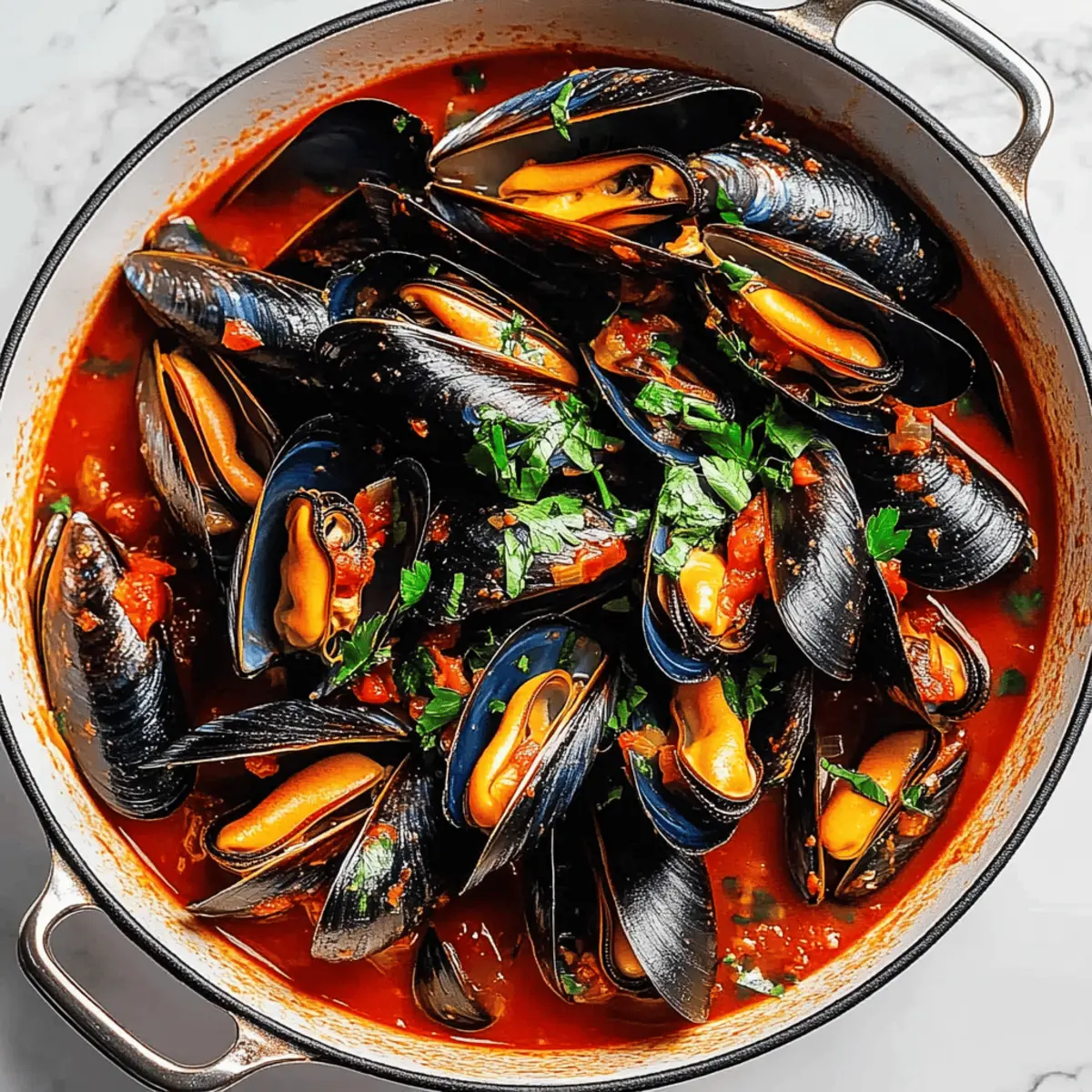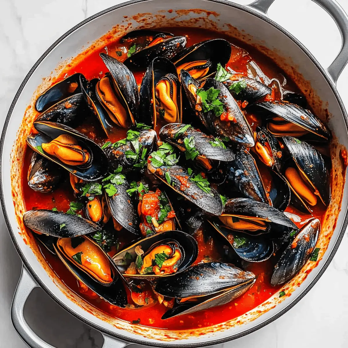 As the vibrant aroma of sautéed shallots and red chilies fills my kitchen, I can’t help but feel transported to the sun-drenched coasts of Spain. This is where my love for Chilli Mussels began, and it still excites me to whip up this exquisite dish. In less than 30 minutes, you can serve these spicy tomato Chilli Mussels as a show-stopping appetizer that will impress your guests without straining your wallet. Not only is this recipe quick and easy, but it’s also a perfect crowd-pleaser that encourages everyone to savor the moment with a crusty piece of bread. Ready to dive into a culinary adventure? Let’s get cooking! Why Are These Chilli Mussels Amazing? Speedy Preparation: In just 30 minutes, you can have a stunning dish that feels gourmet yet is incredibly easy to make. Flavor Explosion: The combination of spices and fresh ingredients creates a dish that’s bursting with flavor, perfect for seafood lovers. Versatile Ingredients: Use flexible substitutions based on what you have on hand; switch mussels for shrimp, or adjust the heat to suit your taste. Impressive Presentation: This dish not only tastes fantastic but also looks stunning, making it ideal for entertaining or impressing family. Crowd-Pleaser: Serve it with crusty bread to soak up the rich broth, encouraging everyone to share and enjoy the experience together! Chilli Mussels Ingredients For the Broth • Oil – Use any neutral cooking oil to sauté your aromatics for a delicious base. • Diced shallots – Adds a sweet depth of flavor; you can use onions or leeks if preferred. • Fresh red chilies – Provides that essential heat; adjust the amount based on your spice preference. • Minced garlic – Essential for an aromatic kick; fresh garlic gives the best flavor! • Tomato paste – Builds richness in the broth; be sure to choose a high-quality paste for best results. • Sugar – Balances out acidity in the dish; optional, but swap with honey for a different twist. • Dried basil and thyme – These herbs complement your dish beautifully; fresh herbs can be used, just double the amount. • Diced tomatoes – Introduces acidity and freshness; fresh tomatoes are best, but canned work too if short on time. • Unsalted butter – Adds a luxurious richness to the broth; skip it for a lighter version or use olive oil. • Dry white wine – Contributes acidity and enhances flavors; chicken broth can replace it for an alcohol-free option. • Saffron – Optional for a touch of luxury; feel free to omit if it’s not on hand. For the Mussels • Mussels – The star ingredient packed with protein; ensure they are fresh and cleaned before cooking. Step‑by‑Step Instructions for Chilli Mussels Step 1: Prepare the Mussels Soak the fresh mussels in a bowl of salted water for 15 minutes to help purge any grit. While they soak, scrub each mussel’s shell under cold water and remove the beards using your fingers. Rinse them well to ensure they’re clean before moving on to the next step. Step 2: Make the Broth In a large pot over medium heat, add 2 tablespoons of oil and heat until shimmering. Sauté diced shallots and fresh red chilies for about 30 seconds until fragrant and tender. Stir in minced garlic and cook for an additional 15 seconds before adding a tablespoon of tomato paste, a pinch of sugar, dried basil, and thyme. Mix well and let it cook for 1 minute to develop the flavors. Step 3: Simmer the Sauce Now, add diced tomatoes to the pot and turn the heat up until the mixture comes to a boil. Once boiling, reduce the heat to low and let it simmer uncovered for 15 to 20 minutes. You’ll know it’s ready when the broth thickens and the tomatoes lose their shape, creating a rich, aromatic sauce for your Chilli Mussels. Step 4: Cook the Mussels Increase the heat to medium-high, then carefully pour in a cup of dry white wine and 2 tablespoons of unsalted butter, allowing it to melt into the sauce. Add the cleaned mussels to the pot, cover it with a lid, and cook for about 6 minutes. The mussels are done when they’ve opened up fully, showcasing their tender, juicy interiors. Step 5: Serve and Enjoy Once cooked, remove the pot from the heat and gently stir the mussels to coat them in the flavorful broth. Serve right away in bowls, garnished with fresh herbs if desired, and be sure to have crusty bread on the side to soak up that delicious spicy broth. Your Chilli Mussels are now ready for everyone to enjoy! Expert Tips for Chilli Mussels Freshness Matters: Always use fresh mussels; discard any that remain closed after cooking. Their quality directly influences the dish’s taste. Heat Control: Adjust the amount of fresh red chilies based on your spice preference. Start with fewer and taste; you can always add more, but it’s hard to tone down the heat. Simmering Time: Don’t rush the simmering step; allowing the broth to thicken enhances the flavors of your Chilli Mussels. Aim for 15-20 minutes to develop that rich taste. Wine Quality: Using a high-quality dry white wine enhances the depth of flavor in the broth. If using chicken broth, opt for a low-sodium version to keep flavors balanced. Bread Pairing: Serve your Chilli Mussels with crusty bread, which is perfect for soaking up the delightful broth. It enhances the overall dining experience and prevents waste! How to Store and Freeze Chilli Mussels Fridge: Store leftover Chilli Mussels in an airtight container in the fridge for up to 5 days. Reheat gently on the stovetop until warmed through. Freezer: For longer storage, freeze cooked Chilli Mussels in a freezer-safe container for up to 3 months. To prevent freezer burn, ensure the container is airtight. Reheating: When ready to enjoy, thaw in the fridge overnight before reheating in a saucepan. Heat gently to an internal temperature of 165°F (73.8°C) for safety. Avoid Storing Raw Mussels: It’s best not to store raw mussels once they are cleaned and cooked. Only store leftovers to maintain qualit