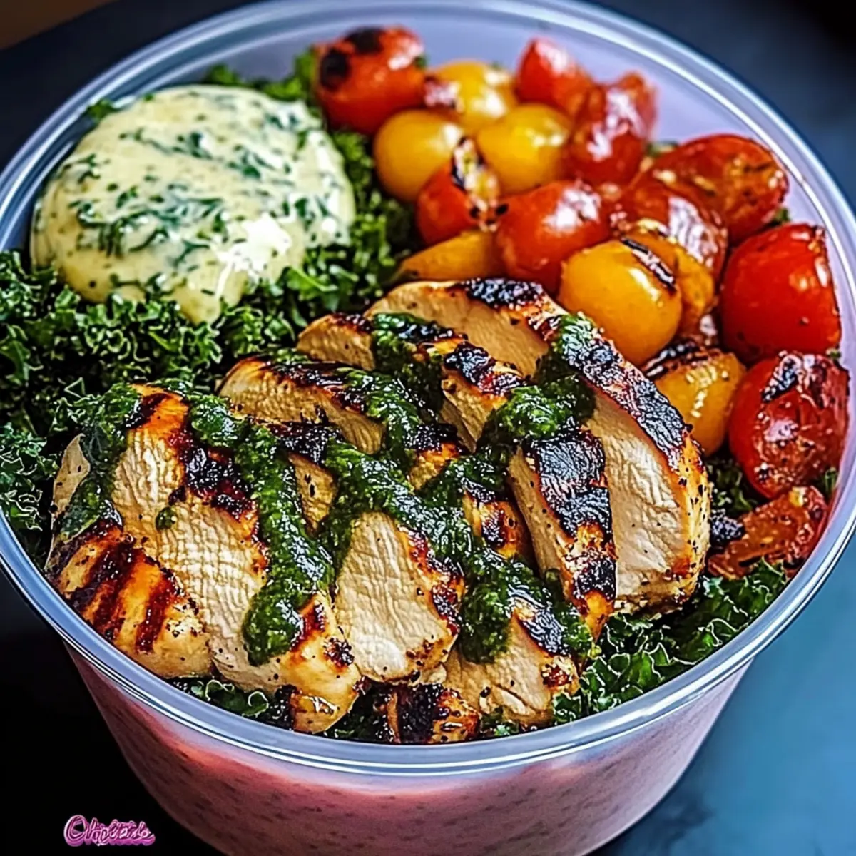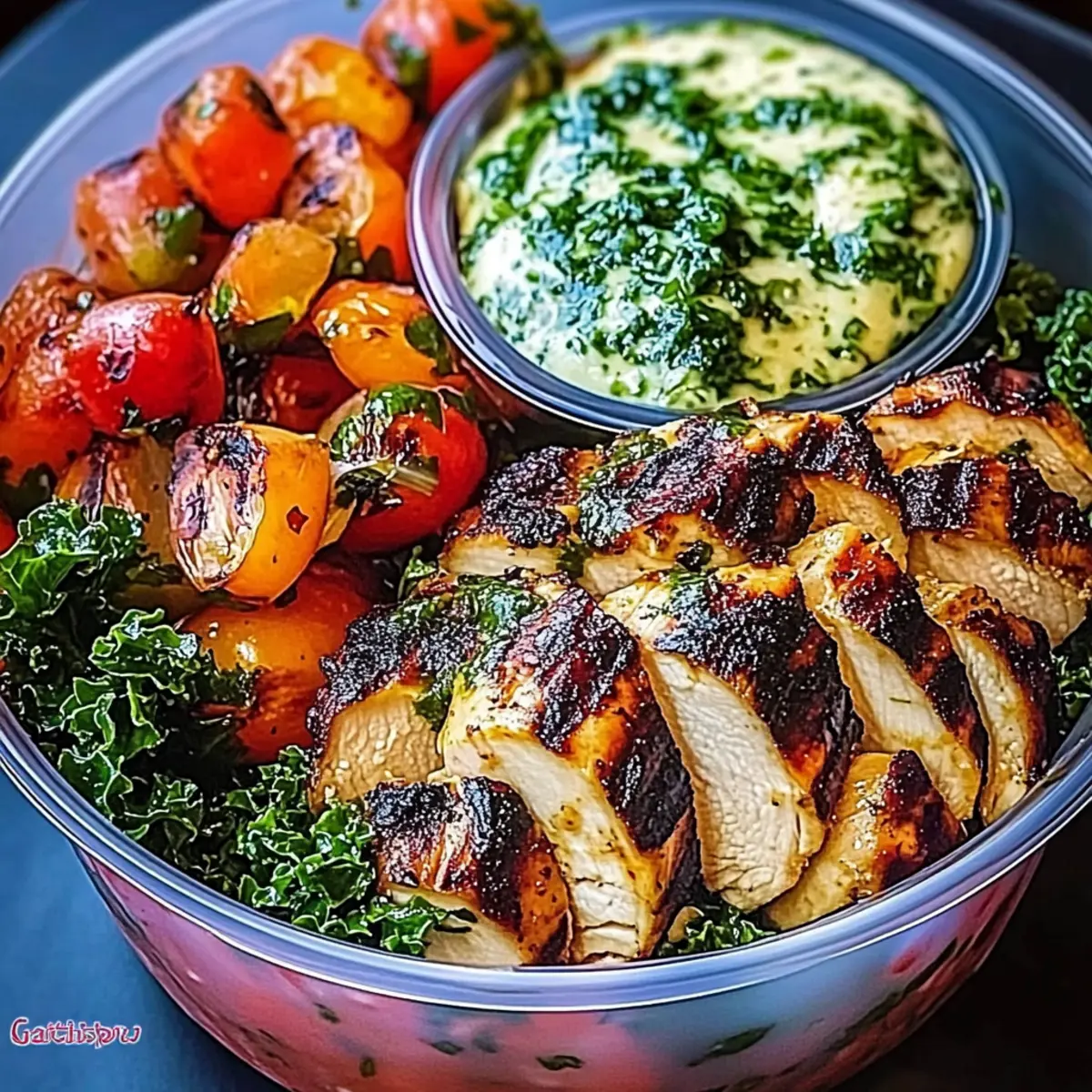 “Whoa, that smells amazing!” I overheard a friend exclaim while I prepped my latest culinary experiment—the Chimichurri Grilled Chicken Bowl with Garlic Sauce. Trust me, the aromatic blend of grilled chicken, fresh herbs, and creamy garlic sauce truly tantalizes the senses. This dish is a feast for both the eyes and palate, combining succulent, spice-rubbed chicken with a vibrant chimichurri and a hearty base of greens, tomatoes, and roasted veggies. Not only is it a high-protein meal that fits perfectly into a busy week of meal prep, but it also offers a customizable twist that can adapt to whatever ingredients you have on hand. Whether you’re in need of a quick dinner fix or aiming to impress at your next gathering, this bowl delivers flavor and satisfaction in every bite. Ready to dive into this delicious adventure and discover a new favorite in your cooking repertoire? Why is this chicken bowl a must-try? Flavor Explosion: The Chimichurri and creamy garlic sauce create a delightful harmony, transforming everyday chicken into a gourmet experience. Customizable: Easily swap ingredients based on what you have on hand, whether it’s protein or fresh veggies—get creative! Meal Prep-Friendly: Perfect for a week of healthy lunches, as you can store components separately and assemble them fresh each day. Visual Appeal: A vibrant bowl packed with colors and textures, making it an impressive and Instagram-worthy dish. Nutrient-Dense: It’s a high-protein meal that fills you up without weighing you down, ensuring you stay energized all day. Explore other delicious chicken options, like Garlic Butter Chicken or Grilled BBQ Chicken, to keep your meals exciting! Chimichurri Grilled Chicken Bowl Ingredients For the Chicken • Chicken Breasts or Thighs – Opt for thighs for extra moisture and flavor during grilling. For the Chimichurri Sauce • Parsley – This herb brings vibrant color and fresh flavor to your bowl. • Garlic – Adds a zesty punch; adjust the quantity based on your love for garlic! • Olive Oil – Essential for balancing the tartness of vinegar in the chimichurri. • Red Wine Vinegar – Helps create a tangy profile; feel free to substitute with apple cider vinegar. • Oregano – Dried or fresh, it infuses the sauce with herbal notes. • Salt & Pepper – Enhances all the flavors; season to your liking. For the Garlic Sauce • Mayonnaise or Greek Yogurt – Provides creaminess; use Greek yogurt for a tangy twist. • Lemon Juice – Adds brightness and balances the richness of the sauce. • Minced Garlic – Extra garlic love for the sauce; you can adjust based on preference. • Olive Oil – Blends everything smoothly; avocado oil can be used as a substitute. For the Vegetables • Fresh Tomatoes – Choose seasonal varieties for the best flavor; replace with cucumbers if preferred. • Roasted Vegetables – Add variety and depth; garlic and red onion work wonderfully for roasting. • Chopped Kale or Leafy Greens – A nutrient-packed base; spinach or Swiss chard can also be used. For the Seasoning • Smoked Paprika – Adds a lovely smoky flavor to the chicken; it can be substituted with sweet paprika. • Cumin – Earthy spice that complements the chicken well. • Black Pepper & Salt – Essential for seasoning; adjust to taste. For Assembling • Olive Oil – Use for sautéing greens and drizzling over veggies; avocado oil is a great alternative. • Lemon Juice or Vinegar – A bright finish for the sautéed greens; swap with lime juice for a twist. Explore the delightful Chimichurri Grilled Chicken Bowl with Garlic Sauce and get creative with substitutions to make it your own! Step‑by‑Step Instructions for Chimichurri Grilled Chicken Bowl with Garlic Sauce Step 1: Marinate the Chicken Begin by seasoning your chicken breasts or thighs with olive oil, smoked paprika, cumin, salt, and black pepper. Ensure each piece is well-coated. Cover the chicken and let it marinate for at least 30 minutes in the refrigerator to enhance the flavors. This step is crucial for achieving juicy, flavorful chicken in your Chimichurri Grilled Chicken Bowl. Step 2: Prepare the Chimichurri While the chicken marinates, chop fresh parsley and garlic. In a bowl, combine the chopped ingredients with olive oil, red wine vinegar, oregano, salt, and pepper. Mix well until combined. Allow the chimichurri to sit for at least 10 minutes to develop its vibrant flavors. This tangy sauce will beautifully elevate your dish. Step 3: Whisk Together the Garlic Sauce In a separate bowl, mix together mayonnaise (or Greek yogurt), minced garlic, lemon juice, and a drizzle of olive oil. Stir until the mixture is smooth and creamy. This garlic sauce will provide a rich and flavorful contrast to the bright chimichurri in your chicken bowl. Set aside to allow the flavors to meld together. Step 4: Grill the Chicken Preheat your grill or a grill pan to high heat. Once hot, add the marinated chicken and cook for 5–7 minutes on each side, or until the chicken is fully cooked and has a nice char. Aim for an internal temperature of 165°F (74°C) for safety. Once done, let the chicken rest for a few minutes before slicing it into strips for your bowl. Step 5: Sauté the Greens In a skillet, heat a bit of olive oil over medium heat. Add chopped kale or your choice of leafy greens. Sauté for about 2-3 minutes until the greens are wilted and bright in color. Drizzle with a little lemon juice for added brightness. Sautéing these greens not only enhances their color but also makes them tender and flavorful. Step 6: Roast the Vegetables Preheat your oven to 400°F (200°C). Place garlic cloves and red onion slices on a baking sheet, drizzle with olive oil, and season lightly with salt and pepper. Roast in the oven for about 20 minutes, or until the garlic is golden and the onion is caramelized. These roasted veggies will add a delicious depth of flavor to your Chimichurri Grilled Chicken Bowl. Ste