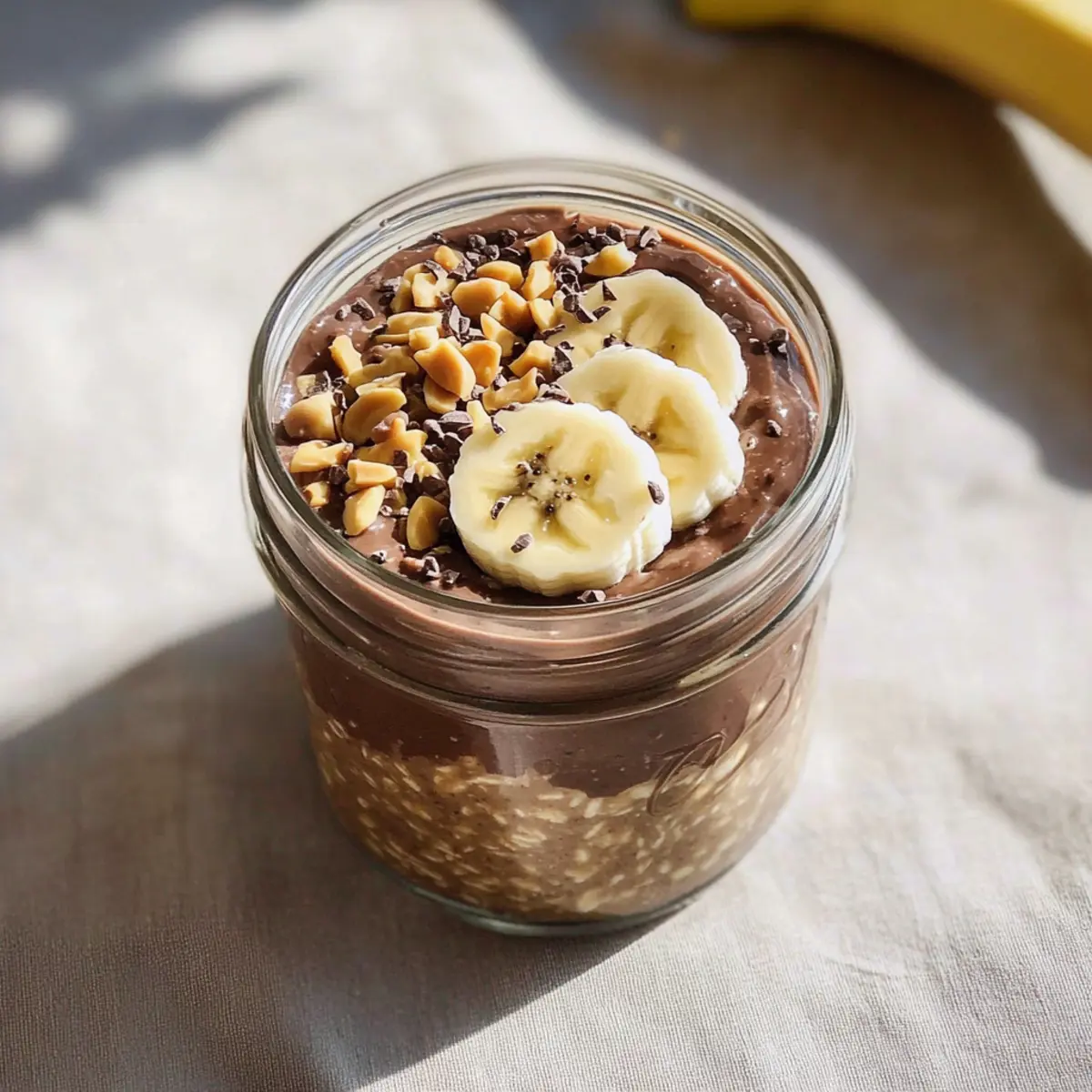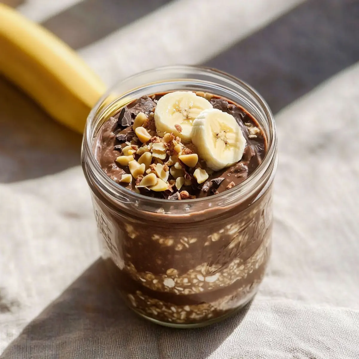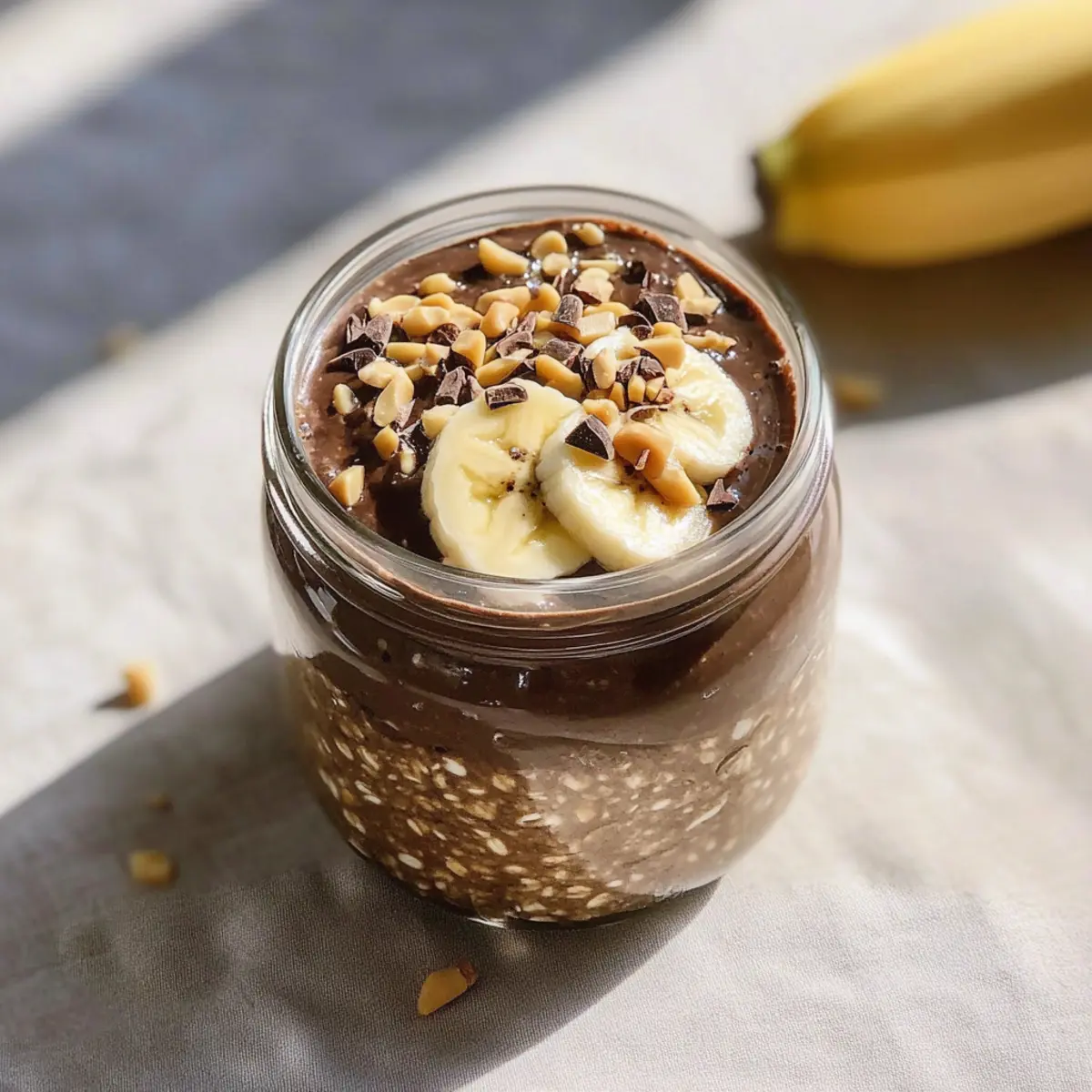 There’s something magical about waking up to a delicious breakfast that feels like a treat! With my Chocolate Peanut Butter Overnight Oats, I’ve turned my morning routine into a moment of indulgence. This recipe combines creamy peanut butter and rich cocoa, delighting your taste buds while keeping your mornings hassle-free. Designed for busy schedules, it takes just 10 minutes to whip up the night before, allowing you to savor a nutritious meal when you rise. With its make-ahead convenience and customizable ingredients, these oats are perfect for anyone looking to nourish their day without sacrificing flavor. Ready to elevate your breakfast game? Let’s dive into how to create this breakfast delight! Why opt for overnight oats? Convenience at Its Core: These Chocolate Peanut Butter Overnight Oats are ready when you are, requiring just 10 minutes of prep the night before. Deliciously Decadent Flavor: Indulge in a delightful mix of rich cocoa and creamy peanut butter that feels like dessert for breakfast. Customizable Goodness: Tailor the recipe to fit your dietary needs—whether you prefer dairy-free options or want to pack in protein with yogurt or protein powder. Meal Prep Friendly: With a shelf-life of 3-4 days in the fridge, these oats make early mornings so much easier! Stress-Free Mornings: Imagine waking up to a smooth, creamy breakfast that’s both filling and nutritious, leaving you energized for the day ahead. For more tasty breakfast ideas, check out my Chocolate Chip Cookies and Chocolate Eclairs Discover recipes! Chocolate Peanut Butter Overnight Oats Ingredients Prepare for your delicious morning treat! For the Oats Rolled Oats – Essential for that hearty, chewy texture; opt for old-fashioned rolled oats for best results. Milk of Choice – Adds creaminess; feel free to use almond, oat, soy, or regular dairy milk based on your preference. Greek Yogurt (optional) – Adds a rich creaminess and boosts protein; skip for a dairy-free delight. Peanut Butter – The star of the show; creamy natural peanut butter gives the best flavor, while crunchy adds extra texture. Unsweetened Cocoa Powder – The secret to that rich chocolate flavor; essential for achieving dessert vibes in your oats. Chia Seeds (optional) – Great for thickening and packed with fiber and omega-3s; include for an extra nutritional boost. Maple Syrup or Honey – Sweetens the mix naturally; adjust to taste for a lower-sugar option. Vanilla Extract – A small splash enhances the overall flavor, rounding out the chocolate and peanut butter beautifully. Pinch of Salt – A tiny amount elevates the taste; don’t skip it, as it brightens the entire dish. For Toppings (optional) Sliced Banana – Freshness and added sweetness; perfect for that extra burst of flavor. Chopped Peanuts – Crunchy goodness; they add an enjoyable texture and more peanut flavor. Mini Chocolate Chips – For a delightful surprise; sprinkle on top for extra chocolaty indulgence. Cacao Nibs – A sophisticated topping choice; they’re a chocolate lover’s dream with an extra crunch. Coconut Flakes – Adds a tropical twist; great for those who enjoy a hint of coconut in their breakfast. With these Chocolate Peanut Butter Overnight Oats, each bite is a delicious step toward a more nourishing morning! Step‑by‑Step Instructions for Chocolate Peanut Butter Overnight Oats Step 1: Select Container Begin by choosing a suitable container for your Chocolate Peanut Butter Overnight Oats, such as a mason jar or a lidded container with a capacity of 12-16 oz. This size will ensure everything mixes well and remains fresh. Having a tight seal is crucial to keep your oats deliciously creamy and prevent any fridge odors. Step 2: Combine Dry Ingredients In your chosen container, carefully add ½ cup of rolled oats, 1 tablespoon of cocoa powder, and a teaspoon of chia seeds if you’re using them. Sprinkle in a small pinch of salt for enhanced flavor. Use a spoon to gently mix these dry ingredients together, ensuring that the cocoa is evenly distributed among the oats to avoid any clumping later. Step 3: Add Wet Ingredients Now, it’s time to pour in the wet ingredients! Measure and add ½ to ⅔ cup of your choice of milk, followed by ¼ cup of Greek yogurt if you like a creamier texture. Incorporate 1-2 tablespoons of peanut butter, 1-2 teaspoons of maple syrup or honey for sweetness, and a ½ teaspoon of vanilla extract to elevate the overall taste. Step 4: Mix Thoroughly Using a fork or a small whisk, mix all the ingredients together until a smooth, well-combined mixture forms without any dry clumps remaining. Take a moment to check the consistency; it should be a delightful, thick texture. Adjust sweetness or thickness by adding more milk or sweetener to suit your taste preferences. Step 5: Refrigerate Once everything is mixed to perfection, seal the container tightly to lock in the flavors. Place it in the refrigerator and let it chill for at least 4 hours, preferably overnight. This step allows the oats to absorb the liquid and flavors, transforming into a creamy and decadent breakfast that’s ready to be enjoyed when you wake up. Step 6: Serve In the morning, give your Chocolate Peanut Butter Overnight Oats a good stir to incorporate any liquid that may have settled. If you prefer a slightly thinner consistency, add a splash of milk. Finally, top with your favorite garnishes, such as sliced bananas, chopped peanuts, or mini chocolate chips, for an exquisite finishing touch. Enjoy your delicious creation! What to Serve with Chocolate Peanut Butter Overnight Oats Indulge in a complete breakfast experience by pairing your chocolatey creation with delightful sides that elevate your morning! Fresh Fruit Salad: A vibrant mix of seasonal fruits adds a refreshing contrast and natural sweetness to your rich oats, making each bite a balanced indulgence. Nutty Granola: Crunchy granola sprinkled on top creates a delicious texture dynamic to you