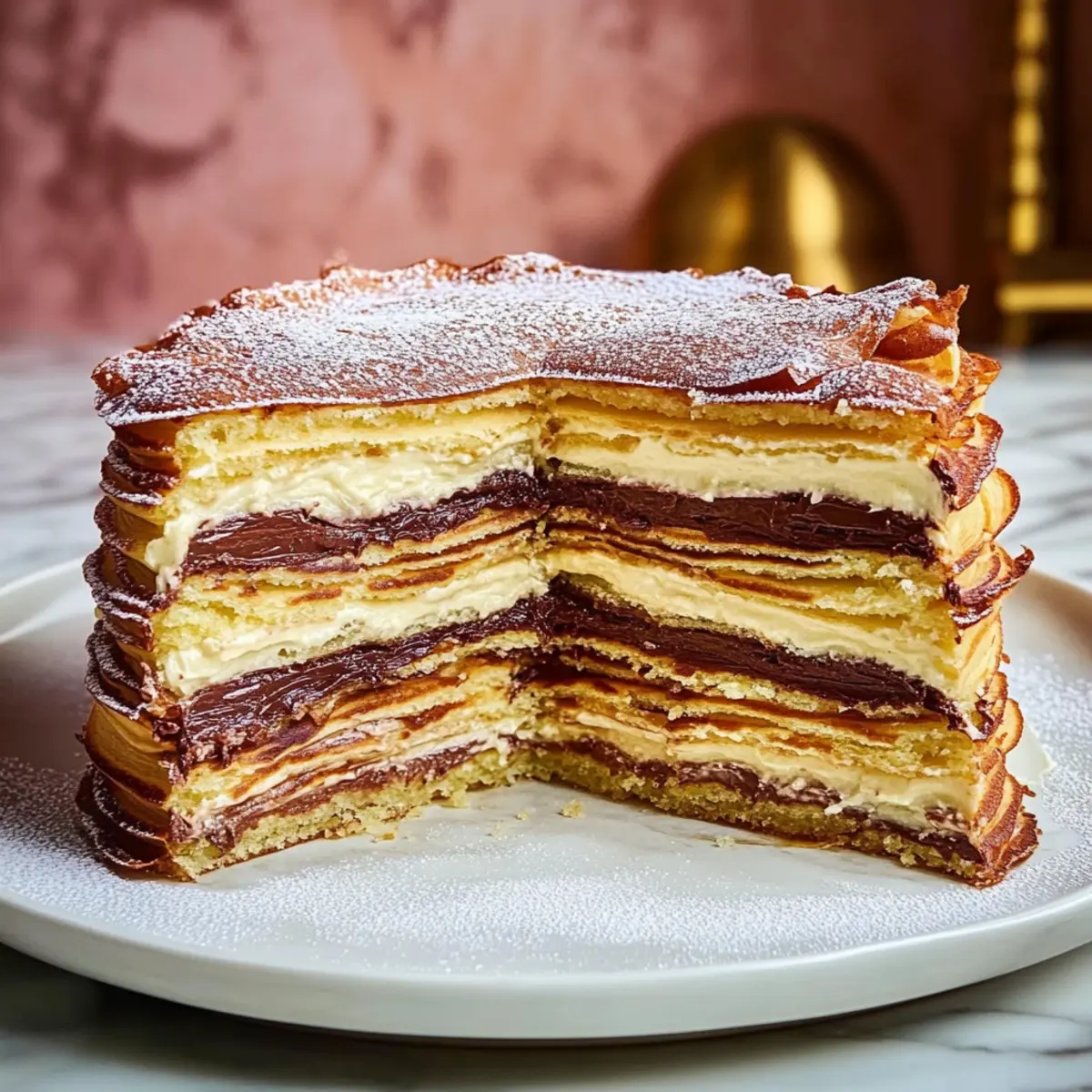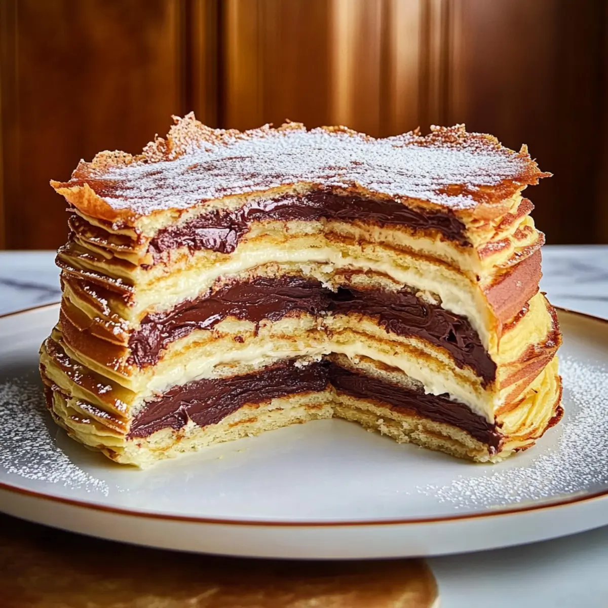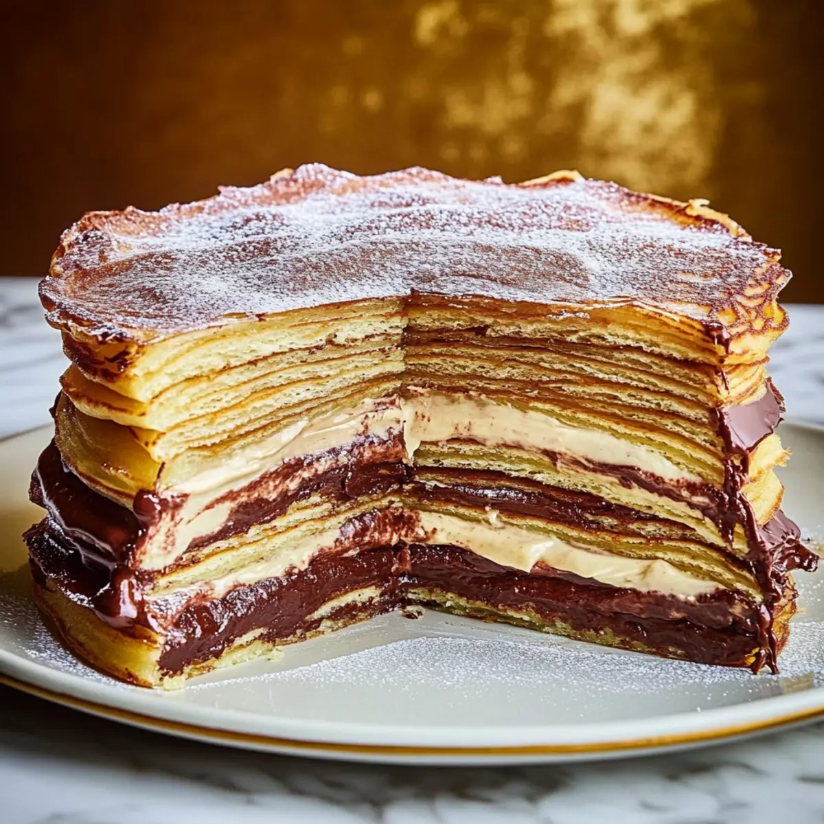 As the afternoon sun streamed through my kitchen window, I found myself in a mini crisis—a craving for something sweet yet comforting. That’s when I decided to whip up my Chocolate & Peanut Butter Pancake Cake, a delightfully indulgent dessert that’s perfect for breakfast or a midday treat. It’s a visually stunning creation that’s also incredibly easy to put together, making it an instant crowd-pleaser! You’ll love how the layers of smooth chocolate spread and creamy peanut butter meld beautifully between thin, golden pancakes, totally elevating your pancake game. Plus, you can customize it with almond or cashew butter for a personal twist. Are you ready to impress your family and friends with this ultimate pancake cake magic? Let’s dive in! Why is this pancake cake so special? Indulgence Awaits: This Chocolate & Peanut Butter Pancake Cake combines two beloved flavors into a stunning dessert. Each layer offers a delightful balance of creamy peanut butter and rich chocolate, making it perfect for any occasion. Customizable Delight: You can easily swap peanut butter for almond or cashew butter, creating a unique spin to suit your taste. Try layering in fresh fruits for added sweetness, or indulge with a drizzle of chocolate sauce for an elegant presentation. Quick & Simple: With straightforward instructions, even novice bakers can confidently whip up this cake. Plus, it’s a crowd-pleaser—everyone will adore the luscious taste and inviting appearance! Perfect for Anytime: Whether it’s breakfast, dessert, or a festive gathering, this recipe serves as a versatile option. Need inspiration? Check out our Stuffed Cheesecake Pancakes for another sweet twist! Chocolate & Peanut Butter Pancake Cake Ingredients For the Pancake Batter • All-purpose flour – Provides a light texture to the pancakes for easy stacking. • Baking powder – Helps the pancakes rise, ensuring they are fluffy and tender. • Milk – Use any milk of your choice; it hydrates the batter and affects the texture. • Eggs – Add structure and moisture, making the pancakes rich and sturdy. • Sugar – A touch of sweetness balances the flavors beautifully. • Salt – Enhances the sweetness of the cake for a more rounded flavor. For the Filling • Peanut butter – Adds a creamy, nutty flavor; almond or cashew butter can be used for a change. • Chocolate spread – Delivers that rich chocolate flavor; feel free to switch it with hazelnut spread for fun! For Garnishing (optional) • Chantilly cream – Offers a light and airy finish that pairs wonderfully with the pancake layers. • Fresh berries – Add a burst of flavor and color for an eye-catching presentation. • Chocolate sauce – Drizzle for an extra treat that enhances the chocolate flavor of your Chocolate & Peanut Butter Pancake Cake. Step‑by‑Step Instructions for Chocolate & Peanut Butter Pancake Cake Step 1: Prepare Pancake Batter In a mixing bowl, combine all-purpose flour, baking powder, milk, eggs, sugar, and a pinch of salt. Whisk until the mixture is smooth and lump-free, achieving a consistency similar to heavy cream. Let the batter rest for about 10 minutes while you heat your skillet, allowing the flour to hydrate for tender pancakes. Step 2: Cook Pancakes Preheat a non-stick skillet over medium heat, lightly greasing it with butter or oil. Pour about a quarter cup of batter into the skillet, swirling to form a thin layer. Cook for 2–3 minutes until the edges start to lift and bubbles form on the surface. Flip it over and cook for another 1–2 minutes, until golden brown. Transfer to a plate and repeat with the remaining batter, stacking the pancakes as you go. Step 3: Layer Ingredients Once all pancakes are cooked, place the first pancake on a serving platter. Spread a generous layer of peanut butter, followed by a layer of chocolate spread. Continue stacking pancakes, alternating between the spreads, until all pancakes are layered. Aim for a visual height and balance that looks inviting for your Chocolate & Peanut Butter Pancake Cake. Step 4: Serve Optionally, top your layered cake with a dollop of chantilly cream and a sprinkle of fresh berries for a colorful presentation. A drizzle of extra chocolate sauce can add a lovely finishing touch. Cut the cake into wedges or slices to serve, allowing everyone to experience the delightful blend of flavors in each bite. Step 5: Storage If you have leftovers, store the Chocolate & Peanut Butter Pancake Cake covered at room temperature for 1 day or in the refrigerator for up to 2 days. Gently reheat individual slices in the microwave for a soft texture or serve cold for a refreshing treat. Chocolate & Peanut Butter Pancake Cake Variations Feel free to make this indulgent treat your own with these exciting twists and substitutions! Nut Butter Swap: Use almond or cashew butter for a different nutty flavor that packs a delightful punch. A simple change can offer a new taste experience. Fruit Layering: Add fresh fruit preserves or slices, such as bananas or strawberries, between the layers for a burst of freshness. This will not only enhance flavor but also add a lovely splash of color. Flavorful Spreads: Experiment with flavored chocolate spreads like hazelnut or caramel for an exciting variation. Each choice can elicit a different vibe that elevates the overall taste. Add Some Spice: Sprinkle in a touch of cinnamon or vanilla extract to the pancake batter for added warmth and aroma. It’s a little twist that’s sure to delight your senses! Decadent Toppings: Top with chantilly cream, fresh berries, and chocolate sauce for an elegant presentation. Each layer becomes a feast for the eyes, complementing the rich flavors. Extra Crunch: For a textural twist, sprinkle chopped nuts like walnuts or pecans between layers. It adds a lovely crunch that creates an engaging mouthfeel. Dairy-Free Delight: Substitute regular milk with almond or coconut milk for a dairy-free version that suits