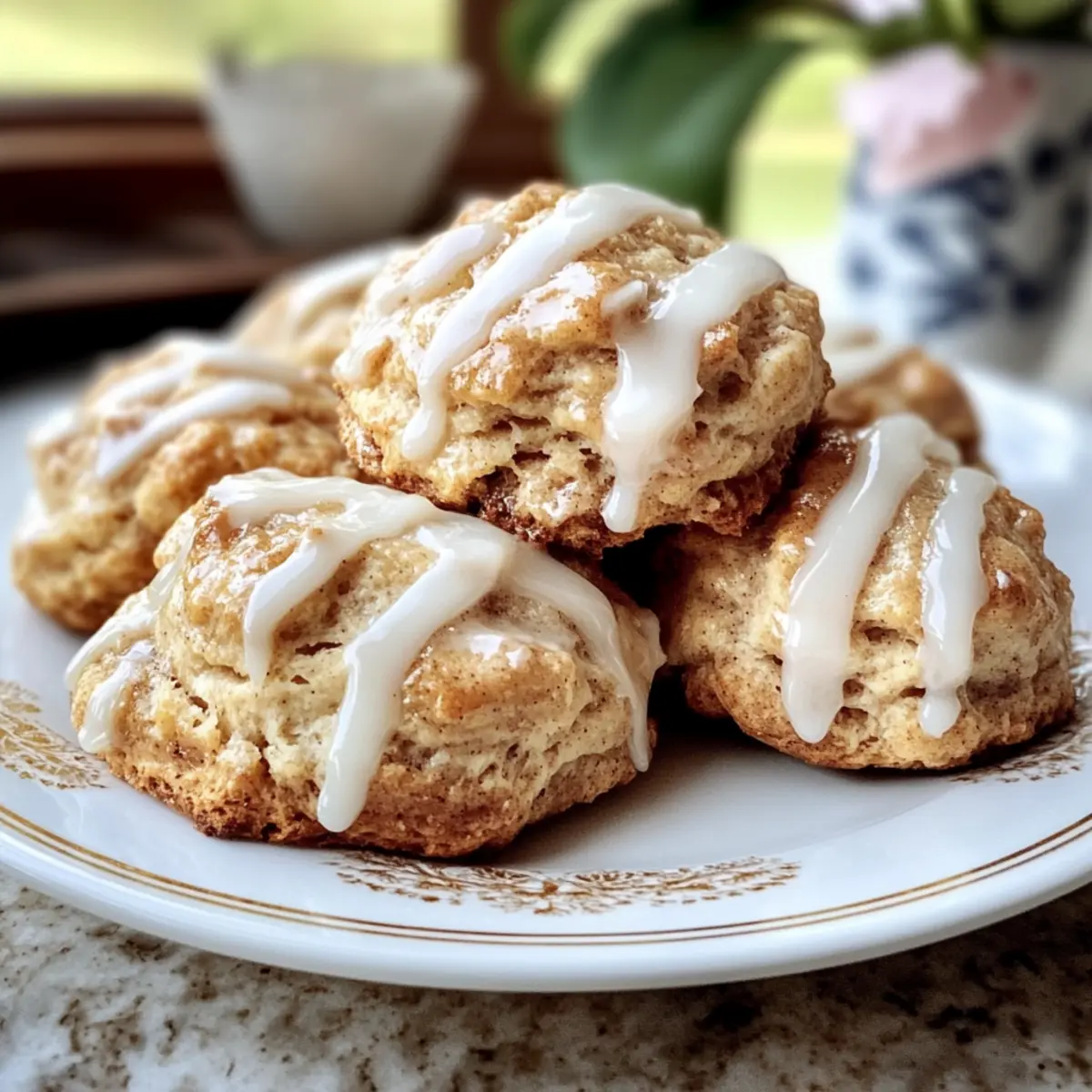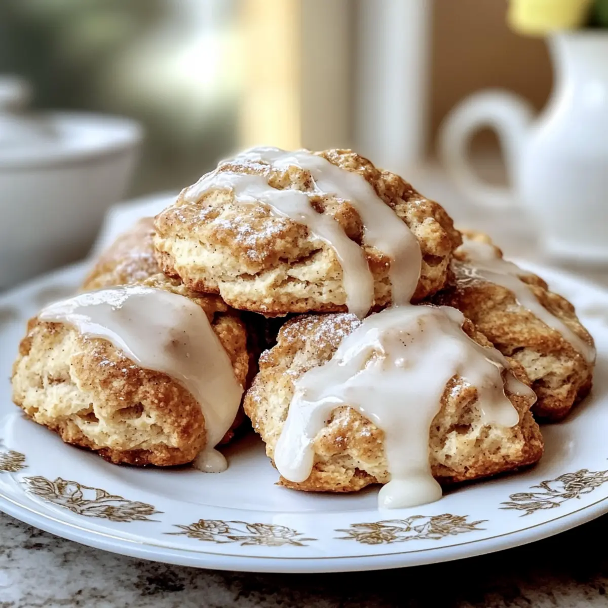 There’s something magical about the comforting aroma of freshly baked goods wafting through the kitchen, a gentle hug from the universe. Today, I’m excited to share my go-to recipe for Cinnamon Bun Scones, where the delightful flavors of classic cinnamon rolls meet the ease of scone-making. In just 35 minutes, you can whip up these soft, bakery-style treats, making them perfect for both leisurely weekend brunches and quick weekday breakfasts. Not only are they a crowd-pleaser, but their versatility allows for a sprinkle of creativity with tasty variations. Whether you want to stick with the classic or add a fun twist, I promise these scones will become a cherished go-to in your baking repertoire. What will you pair them with for your perfect morning indulgence? Why Are These Scones So Irresistible? Bakery-Style at Home: Experience the joy of creating soft, fluffy scones that rival your favorite bakery treats, all from your own kitchen. Quick Preparation: Ready in just 35 minutes, these scones are perfect for busy mornings when you still want a homemade touch. Versatile Variations: Customize with toppings like a rich cream cheese glaze or add nuts for an extra crunch—there’s no limit to your creativity! Crowd-Pleasing Flavor: Warm cinnamon and sweet glaze combine for a deliciously comforting experience, perfect for serving at brunch or sharing with friends. Perfectly Textured: Enjoy a delightful contrast between the soft inside and lightly crisp edges, making each bite a satisfying experience. Grab your apron, and let’s bake some Cinnamon Bun Scones together! Cinnamon Bun Scones Ingredients For the Scone Dough All-Purpose Flour – Provides structure; essential for scone texture, no substitutions recommended. Granulated Sugar – Adds sweetness; can substitute with brown sugar for a richer flavor. Baking Powder – Leavening agent for a soft texture; ensure freshness for the best rise. Salt – Enhances flavor; crucial in balancing sweetness. Ground Cinnamon – Offers that classic cinnamon flavor; adjust based on preference. Unsalted Butter (cold) – Creates flaky layers; keep cold and avoid melted butter for the best results. Milk – Adds moisture and helps bind the dough; can substitute with heavy cream for a richer flavor. Vanilla Extract – Enhances sweetness and aroma; optional but recommended for depth of flavor. For the Glaze Powdered Sugar – Sweetens and gives texture; use fresh for optimal results. Milk – Adjusts consistency for glazing; use as needed to achieve desired glaze thickness. Step‑by‑Step Instructions for Cinnamon Bun Scones Step 1: Preheat the Oven Begin by preheating your oven to 400°F (200°C). While the oven is heating, line a baking sheet with parchment paper to prevent sticking and ensure easy cleanup. This step sets the stage for baking your delicious Cinnamon Bun Scones to golden perfection, giving you an enticing aroma to look forward to. Step 2: Mix Dry Ingredients In a large mixing bowl, whisk together all-purpose flour, granulated sugar, baking powder, salt, and ground cinnamon. Make sure the ingredients are well combined, as this will help your scones rise perfectly and achieve that sought-after bakery-style texture. Look for a fluffy mixture before moving on to the next step! Step 3: Cut in Butter Add the cold unsalted butter, cut into smaller pieces, into the dry mixture. Use a pastry cutter or your fingers to blend it in until the mixture resembles coarse crumbs with pea-sized butter chunks. This process is crucial for creating flaky layers in your Cinnamon Bun Scones. Step 4: Add Wet Ingredients In a separate bowl, mix the milk and vanilla extract until well combined. Pour this mixture into the dry ingredients, gently stirring until just combined. Be careful not to overmix; you want your dough to be light and tender rather than dense. It’s okay if a little flour remains visible! Step 5: Shape the Dough Dust a clean surface with a sprinkle of flour and turn the dough out onto it. Lightly knead the dough a few times just to bring it together, then shape it into a 1-inch thick circle. This step is key to forming the right texture and allows your scones to rise nicely during baking. Step 6: Cut and Arrange Using a sharp knife or a bench scraper, cut the circle of dough into 8 equal wedges, similar to cutting a pizza. Carefully transfer the scones onto the prepared baking sheet, ensuring they are spaced apart to allow for spreading while baking. This arrangement helps them rise evenly for a beautiful finish. Step 7: Bake Place the scones in the preheated oven and bake for 15-20 minutes. You’ll know they’re ready when they turn golden brown and their tops feel set, with soft centers that yield slightly when pressed. Enjoy the irresistible aroma that fills your kitchen as they bake! Step 8: Cool and Glaze Once baked, remove the Cinnamon Bun Scones from the oven and let them cool slightly on a wire rack. While they cool, prepare the glaze by mixing powdered sugar and milk until smooth. Drizzle this sweet glaze over the warm scones to enhance their delightful flavor and finish, creating a picture-perfect brunch treat! Cinnamon Bun Scones Variations & Substitutions Feel free to explore these delightful twists on your Cinnamon Bun Scones to suit your taste and cravings! Dairy-Free: Substitute milk with almond milk or oat milk and use vegan butter to accommodate dietary preferences. Gluten-Free: Opt for a gluten-free all-purpose flour blend for a scone that everyone can enjoy without sacrificing flavor. Spiced Up: Add a pinch of cloves or nutmeg to the dough for an exciting flavor profile, enhancing the warmth of the cinnamon. Fruity Surprise: Incorporate dried cranberries or raisins into the dough for a chewy texture and a burst of fruity goodness in every bite. Cream Cheese Glaze: Swap the simple glaze for a luscious cream cheese glaze, blending cream cheese with powdered sugar and vanilla for added decadence. This dreamy glaze pairs