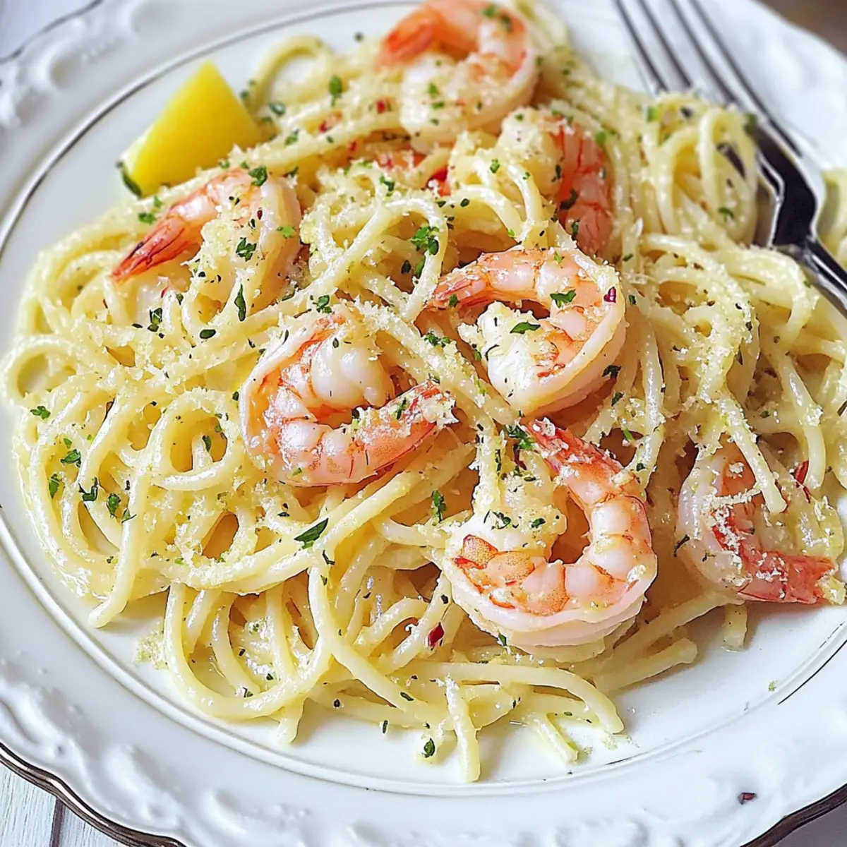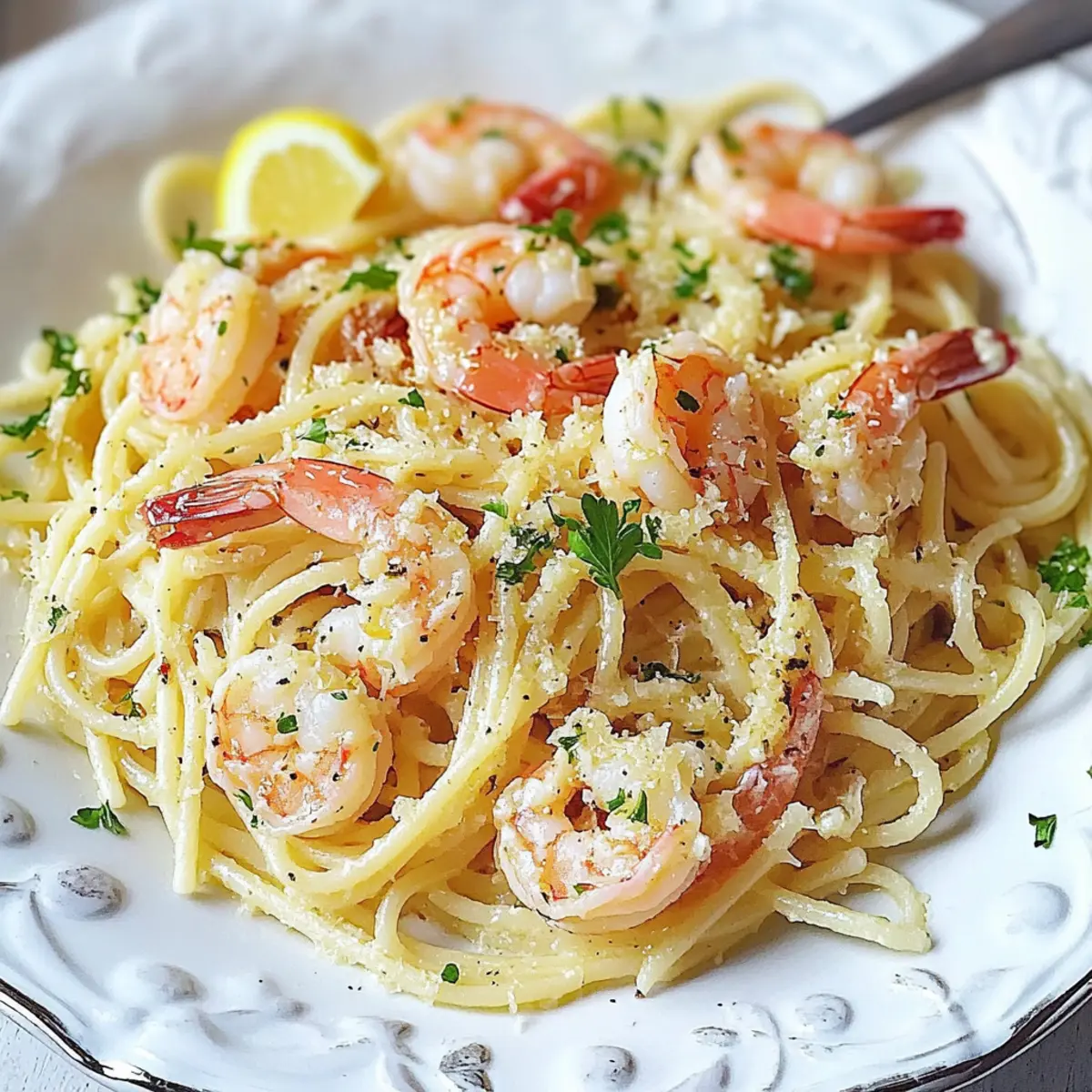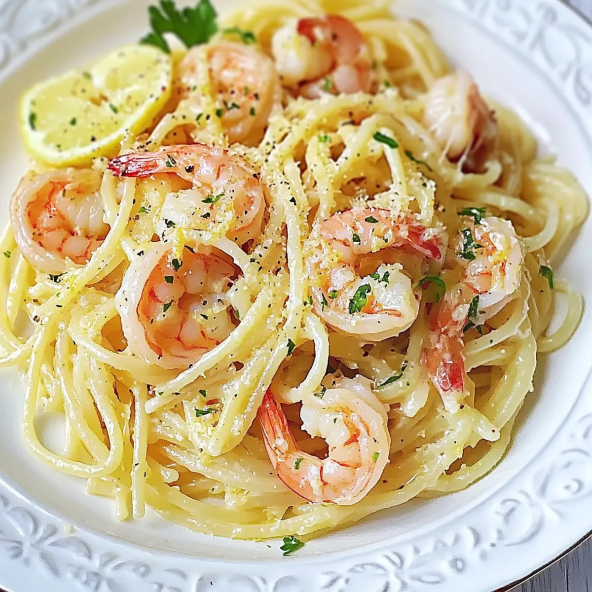 A faint aroma of garlic wafts through the kitchen, transporting me to a sunny Italian trattoria. With this Classic Shrimp Scampi Pasta, you can recreate that magic right at home in just 20 minutes. This isn’t just any pasta dish; it’s a savory affair featuring plump shrimp delicately coated in a creamy, buttery sauce that hugs every strand of linguine. The best part? This quick prep dinner means you can enjoy gourmet flavor without the wait, making it perfect for busy weeknights or a last-minute gathering with friends. Plus, with easy ingredient swaps like fresh versus frozen shrimp or chicken stock instead of wine, you can customize it to fit your pantry. Curious how to whip up this restaurant-style delight? Let’s dive into the recipe! Why is Shrimp Scampi a Must-Try? Quick Prep: Get this restaurant-quality dish on your table in just 20 minutes, perfect for a busy weeknight! Flavor Explosion: Enjoy the rich, buttery garlic sauce that beautifully envelops the succulent shrimp and pasta, tantalizing every taste bud. Versatile Ingredients: Whether using fresh or frozen shrimp or your choice of pasta like linguine or angel hair, this recipe adapts to your pantry staples. Elegant Presentation: Impress your guests with a dish that looks and tastes gourmet, yet requires minimal effort—ideal for unexpected gatherings or romantic dinners. For a delightful balance, pair with garlic bread or a fresh salad alongside this dish, and consider trying other quick meals like Taco Pasta Bake or Marry Me Chicken Pasta for your next feasting occasion! Classic Shrimp Scampi Pasta Ingredients For the Pasta • Pasta (Linguine or Angel Hair) – The perfect base that absorbs all the rich flavors of the sauce; feel free to use any pasta type you have on hand. For the Shrimp • Shrimp – Fresh or frozen, cleaned, and deveined shrimp provide the juicy protein; medium or large shrimp can enhance juiciness. For the Sauce • Olive Oil – Essential for sautéing garlic to start the sauce; consider using a blend of butter and olive oil for a rich flavor. • Butter – Contributes to a creamy, luscious sauce; add it at lower heat to prevent separation. • Garlic – Chopped garlic enhances the dish’s flavor; watch it closely to avoid burning, which can lead to bitterness. • Lemon Juice – Adds a bright acidity that balances the richness; always use fresh lemon juice for the best flavor. • Italian Seasoning Mix – A bouquet of classic Italian flavors that elevates the dish; you can also make a homemade blend for a personal touch. • Chicken Stock – Deepens the sauce’s flavor; vegetable stock or white wine can be great substitutions for a different twist. For the Finishing Touches • Parsley – Adds freshness and a pop of color; always opt for fresh parsley if possible for maximum flavor. • Salt and Black Pepper – Essential for enhancing the overall taste; season to your preference to make this Classic Shrimp Scampi Pasta your own. Get ready to indulge in a restaurant-style delight right in your kitchen! Step‑by‑Step Instructions for Classic Shrimp Scampi Pasta Step 1: Cook the Pasta Begin by bringing a large pot of salted water to a boil over high heat. Add your choice of linguine or angel hair pasta, and cook according to the package instructions until al dente, usually about 8-10 minutes. Once cooked, drain the pasta and toss it gently with a drizzle of olive oil to prevent sticking, setting it aside while you prepare the sauce. Step 2: Sauté the Garlic In a large skillet, heat 2 tablespoons of olive oil over medium heat. Once hot, add 4-5 minced garlic cloves to the pan and sauté them for about 30 seconds until fragrant and lightly golden. Be careful not to burn the garlic, as this can create a bitter taste in your Classic Shrimp Scampi Pasta. Step 3: Cook the Shrimp Add 1 pound of cleaned, deveined shrimp to the pan, stirring gently to combine with the garlic. Season the shrimp with salt, black pepper, and Italian seasoning, cooking them for 2-3 minutes until they turn pink and opaque. Ensure you do not overcook them; they should be tender, highlighting the fresh shrimp flavor in your dish. Step 4: Add Chicken Stock Pour in ½ cup of chicken stock, allowing it to simmer gently for 1-2 minutes. This step will deepen the flavors and help create a rich sauce. Stir occasionally, scraping the bottom of the skillet to lift any flavorful bits from the shrimp and garlic, enhancing the overall taste of your Classic Shrimp Scampi Pasta. Step 5: Finish the Sauce Reduce the heat to low and add 3 tablespoons of butter to the pan, stirring until it melts completely into the sauce. Next, add the cooked pasta, the juice of half a lemon, and a handful of fresh parsley, stirring everything together for 1-2 minutes until the pasta is well-coated and heated through. Step 6: Serve the Dish Taste your Classic Shrimp Scampi Pasta and adjust seasoning with more salt and pepper if needed. Serve the pasta immediately in bowls or on plates, garnished with extra parsley and freshly grated Parmesan if desired. This dish is best enjoyed fresh for maximum flavor and texture. Expert Tips for Classic Shrimp Scampi Pasta Perfectly Cooked Shrimp: Avoid rubbery shrimp by cooking them just until they’re pink and opaque—approximately 2-3 minutes per side is ideal. Balance the Sauce: If your sauce seems too thin, allow it to simmer a bit longer after adding the stock; it will thicken beautifully without losing flavor. Garlic Care: Keep a close watch on the garlic as it sautés; aim for a light golden color to enhance flavor while preventing bitterness in your Classic Shrimp Scampi Pasta. Pasta Timing: Cook the pasta to al dente for the best texture. It will continue to cook slightly once mixed with the sauce, absorbing delightful flavors. Customize Seasoning: Adjust the salt and pepper to your taste, and feel free to add a pinch of red pepper flakes if you like a little heat in your shrimp scampi. Make Ahead Opt