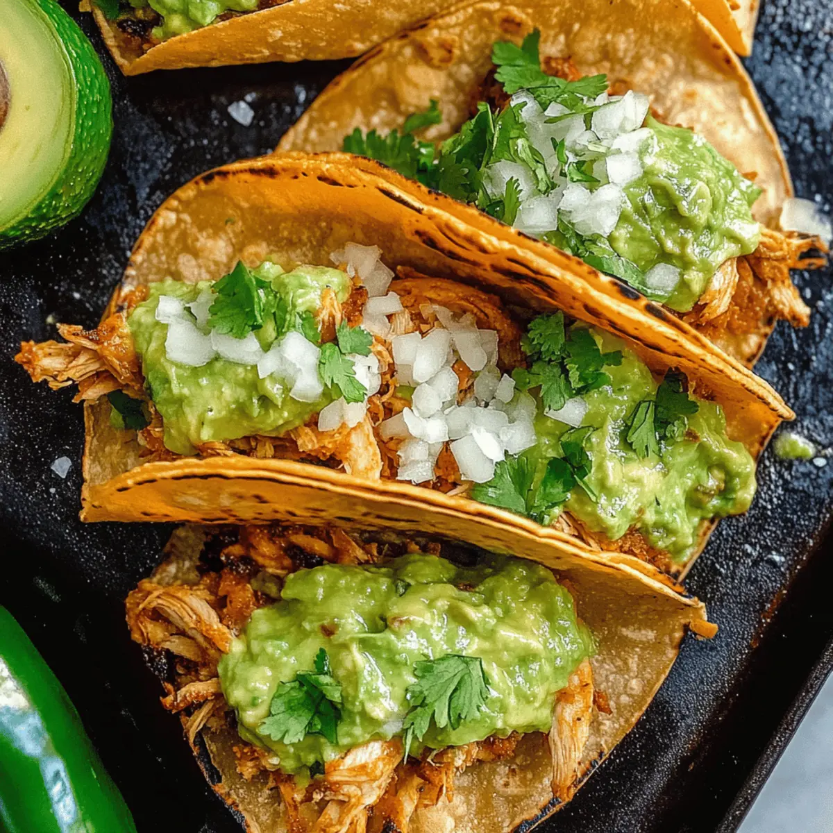 You wouldn’t believe how a simple recipe can turn a busy weeknight into a vibrant fiesta! These Crispy Poblano Chicken Tacos with Avocado-Jalapeño Salsa are my go-to when I crave the irresistible crunch of tacos without the wait. Packed with smoky shredded chicken and fresh veggies, they’re baked to golden perfection and topped with a creamy, zesty salsa that brightens each bite. This dish is not only a quick prep solution for those hectic evenings but also a healthy upgrade to the typical fast-food fare. Imagine the satisfaction of serving your loved ones something that tastes homemade, restaurant-quality, and utterly delicious—without breaking a sweat. Ready to embark on this taco adventure with me? Let’s dive in! Why Are Crispy Tacos So Irresistible? Crispy Texture: Each bite brings a satisfying crunch, elevating your taco experience beyond the ordinary. Flavor Explosion: The smoky poblano chicken, combined with creamy, zesty avocado-jalapeño salsa, ensures a delightful taste adventure. Quick and Easy: Perfect for busy weeknights, these tacos come together in under an hour, making them a go-to for families. Healthy Beauty: Using lean chicken and fresh veggies makes these tacos a nutritious choice without sacrificing flavor. Versatile Enjoyment: Feel free to experiment with different proteins or toppings; these tacos are just as delicious with shredded beef or a veggie medley. Crowd-Pleasing Appeal: Whether serving at a family dinner or a gathering of friends, these tacos always receive rave reviews, just like Buffalo Chicken Tacos and Sweet Savory Chicken. Crispy Poblano Chicken Tacos Ingredients For the Chicken and Filling • Boneless Skinless Chicken Thighs – A tender protein source that absorbs flavors beautifully; you can swap it with chicken breasts for a leaner option. • Olive Oil – Coats the chicken and veggies to keep them moist; feel free to substitute with any neutral oil you prefer. • Chili Powder – Adds a layer of depth and spice; use cayenne for more heat or skip it for a milder taco. • Cumin – Brings warm, earthy notes to the filling; while no direct substitutes are recommended, coriander can offer a different twist. • Smoked Paprika – Elevates the smokiness of the chicken; regular paprika works in a pinch if smoked isn’t available. • Salt and Black Pepper – Essential for balancing all the flavors; adjust to your personal taste preference. • Garlic – Freshly minced for aromatic goodness; garlic powder can be used if you’re short on fresh. • Cilantro – Provides vibrant freshness, but if it’s not your favorite, you can omit it without losing all the flavor. • Poblano Peppers – Contribute mild spice and a smoky allure; substitute with bell peppers if you want to reduce the heat. • White Onion – Adds sweetness and depth; yellow onions are a perfectly fine substitute. • Corn Tortillas – Perfect for holding the filling and adding a delightful crispiness when baked; opt for Mexican or king-sized tortillas for the best results. • Shredded Monterey Jack Cheese – Melts wonderfully and complements the dish charmingly; cheddar or a dairy-free alternative can be used too. For the Avocado-Jalapeño Salsa • Avocado – Forms the creamy base of the salsa; for a vegan alternative, try using mashed silken tofu. • Jalapeño – Infuses heat and flavor; seed it for a milder salsa or swap it out for a bell pepper to cut the spice. • Water – Helps achieve the desired consistency of the salsa; lime or lemon juice can enhance the flavor instead. • White Vinegar – Balances the richness of avocado; lime juice works beautifully if you want a zesty kick. • Salt – Simply enhances all the flavors in the salsa. Dive into this Crispy Poblano Chicken Tacos with Avocado-Jalapeño Salsa creation that your family will love! Step‑by‑Step Instructions for Crispy Poblano Chicken Tacos with Avocado-Jalapeño Salsa Step 1: Make the Avocado-Jalapeño Salsa In a food processor, blend the creamy avocado, fresh jalapeño, water, chopped cilantro, white vinegar, and salt until the mixture is smooth and well-combined. Take a moment to taste and adjust the seasoning if necessary. Once ready, transfer the salsa to a bowl and refrigerate it until you’re ready to serve, allowing the flavors to meld beautifully. Step 2: Prepare the Chicken and Vegetables Preheat your oven to 400°F (200°C) and coat a baking dish with cooking spray for easy cleanup. In a mixing bowl, toss the boneless skinless chicken thighs with olive oil, chili powder, cumin, smoked paprika, minced garlic, salt, black pepper, and chopped poblano peppers and onion. Spread this vibrant mixture evenly in the prepared baking dish for uniform cooking. Step 3: Bake the Chicken Mixture Place the baking dish in your preheated oven, baking for about 20-22 minutes. Keep an eye out for the chicken to reach an internal temperature of 165°F (74°C). Once cooked, the chicken will be tender and the vegetables will be just tender. Remove from the oven and let the chicken rest for a few minutes before shredding it with two forks. Step 4: Prepare the Tortillas Raise your oven temperature to 425°F (220°C). Line a baking sheet with parchment paper and lightly spray the corn tortillas with cooking spray to ensure they crisp nicely. Bake the tortillas for 2-3 minutes, just until they’re warm and pliable, making them easier to fill with the delicious chicken mixture. Step 5: Assemble the Tacos Take the warm tortillas and fill one half with a sprinkle of Monterey Jack cheese, followed by the shredded chicken mixture, and then another sprinkle of cheese on top. Carefully fold the tortillas over to create a taco shape and press gently to seal them, ensuring all the tasty filling stays inside. Step 6: Bake the Tacos for Crispiness Return the assembled tacos to the oven and bake for an additional 15-17 minutes, or until the cheese is nicely melted and the tortillas have achieved a delightful 
