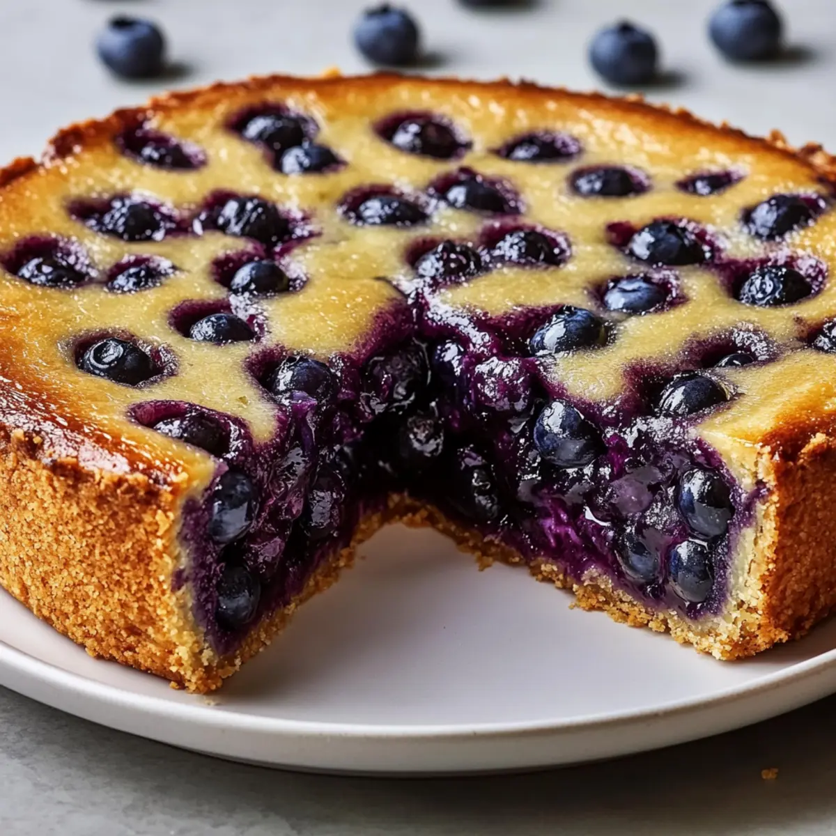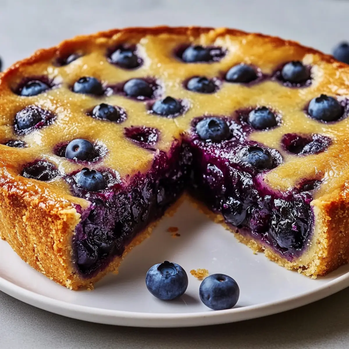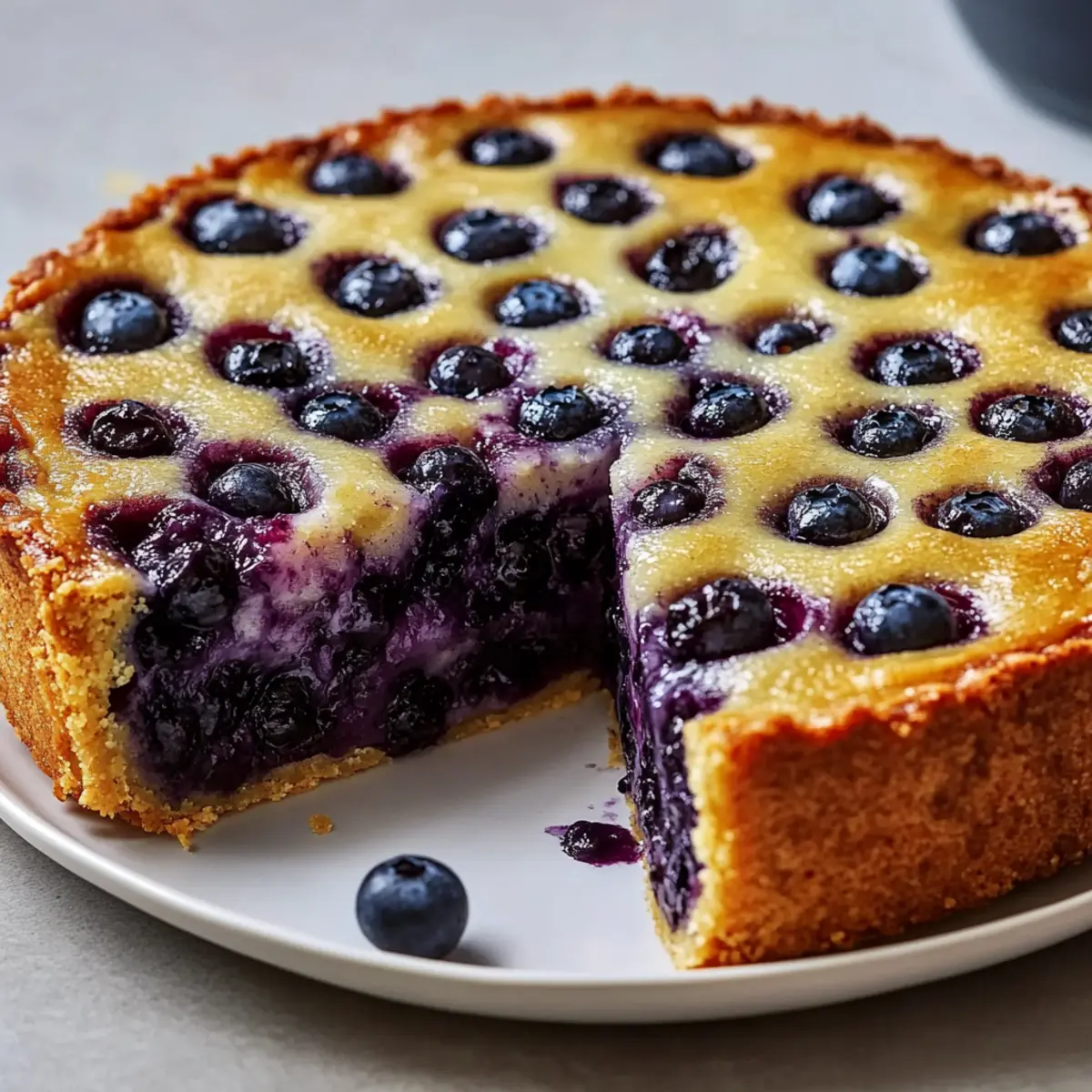 The aroma of baked blueberries wafting through the kitchen instantly transports me back to summer picnics and family gatherings. Today, I’m excited to share my Effortless Crustless Blueberry Pie, a delightful dessert that captures all those cherished memories without the fuss of a traditional crust. This simple recipe not only saves time but boasts a tender cake-like texture that beautifully mirrors the bright flavors of juicy blueberries. Whether you’re enjoying it warm with a scoop of ice cream or chilled as a refreshing treat, this pie is perfect for any occasion. Plus, it’s a versatile option—adaptable with your choice of berries and easily made gluten-free. Ready to skip the crust and dive into this deliciousness? Let’s get started! Why is this pie so delightful? Simplicity at Its Best: This Crustless Blueberry Pie comes together effortlessly, making it ideal for busy bakers. With just a handful of simple ingredients, you can whip up a mouthwatering dessert in no time. Fresh, Burst of Flavor: Each bite is a delicious explosion of blueberries, complemented perfectly by the tender, cake-like batter. Versatile Sweets: Feeling adventurous? Switch up the berries to raspberries or blackberries for a tasty twist! It’s a foolproof way to tailor the pie to your cravings. Make-Ahead Magic: Prepare in advance and let the flavors meld—this pie tastes even better the next day, making it a perfect party dessert. Guilt-Free Indulgence: With about 250 calories per slice, you can enjoy this dessert without the guilt! Try pairing it with a side of fresh fruit or serve it as a delightful breakfast alongside coffee. Crustless Blueberry Pie Ingredients • To create this delectable and easy Crustless Blueberry Pie, gather these ingredients: For the Batter Sugar – Use granulated sugar for optimal sweetness. All-Purpose Flour – Structure is key; replace with gluten-free flour for a gluten-free option. Salt – A pinch balances sweetness and enhances flavors. Eggs – Room temperature eggs will make the batter richer and bind everything together. Butter – Melted unsalted butter adds richness; swap with coconut oil for a dairy-free version. Vanilla Extract – Pure vanilla extract brings a delightful aroma and sweetness. Lemon Zest – Optional but recommended for a bright flavor lift. For the Blueberries Blueberries – The star of our pie! Fresh or frozen can be used; just toss them in without thawing to keep their texture juicy and intact. Step‑by‑Step Instructions for Crustless Blueberry Pie Step 1: Preheat and Prepare Begin by preheating your oven to 350°F (175°C). While the oven heats up, grease a 9-inch pie dish thoroughly with butter or cooking spray to prevent sticking. This will ensure that your Crustless Blueberry Pie has a beautiful, golden edge once baked, making it easier to slice and serve. Step 2: Combine Dry Ingredients In a medium mixing bowl, whisk together the granulated sugar, all-purpose flour, and salt until well blended. This step helps to evenly distribute the ingredients and creates a uniform batter for your pie. Aim for a smooth mixture with no lumps—it should look light and airy, ready to elevate the flavors of your crustless pie. Step 3: Mix the Wet Ingredients In a separate bowl, whisk the eggs vigorously until they are frothy and well combined. Then, add in the melted butter, vanilla extract, and lemon zest. Mix until everything is smooth and fully incorporated. The combination of these wet ingredients will provide richness and moisture that beautifully complements the blueberries in the pie. Step 4: Combine Wet and Dry Mixtures Gently fold the wet mixture into the dry ingredients using a spatula, mixing until just combined. Be careful not to overmix; a few lumps are okay as they will bake out. This delicate folding will help maintain the light, cake-like texture of your Crustless Blueberry Pie, resulting in a delightful batter. Step 5: Incorporate the Blueberries Now it’s time for the star of the show! Carefully fold the blueberries into the batter, taking care to avoid mashing them. This step ensures each bite of your pie is bursting with juicy blueberry goodness. If using frozen blueberries, there’s no need to thaw—they’ll bake perfectly into the cake-like structure without releasing excess moisture. Step 6: Pour and Spread the Batter Pour the prepared batter into your greased pie dish, spreading it out evenly to ensure even baking. The mixture will resemble a thick cake batter, and you want to see those beautiful blueberries dotted throughout. Smooth the top gently with your spatula, creating a nice level surface for baking. Step 7: Bake the Pie Slide the pie into your preheated oven and bake for 45 to 50 minutes. Keep an eye on the top; it should become golden brown, and a toothpick inserted in the center should come out clean. The aroma wafting through your kitchen will be irresistible, signaling that your Crustless Blueberry Pie is almost ready to reveal! Step 8: Cool and Serve Once baked, remove the pie from the oven and allow it to cool for about 15 minutes in the dish. This resting time helps the pie set up and makes it easier to slice. For an added touch, dust the top with powdered sugar just before serving, creating a charming and inviting presentation for your delightful dessert. Make Ahead Options These Crustless Blueberry Pie preparations are perfect for busy home cooks looking to save time! You can prepare the batter up to 24 hours in advance and store it in an airtight container in the refrigerator. This allows the flavors to meld beautifully. Additionally, you can wash and measure the blueberries up to 3 days ahead; just keep them refrigerated to maintain their freshness. When you’re ready to bake, simply fold in the blueberries to the chilled batter, pour it into your greased pie dish, and bake as directed. This way, you’ll have a delicious dessert with minimal effort, all while making your weeknight cooking hassle-fre