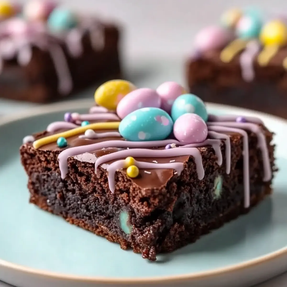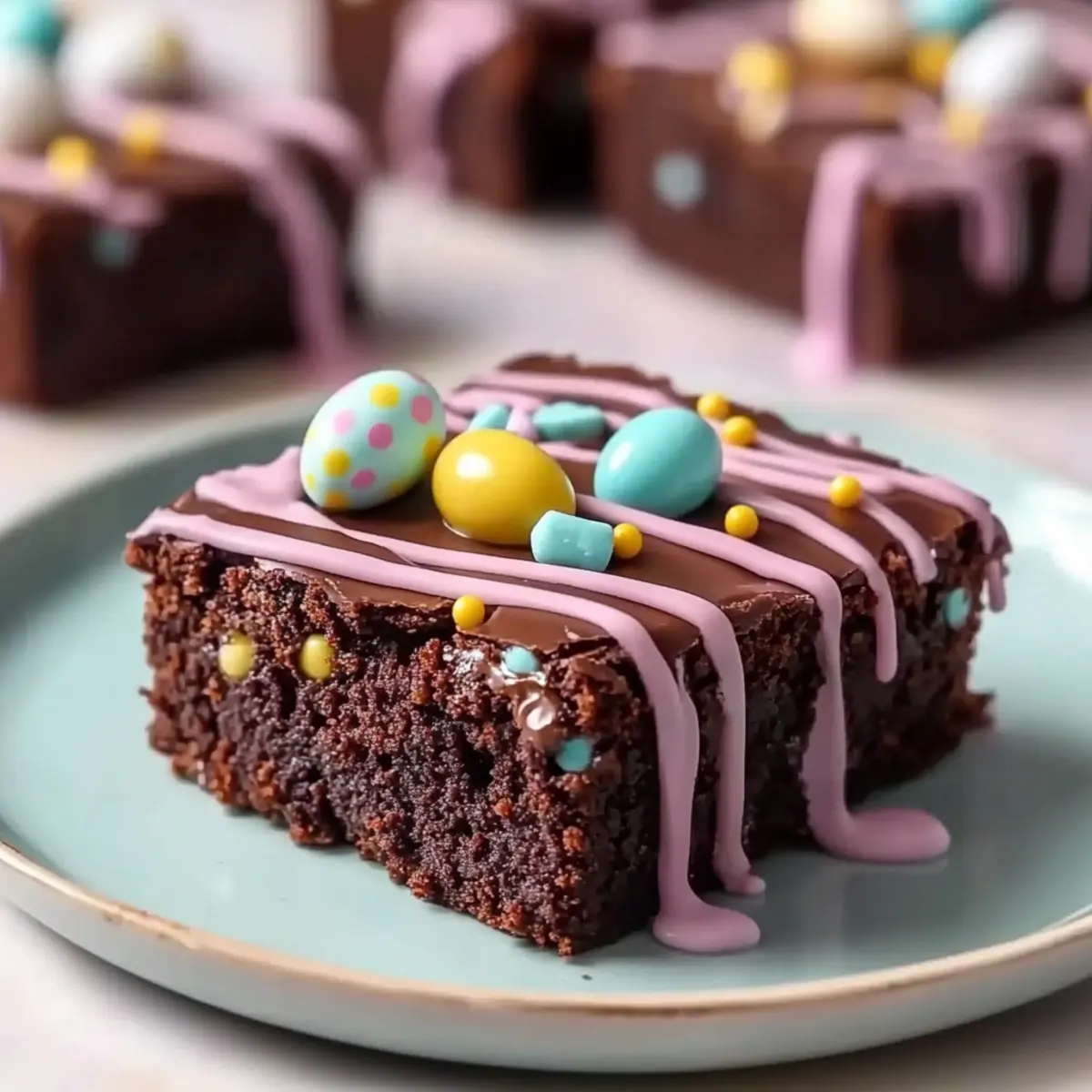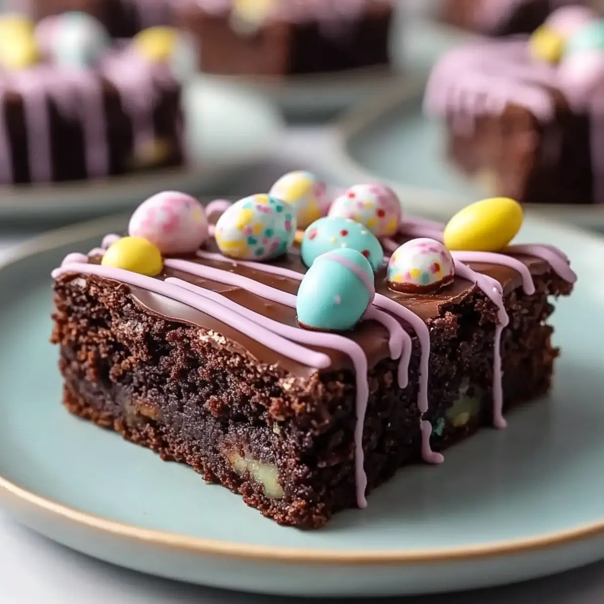 As the first blooms of spring peek through the thawing earth, my kitchen transforms into a hub of creativity, especially when it comes to holiday treats. This is the magic of my Easter Brownies recipe—a delightful fusion of rich chocolate and chewy, fudgy goodness, all topped with a creamy pastel drizzle that sings of the season. Not only are these brownies a showstopper for family gatherings, but they’re also a breeze to whip up, making them a perfect project for little hands eager to help. With minimal prep time and endless customization options, you’ll be able to dazzle your loved ones with these festive delights. So, are you ready to make your dessert table the talk of the Easter brunch? Why Are These Easter Brownies Irresistible? Indulgent Flavor: The rich chocolate base melts in your mouth, creating a fudgy experience that’s hard to resist. Effortless Preparation: With simple steps, even kids can join in the fun of decorating—making it a family affair! Customizable Options: Tailor these brownies to your occasion; switch toppings or drizzle colors for every holiday—think Halloween or Christmas! Stunning Presentation: The vibrant pastel drizzle makes these brownies a standout dessert that will surely impress your guests. Perfect for Sharing: Bring a tray to your next Easter brunch or family gathering, and watch them disappear! For more delicious ideas, check out my Decadent Chocolate Brownies or Millionaire Peach Salad for delightful crowd-pleasers. Easter Brownies Recipe Ingredients Here’s what you’ll need to create these stunning Easter Brownies! For the Brownie Base Unsalted Butter – Adds richness and moisture; substitute with margarine if necessary. Granulated Sugar – Provides sweetness and creates structure for the brownies. Brown Sugar – Deepens flavor with caramel notes, adding moisture to the batter. Eggs – Bind the ingredients together and add moisture; can substitute for a vegan option. Vanilla Extract – Enhances the overall flavor profile for a lovely taste. All-Purpose Flour – Gives structure to the brownies; gluten-free flour blend can work too. Cocoa Powder – Delivers that rich chocolate flavor; unsweetened cocoa is the best choice. Salt – Balances out the sweetness to enhance all the flavors. Chocolate Chips – Adds extra richness and texture; semi-sweet or dark varieties can be used. For the Topping Semisweet or Milk Chocolate Chips – Creates a luscious, smooth chocolate layer atop the brownies. Coconut Oil or Butter – Adds glossiness and smooth texture to the chocolate topping. For the Drizzle White Chocolate – Provides a sweet, creamy drizzle; yogurt or dairy-free chocolate can be alternatives. Food Coloring – Use gel colors to create vibrant pastel shades for your beautiful drizzle. For Decoration Mini Candy Eggs and Sprinkles – Perfect for enhancing visual appeal; feel free to switch based on your theme! With these ingredients, your Easter Brownies are bound to impress all who taste them! Enjoy the celebration with your homemade treats. Step‑by‑Step Instructions for Easter Brownies Recipe Step 1: Preheat and Prepare the Pan Begin by preheating your oven to 350°F (175°C). While the oven warms up, take a 9×13-inch baking pan and line it with parchment paper, ensuring there’s some overhang on the sides for easy removal later. This will help the brownies release smoothly after baking. Step 2: Mix the Sugars and Butter In a large mixing bowl, whisk together the melted unsalted butter with granulated sugar and brown sugar until the mixture is smooth and glossy. This should only take a couple of minutes. You’ll know it’s ready when the sugars have dissolved, and the mixture is homogenous—just perfect for our Easter Brownies. Step 3: Incorporate Eggs and Vanilla Next, beat in the eggs, adding one at a time, making sure each egg is fully incorporated before adding the next. After the eggs, stir in the vanilla extract. The mixture should look rich and creamy, filled with the promise of delicious chocolate flavor. Step 4: Combine Dry Ingredients In a separate bowl, sift together the all-purpose flour, cocoa powder, and salt. This step is crucial for aeration. Gently fold these dry ingredients into the wet mixture using a spatula, taking care not to overmix. You want the batter to remain thick and fudgy, just right for our rich Easter Brownies. Step 5: Add Chocolate Chips and Pour Once combined, fold in the chocolate chips until evenly distributed throughout the brownie batter. Then, pour this luscious mixture into the prepared pan, using a spatula to smooth the top. This will ensure you have evenly baked brownies with a lovely surface. Step 6: Bake the Brownies Place the baking pan in your preheated oven and bake for 30–35 minutes. Check for doneness by inserting a toothpick into the center; it should come out with a few moist crumbs, signaling that your Easter Brownies are perfectly fudgy. Avoid overbaking to maintain that delightful texture. Step 7: Cool the Brownies Once baked, remove the pan from the oven and allow the brownies to cool completely in the pan on a wire rack. This cooling step is essential to ensure the topping adheres properly without melting into the fudgy goodness. Step 8: Prepare the Chocolate Topping In a microwave-safe bowl, melt the semisweet or milk chocolate chips combined with coconut oil until smooth, stirring every 20 seconds to prevent overheating. Once melted, spread the glossy chocolate evenly over the cooled brownies, creating a luscious layer that will make your Easter Brownies shine. Step 9: Create the Pastel Drizzle Divide the melted white chocolate into small bowls, then tint with food coloring to create lovely pastel shades. Using a spoon or piping bag, drizzle the colored white chocolate over the chocolate layer to create an eye-catching design that embodies the spirit of spring. Step 10: Add Finishing Touches Before the drizzle sets, sprinkle mini candy eggs and sprinkles on 