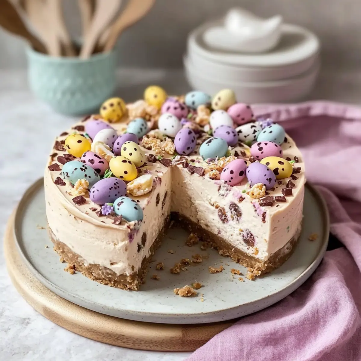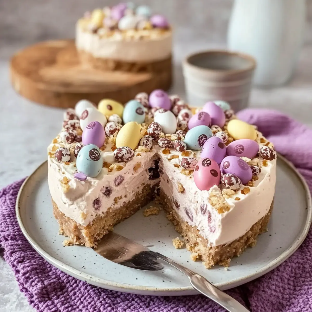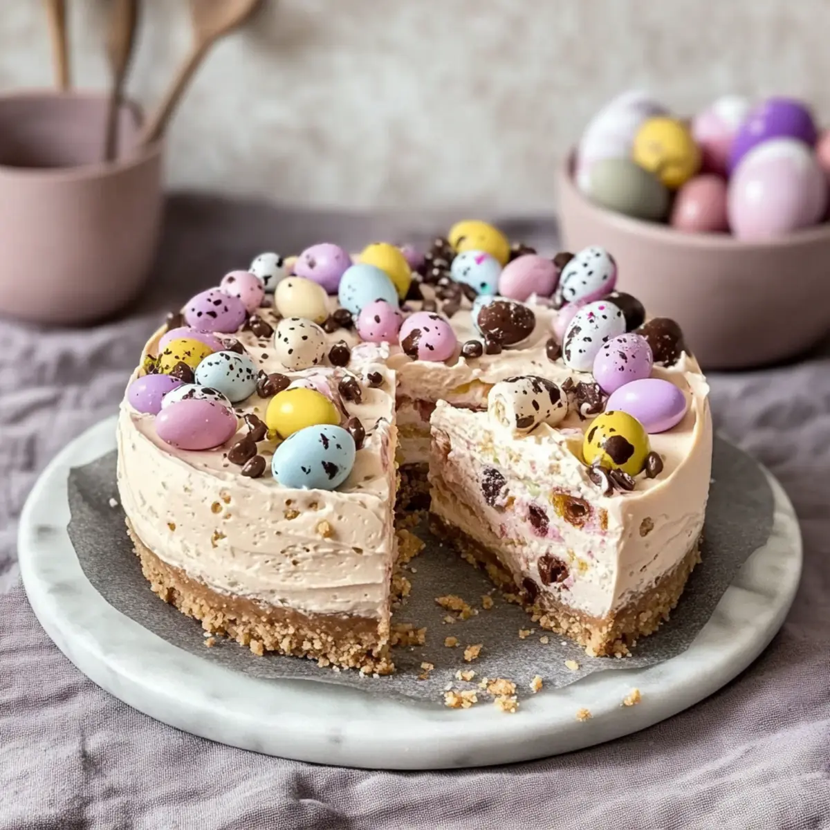 Stepping into the kitchen, I can already feel the excitement of Easter brim over with creativity—and what better way to celebrate than with a gorgeous Easter No-Bake Mini Egg Cheesecake? This dessert is a showstopper, perfectly combining the classic flavors of creamy vanilla cheesecake with the whimsical crunch of Cadbury Mini Eggs. Not only does it require just 20 minutes of prep time, making it a breeze for even the busiest home-chefs, but it also offers a spectacularly light and mousse-like texture that will have everyone in awe. As we gather around the table to share laughter and good food, this make-ahead dessert promises to steal the spotlight. Curious about how to whip this indulgent delight together? Let’s dive in! Why is This Cheesecake a Must-Try? Ease of Preparation: With just 20 minutes of prep time, you can create a stunning dessert without spending hours in the kitchen. No-Bake Delight: Skip the oven and enjoy the light, fluffy filling that sets beautifully in the fridge, making this cheesecake perfect for busy days. Crowd-Pleasing Flavor: The combination of rich vanilla and crunchy Cadbury Mini Eggs ensures that every bite is bursting with joyous flavor—ideal for gatherings! Versatile Variations: Feeling adventurous? Try adding melted dark chocolate or a swirl of caramel for a unique twist! Presentation Perfection: Topped with colorful chocolate eggs, this cheesecake doesn’t just taste divine; it looks festive and inviting on any dessert table. For more delightful treats, check out my Brownie Cheesecake Indulge or the refreshing Cheesecake Fruit Salad. Easter No-Bake Mini Egg Cheesecake Ingredients For the Crust • Digestive Biscuits – This forms the sturdy base of your cheesecake; graham crackers are a great substitute if needed. • Unsalted Butter – Binds the crust beautifully; swap for coconut oil to make it dairy-free. For the Cheesecake Filling • Full Fat Cream Cheese – Ensures a creamy, luscious texture; avoid low-fat as it may lead to a soggy filling. • Double Cream (Heavy Cream) – Gives a light, fluffy texture; whipping cream can work as an alternative. • Powdered Icing Sugar – Sweetens your cheesecake and adds stability; granulated sugar can be used but may affect texture. • Vanilla Bean Paste – Infuses a rich flavor; vanilla extract is a simple substitute. • Fine Salt – Enhances the sweetness and balances the flavors beautifully. For the Decoration • Cadbury Mini Eggs – These add a festive crunch and eye-catching color; crush two-thirds for the filling and use the rest for topping. Now you’re set to create the ultimate Easter No-Bake Mini Egg Cheesecake! Let’s bring this delightful masterpiece to life! Step‑by‑Step Instructions for Easter No-Bake Mini Egg Cheesecake Step 1: Prepare the Pan Begin by lining the base of a 23 cm (9-inch) springform pan with parchment paper to ensure easy removal of your Easter No-Bake Mini Egg Cheesecake later. This small step will make serving your beautiful dessert a breeze. Step 2: Make the Crust Next, crush the digestive biscuits in a food processor until they resemble fine crumbs, which should take about 30 seconds. In a mixing bowl, combine the crushed biscuits with melted unsalted butter until you achieve a wet sand texture. This mixture will form the delicious crust for your cheesecake. Step 3: Press the Crust Firmly press the biscuit mixture into the base of the prepared springform pan, using the back of a spoon or your fingers to create an even layer slightly up the sides. It’s essential to make sure it’s packed well, so it holds its shape; then, chill the crust in the refrigerator for about 30 minutes. Step 4: Blend the Filling While the crust is chilling, beat the full-fat cream cheese in a large bowl using an electric mixer until smooth and creamy, which should take around 2-3 minutes. Next, gradually add the powdered icing sugar, vanilla bean paste, and a pinch of fine salt, mixing until everything is fully incorporated and silky. Step 5: Whip the Cream In a separate bowl, whip the double cream to stiff peaks, which will take about 3-5 minutes. Be careful not to over-whip, as you want it light and fluffy. Once ready, gently fold the whipped cream into the cream cheese mixture, being careful to maintain that airy texture which makes the cheesecake so delightful. Step 6: Add the Mini Eggs Now, fold in approximately two-thirds of the crushed Cadbury Mini Eggs into the filling, creating a festive look and flavor that makes your Easter No-Bake Mini Egg Cheesecake special. Mix gently until just combined, ensuring the chocolate pieces are evenly distributed throughout the creamy filling. Step 7: Assemble the Cheesecake Spread the filling evenly over the chilled crust, smoothing it with a spatula into an even layer. This is the moment your cheesecake begins to take shape! Cover the springform pan tightly with plastic wrap, which helps keep the cheesecake fresh while it sets. Step 8: Chill to Set Place the assembled cheesecake in the refrigerator and allow it to chill for at least 6 hours, though overnight is preferred for the perfect creamy consistency. As it chills, your cheesecake will firm up beautifully and develop its delightful flavors. Step 9: Decorate and Serve Once set, carefully release the Easter No-Bake Mini Egg Cheesecake from the springform pan, revealing your stunning dessert. Decorate the top with the remaining crushed Mini Eggs, creating a delightful presentation that will impress your guests. Slice and serve with joy! What to Serve with Easter No-Bake Mini Egg Cheesecake Treat your taste buds to a delightful dining experience that enhances your Easter celebration, where every component sings in harmony. Fresh Fruit Salad: A vibrant mix of strawberries, blueberries, and kiwi adds a refreshing contrast to the rich cheesecake, balancing out the sweetness beautifully. Vanilla Ice Cream: A scoop of creamy vanilla ice cream provides a luscious melting delight that pa