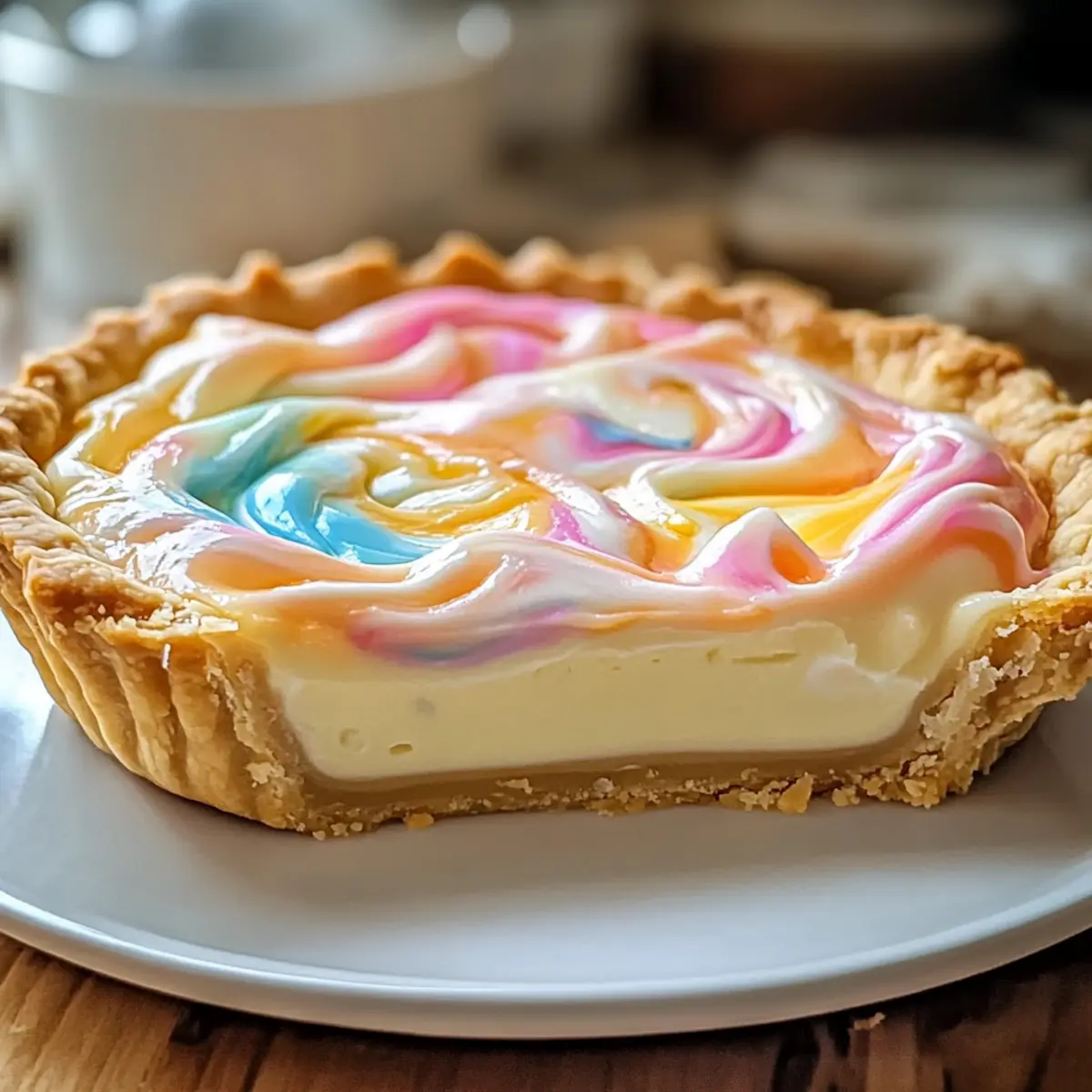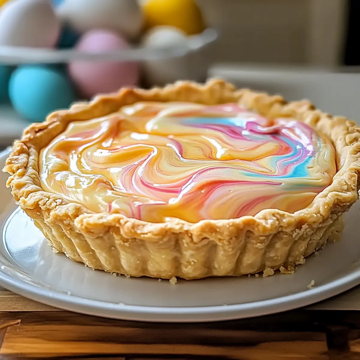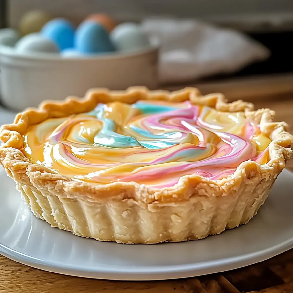 As I walked through a bustling farmers market, the vibrant colors of spring surrounded me, instantly igniting my creative spirit. The sight of fresh blooms and seasonal fruits sparked the idea for the perfect festive dessert: an Easter Swirl Pie. This delightful creation not only brings a pop of color to your table but also offers a creamy, sweet filling that everyone will love—a true crowd-pleaser for any spring gathering. Better yet, it’s surprisingly quick to whip up, allowing you to enjoy more time with loved ones instead of being stuck in the kitchen. Whether you’re an experienced baker or just starting your culinary journey, this Easter Swirl Pie will surely become a cherished addition to your holiday celebrations. Curious about how to make your own colorful masterpiece? Let’s dive into the details! Why Is Easter Swirl Pie So Special? Vibrant Colors: This pie is a feast for the eyes, showcasing beautiful swirls that capture the essence of spring. Creamy Texture: The smooth filling offers a rich, indulgent experience that feels luxurious yet approachable. Quick Preparation: With simple steps and minimal fuss, you can create this stunning dessert without sacrificing time with friends and family. Crowd-Pleaser: Its unique looks and delightful flavors make it a hit at any gathering, ensuring your dessert is the highlight of the meal. Easily Customizable: Add seasonal fruit flavors like lemon or strawberry for a personal touch, or try swapping in mascarpone cheese for a new twist. Dive into the joys of baking with this Easter Swirl Pie, and if you’re looking for more fun ideas, check out the delightful Pudding Rice Krispie treats that will please guests of all ages! Easter Swirl Pie Ingredients For the Crust • Pie Crust – Use a pre-made crust for convenience or opt for a homemade version to add a personal touch. For the Filling • Cream Cheese (8 oz) – Adds creaminess and richness; you can substitute Greek yogurt for a lighter option. • Sugar (3/4 cup) – Sweetens the filling and balances the cream cheese; adjust to taste based on your sweetness preference. • Eggs (3) – Binds the filling together; add them one at a time for thorough mixing and better texture. • Vanilla Extract (1 tsp) – Enhances the flavor with aromatic sweetness; stick to pure vanilla for the best results. For the Color • Food Coloring – Essential for those vibrant swirls; gel color works best for intense hues. This delightful Easter Swirl Pie will soon become a favorite during your spring festivities, bringing both joy and colorful charm to your dessert table! Step‑by‑Step Instructions for Easter Swirl Pie Step 1: Prepare Crust Preheat your oven to 350°F (175°C). If using a pre-made pie crust, simply roll it into a 9-inch pie pan, ensuring it fits snugly, and crimp the edges for a decorative touch. If making from scratch, follow your favorite recipe to create a flaky crust that will hold this colorful Easter Swirl Pie. Step 2: Bake Crust Line the crust with parchment paper and fill it with pie weights or dried beans to prevent bubbling. Place it in the preheated oven and bake for 10-15 minutes, or until the crust is lightly golden. Once done, remove it from the oven and let it cool completely on a wire rack, preparing for the delicious filling. Step 3: Make Filling Base In a mixing bowl, beat the cream cheese and sugar together until the mixture is smooth and creamy, approximately 2-3 minutes. Carefully incorporate the eggs one at a time, ensuring each egg is fully mixed before adding the next, creating a beautifully blended filling for your Easter Swirl Pie. Step 4: Flavoring Add the vanilla extract to your creamy mixture and continue to beat it until fully combined. This step enhances the filling’s flavor profile, infusing it with aromatic sweetness that complements the richness of the cream cheese. Scrape down the sides of the bowl to collect any leftover ingredients. Step 5: Color the Filling Divide the filling into separate bowls depending on how many colors you wish to use. Add food coloring to each bowl, one drop at a time, mixing gently until the desired brightness is achieved. Let your creativity flow as you create vibrant colors for the swirls of your Easter Swirl Pie. Step 6: Swirl Filling Begin by spooning dollops of your colored fillings into the center of the baked pie crust. Use a knife or skewer to gently swirl the colors together, creating a beautiful marbled effect. Be careful not to over-mix; you want to maintain the distinct swirls of color that make this pie visually stunning. Step 7: Bake Again Reduce the oven temperature to 325°F (160°C) and place the pie back in the oven. Bake for 35-40 minutes, until the filling is set but still slightly jiggly in the center. You’ll know it’s done when the edges are firm and the vibrant swirls remain intact and colorful. Step 8: Cool & Serve Allow your Easter Swirl Pie to cool completely on a wire rack. This cooling step is essential to ensure clean slices when serving. Once cooled, slice into wedges and serve chilled or at room temperature, showcasing the delightful swirls and creamy texture that make this pie a springtime favorite. What to Serve with Easter Swirl Pie As you prepare to showcase this stunning dessert, let’s explore delightful pairings that will create a memorable meal experience. Fresh Berries: The natural sweetness and acidity of strawberries, blueberries, or raspberries brighten up each slice, balancing the creamy filling beautifully. Whipped Cream: A dollop of lightly sweetened whipped cream adds a luxurious touch to every bite, enhancing the dessert’s already smooth texture. Mint Infused Iced Tea: Refreshing and light, mint tea adds a subtle twist that complements the pie’s sweetness, offering a cooling sensation on a warm spring day. Lemon Curds Tart: The tangy, zesty flavor provides a delightful contrast to the rich pie, awakening your palate with every mouthful. This pairing brings the