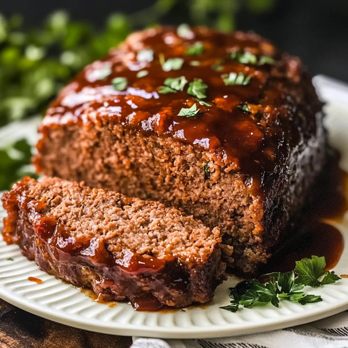 The sizzling sound of meatloaf browning in the oven can transport me straight to my childhood kitchen, where family dinners were filled with laughter and the welcoming aroma of Easy Meatloaf. This recipe is not just a nostalgic nod to comfort food; it’s a versatile dish that brings families together, offering delightful customization. Whether you’re whipping it up for a busy weeknight or a festive gathering, this Easy Meatloaf Recipe allows for gluten-free and low-fat variations, making it a favorite for health-conscious foodies. Plus, with enough leftovers to stock your freezer, you’re just a quick reheating away from a scrumptious meal anytime you crave that warm, comforting bite. Ready to discover how easy it is to bring this classic dish to your table? Let’s get started! What Makes This Meatloaf Recipe Unique? Customization at Its Finest: This Easy Meatloaf Recipe lets you tailor flavors to your liking, whether you prefer classic beef or a leaner turkey option. Time-Saving Delight: With two loaves in one go, dinner prep is efficient, and you’ll have plenty of leftovers for meal planning. Nutritional Benefits: Incorporate veggies like grated zucchini for added moisture and nutrition without compromising taste. New Family Favorite: The sweet and tangy glaze is a crowd-pleaser, drawing everyone to the dinner table. Freezer-Friendly: Make-ahead convenience means you can store slices for quick weeknight meals—just reheat and enjoy! Elevate your mealtime with this cozy dish and consider pairing it with creamy mashed potatoes or a fresh garden salad for a well-rounded meal! Easy Meatloaf Recipe Ingredients For the Meatloaf Ground Beef (2 lbs, 86% lean) – Provides structure; choose higher fat for a moister loaf. Italian Breadcrumbs (¾ cup) – Binds the mixture; plain breadcrumbs work if you prefer a milder flavor. Eggs (2 pcs) – Adds richness and binds ingredients; go for fresh large eggs for the best results. Tomato Sauce (8 oz) – Keeps the meatloaf moist; opt for low-sodium for a healthier option. Onion, diced (½ cup) – Brings sweetness and moisture; white or sweet onions can substitute. Salt (1 tsp) – Essential for enhancing overall flavor. Ground Pepper (½ tsp) – Adds a hint of spice to the dish. Italian Seasoning (1 tbsp) – Gives depth; can be substituted with oregano or thyme for variety. For the Glaze Ketchup (¼ cup) – Adds a sweet, shiny finish that gives the meatloaf its signature charm. Brown Sugar (1 tbsp) – Balances the glaze’s sweetness; feel free to adjust to your taste. Salt (½ tsp) – Helps to balance the glaze’s sweetness for a well-rounded flavor. Indulge in this Easy Meatloaf Recipe that’s sure to satisfy your family’s cravings! Whether you’re serving it up on a cozy evening or feeding a crowd, these ingredients create a classic dish with room for your personal touch! Step‑by‑Step Instructions for Easy Meatloaf Recipe Step 1: Preheat the Oven Begin by preheating your oven to 350°F (175°C). This temperature is perfect for cooking the Easy Meatloaf evenly. While the oven heats up, gather your equipment, including a broiler pan and non-stick cooking spray to prepare for the meatloaf, ensuring a smooth cooking process. Step 2: Prepare the Broiler Pan Spray your broiler pan with the non-stick cooking spray to prevent the meatloaf from sticking. This step is essential for easy cleanup and helps the fat to drain during baking, resulting in a healthier dish. Set the prepared pan aside and get ready to mix the ingredients. Step 3: Mix the Ingredients In a large mixing bowl, combine the ground beef, Italian breadcrumbs, eggs, tomato sauce, diced onion, salt, ground pepper, and Italian seasoning. Use clean hands or a spatula to mix gently, ensuring everything is incorporated without overmixing. You’ll want a homogenous mixture that looks moist and appealing, ensuring the best texture for your Easy Meatloaf. Step 4: Shape the Loaves After combining the ingredients, divide the meat mixture into two equal portions. Shape each portion into a loaf that fits comfortably on your broiler pan. Make sure the loaves are evenly shaped, which promotes uniform cooking. Place the shaped loaves on the prepared broiler pan, ready for the oven. Step 5: Bake the Meatloaf Transfer your broiler pan with the meatloaves into the preheated oven. Bake for 1 hour, or until the meat reaches an internal temperature of 165°F (74°C). Keep an eye on the loaves; they should be nicely browned on top and firm to the touch, indicating they are cooking through. Step 6: Prepare the Glaze While the meatloaf is baking, mix together the ketchup, brown sugar, and salt in a separate bowl to create the glaze. This mixture will add a deliciously sweet and tangy finish to your Easy Meatloaf. Stir well and set it aside until it’s time to glaze the meatloaf. Step 7: Apply the Glaze After 1 hour of baking, remove the meatloaf from the oven. Carefully spread the prepared glaze evenly over the top of each loaf using a spoon or brush. The glaze will create a beautiful, caramelized finish. Return the loaves to the oven for an additional 15 minutes, allowing the glaze to set and develop a rich flavor. Step 8: Rest and Serve Once the meatloaf is done baking, remove it from the oven and allow it to rest for a few minutes. This resting period helps the juices redistribute, making the meatloaf juicier. After resting, slice the Easy Meatloaf into portions for serving, and prepare to delight your family with the comforting aroma and flavor! How to Store and Freeze Easy Meatloaf Fridge: Store leftovers in an airtight container for up to 4 days. This keeps your Easy Meatloaf fresh and ready for quick lunches or dinners. Freezer: Wrap individual slices tightly in plastic wrap, then place in a freezer-safe bag or container. It will keep well for up to 3 months. Reheating: Thaw overnight in the fridge before reheating. Warm in the oven at 350°F for about 20 minutes, or in the microwave u