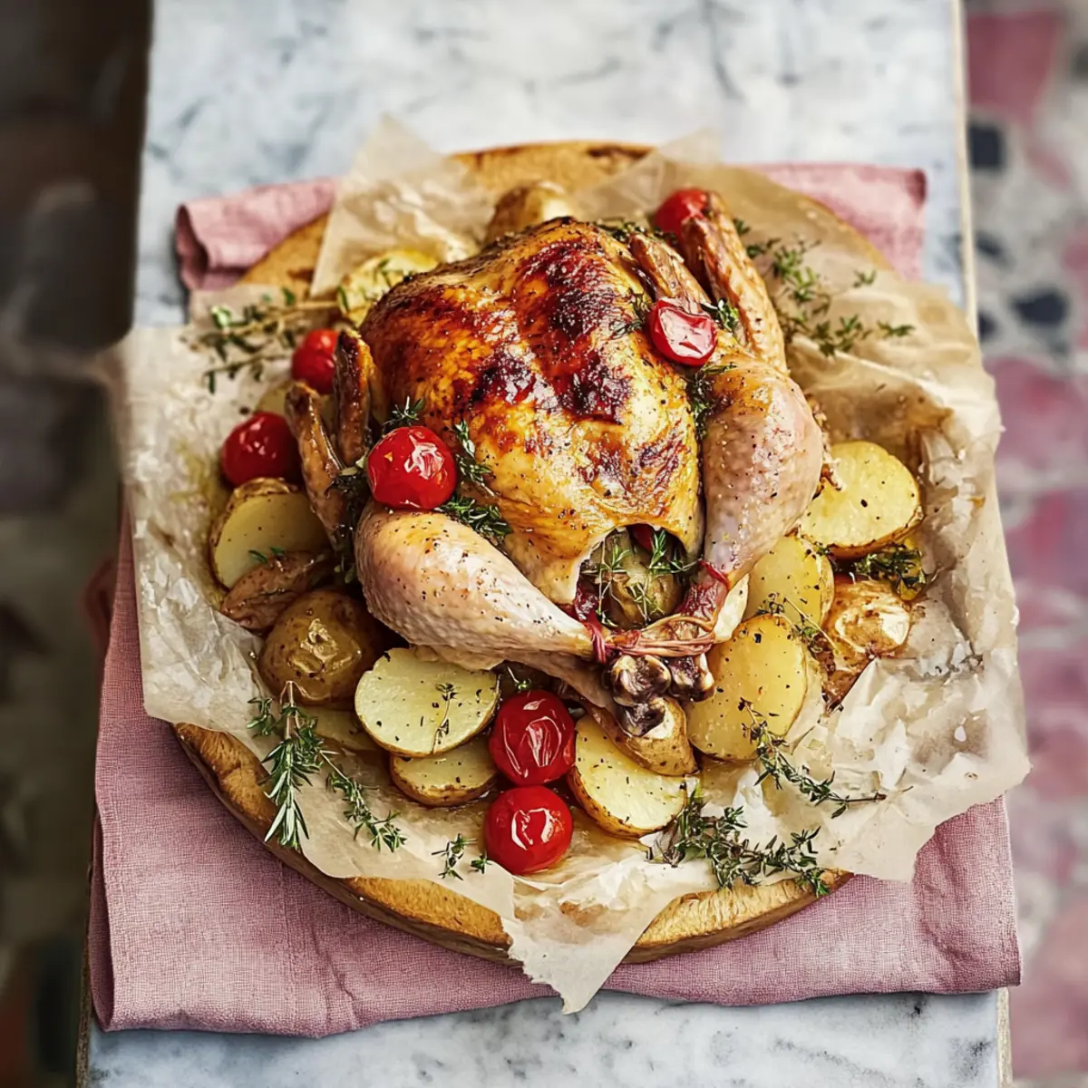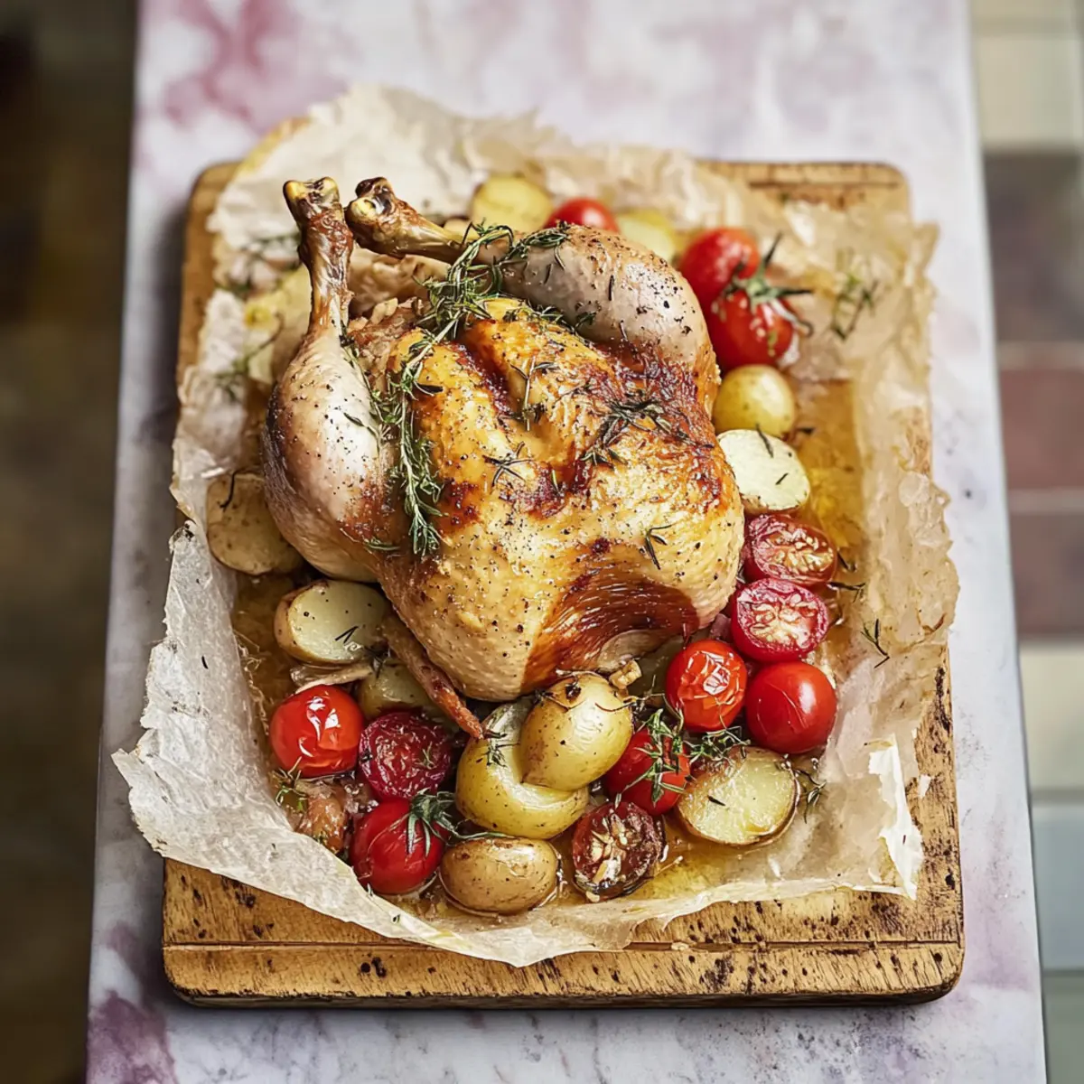 This famous chicken bread is perfect for busy weeknights, allowing you to save precious time in the kitchen. You can marinate the 1.2kg whole chicken up to 24 hours in advance, enhancing its flavor dramatically. Simply combine the herbs, garlic, and olive oil, coat the chicken, and store it in the fridge. Additionally, you can slice the sourdough loaf and prep the potatoes in advance by assembling them in the roasting tray; cover and refrigerate for up to 3 days. When you’re ready to enjoy your meal, just place the marinated chicken on the bread and potatoes, roast as directed, and savor a delicious dish that tastes just as fresh!
