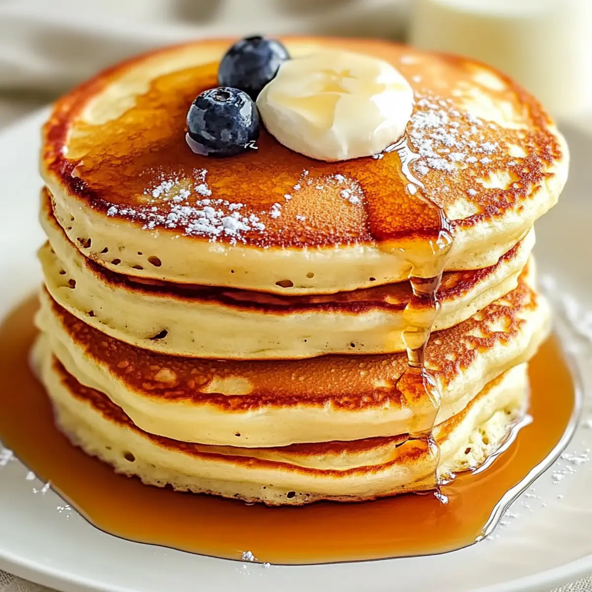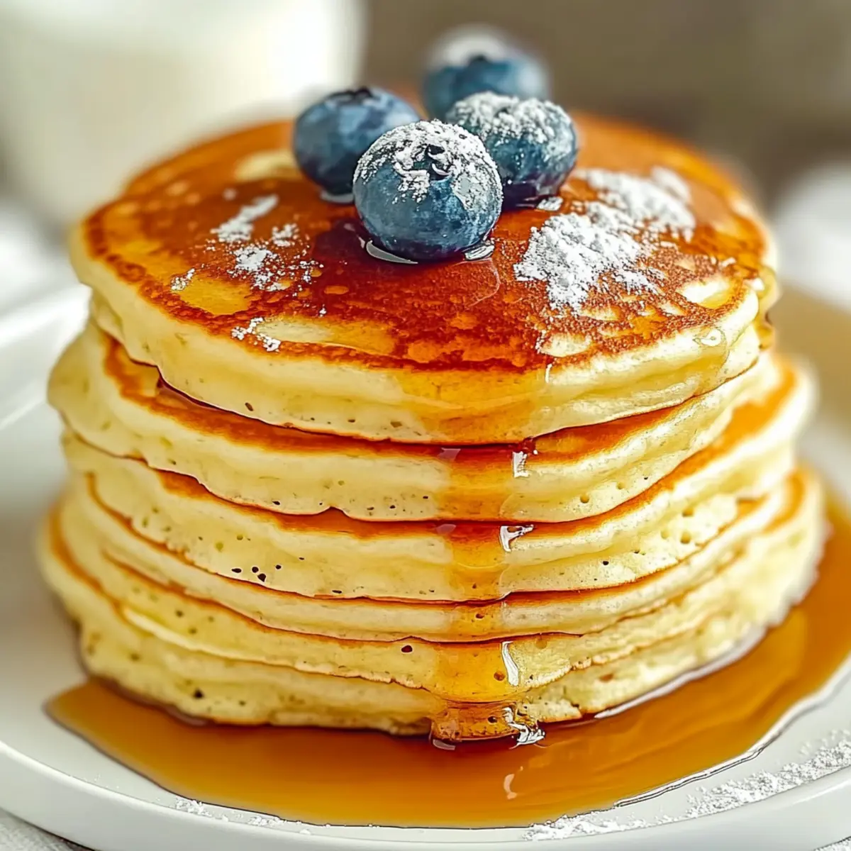 The aroma of warm pancakes sizzling on the skillet is a memory that instantly transports me back to lazy Sunday mornings. These Fluffy Pancakes are my go-to recipe, combining ease with a comforting delight that guarantees to elevate any breakfast. Imagine flipping a golden stack that’s not just quick to whip up but also wonderfully adaptable – you can easily swap ingredients to make it gluten-free or dairy-free. Every bite is a cloud of tenderness, making them an irresistible crowd-pleaser whether it’s a family brunch or a cozy morning solo. Ready to take your breakfast game to new heights? Let’s dive into making these delicious fluffy pancakes together! Why Are Fluffy Pancakes a Breakfast Favorite? Irresistible Fluffiness: Each pancake is like a soft cloud, promising a comforting bite that melts in your mouth. Quick & Easy: Perfect for busy mornings, this recipe comes together in no time! Versatile Options: Easily adaptable for gluten-free or dairy-free diets by substituting ingredients. Check out our Fluffy Matcha Pancakes Discover for a fun twist! Crowd-Pleasing Appeal: These pancakes are sure to impress family and friends, making breakfast feel special. Delicious Toppings: Customize with maple syrup, fresh fruit, or even whipped cream for extra indulgence! Get ready to transform your breakfasts with this delightful recipe that everyone will adore! Fluffy Pancake Ingredients • Here’s everything you need to make the perfect fluffy pancakes! For the Batter All-purpose flour – Provides structure and a tender crumb; swap for a gluten-free blend for gluten-free pancakes. Granulated sugar – Adds sweetness; you can adjust the amount for a less sweet pancake. Baking powder – Essential for rise and fluffiness; ensure it’s fresh for the best results. Baking soda (optional) – Enhances fluffiness and can be omitted if desired. Salt – Balances the sweetness in the batter. Milk (1 ¾ cups) – Moisture-rich; substitute with almond or oat milk for dairy-free options. Large egg – Binds the ingredients together; can be replaced with 1/4 cup unsweetened applesauce or flaxseed meal mixed with water. Unsalted butter (1/4 cup, melted) – Adds richness; coconut oil works as a dairy-free alternative. Vanilla extract (2 teaspoons) – Infuses warm, aromatic depth into the batter; optional but highly recommended. Gather these ingredients and get ready to make fluffy pancakes that will delight your family and elevate your breakfast experience! Step‑by‑Step Instructions for Fluffy Pancakes Step 1: Whisk Together Dry Ingredients In a large mixing bowl, combine 1 cup of all-purpose flour, 2 tablespoons of granulated sugar, 2 teaspoons of baking powder, 1/2 teaspoon of baking soda (optional), and a pinch of salt. Use a whisk to mix thoroughly until all dry ingredients are evenly incorporated, creating a light and airy mixture that will set the foundation for your fluffy pancakes. Step 2: Combine Wet Ingredients In a separate bowl, pour in 1 ¾ cups of milk, crack 1 large egg, and add 1/4 cup of melted unsalted butter along with 2 teaspoons of vanilla extract. Whisk these ingredients together until the mixture is smooth and well-blended, ensuring all components are combined for a creamy pancake batter that enhances the fluffiness. Step 3: Mix Wet and Dry Ingredients Pour the wet mixture into the dry ingredients, gently folding them together using a spatula. Be careful not to overmix; a few lumps are perfectly fine. This process should take only about 30 seconds, resulting in a slightly thick batter that is ready for cooking your fluffy pancakes without losing that desired airy texture. Step 4: Let the Batter Rest Cover the bowl with a clean kitchen towel and let the batter rest for 5 to 10 minutes. This resting period allows the flour to hydrate fully and promotes a lighter, fluffier pancake. While you wait, you can prepare your cooking equipment or any desired toppings for serving later. Step 5: Preheat Your Skillet Place a nonstick skillet or griddle on low to medium heat, allowing it to warm up thoroughly for about 5 minutes. Before pouring the batter, lightly grease the surface with a small amount of butter or oil, ensuring it coats the skillet evenly to prevent sticking and achieve those beautiful golden-brown fluffy pancakes. Step 6: Cook the Pancakes Using a measuring cup, pour 1/4 cup of the batter onto the skillet, shaping it into a round. Cook the pancake for about 2 to 3 minutes, or until bubbles form on the surface and the edges appear set. You’ll know it’s time to flip when the bottom is light golden brown, resulting in a beautifully cooked fluffy pancake. Step 7: Flip and Finish Cooking Carefully flip the pancake over with a spatula and cook for an additional 2 to 3 minutes on the other side. The pancake is done when it is golden brown and cooked through, with a tender texture. Transfer it to a warm plate and repeat with the remaining batter, lightly greasing the skillet as needed for each batch. Step 8: Serve with Your Favorites Your fluffy pancakes are now ready to serve! Stack them on a plate and adorn with your favorite toppings: maple syrup, fresh fruit, or a dollop of whipped cream. Enjoy them warm for a delightful breakfast that’s sure to please both family and friends. Fluffy Pancakes Variations & Substitutions Feel free to get creative and tailor these fluffy pancakes to your taste and dietary needs! Gluten-Free: Swap all-purpose flour for a gluten-free flour blend to suit gluten-sensitive diets. Dairy-Free: Use almond milk or oat milk instead of regular milk, and replace butter with coconut oil for a dairy-free delight. Egg-Free: Substitute 1/4 cup unsweetened applesauce or a flaxseed meal and water mix for the egg for a vegan option. This keeps the pancakes just as fluffy and delicious! Flavor Boosts: Add ground cinnamon or nutmeg to the dry ingredients for an aromatic twist that elevates basic pancakes. Sweet Add-Ins: Fold in chocolate chips or blueberr