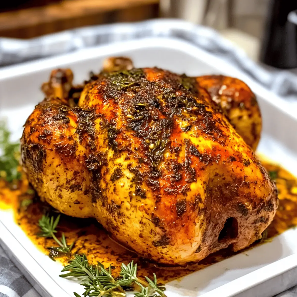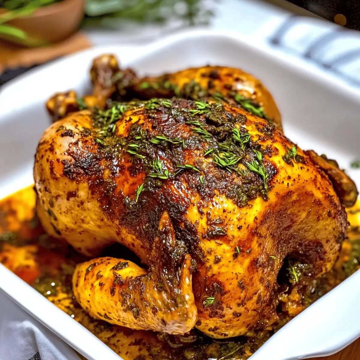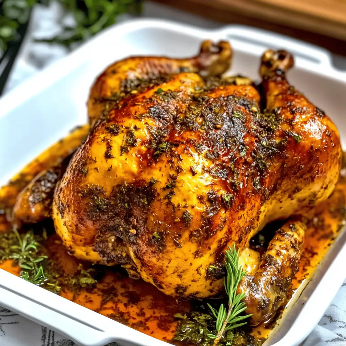 The rich aroma of garlic and herbs fills the kitchen, transporting me back to my grandmother’s cozy dining room, where every meal felt like a celebration. Today, I’m excited to share my recipe for Garlic Herb Butter Roasted Chicken—an effortless dish that not only delights the senses but is also perfect for both weeknight dinners and special gatherings. Imagine crisp golden skin and juicy, flavorful meat enveloped in buttery goodness, all ready in just over an hour. This homemade roast chicken is gluten-free and can easily be adapted to suit a variety of tastes, from a spicy kick to a Mediterranean twist. Trust me, it will impress family and friends alike! What variation will you try first? Why is this recipe a must-try? Simplicity Made Easy: This Garlic Herb Butter Roasted Chicken requires minimal steps, making it perfect for both novice cooks and seasoned chefs alike. Irresistible Aroma: Imagine your home filled with the mouthwatering scent of garlic and herbs—it’s an invitation to gather around the table! Versatile Flavor Profiles: Whether you crave something spicy, Mediterranean, or sweet, this dish can easily adapt with simple tweaks, like adding jalapenos or brown sugar. Crowd-Pleasing Appeal: Perfect for family dinners and dinner parties, this recipe never fails to impress and leaves everyone’s taste buds dancing. Time-Saving Delight: Ready in just over an hour, it’s an effortless solution to weekday meal planning or last-minute entertaining. Pair it with a fresh salad or lined up alongside Garlic Butter Chicken for an easy dinner night! Garlic Herb Butter Roasted Chicken Ingredients For the Chicken Whole Chicken – Aim for organic, free-range (4-5 lbs) for the best flavor and texture. For the Butter Mixture Unsalted Butter (1/4 cup melted & 4 tbsp softened) – Keeps seasoning in your hands for a richer taste. Olive Oil (4 tbsp) – Extra virgin is recommended for its fresh, robust flavor. Lemon Zest & Juice (1 lemon) – Fresh provides the best bright flavor to balance the richness. For the Seasoning Parsley (2 tbsp, chopped) – Adds a splash of freshness and color; you can swap with cilantro if desired. Rosemary (1 tbsp, chopped & 6 sprigs for stuffing) – Delivers a hearty aroma, though dried works in a pinch. Thyme (1 tsp, chopped & 3 sprigs for stuffing) – Infuses an earthy flavor; replace with oregano or marjoram as needed. Paprika (1 tbsp, optional) – Smoked paprika gives a unique depth and color for a twist. For the Aromatics Garlic (6 cloves, minced & 1 head peeled and halved) – Fresh garlic offers potent flavor; avoid substitutions like garlic powder. Salt & Pepper – Essential for perfect seasoning—don’t skimp here! This Garlic Herb Butter Roasted Chicken is all about creating an experience filled with flavor and warmth! Step‑by‑Step Instructions for Garlic Herb Butter Roasted Chicken Step 1: Preheat the Oven Begin by preheating your oven to 425°F (220°C). While the oven warms up, prepare your roasting pan by drizzling a little olive oil to ensure the chicken won’t stick. This simple step will promote a lovely crispness in the skin, setting the stage for a mouthwatering Garlic Herb Butter Roasted Chicken. Step 2: Prepare the Chicken Clean and pat the whole chicken dry with paper towels, making sure to remove any giblets and excess fat from the cavity. This crucial step not only helps with the taste but also aids in achieving that golden-crisp skin. Place the chicken breast-side up in the oiled roasting pan, showcasing its beautiful shape. Step 3: Create Butter Mixture In a mixing bowl, combine the melted unsalted butter, olive oil, and lemon juice, stirring well to blend the flavors. Pour this rich mixture generously over the chicken, ensuring to rub it under the skin as well. This will infuse the meat with succulent flavor, making the Garlic Herb Butter Roasted Chicken irresistible. Step 4: Season the Chicken Sprinkle a generous amount of salt and pepper all over the chicken, making sure to get into all the nooks and crannies for even flavor. Then, take the chopped parsley and sprinkle it on top, adding a pop of color to your dish. This ensures that every bite is packed with deliciousness and vibrantness. Step 5: Prepare Herb Mixture Combine softened butter with chopped rosemary, thyme, lemon zest, and minced garlic in a smaller bowl. Then, rub this fragrant herb mixture all over and underneath the skin of your chicken. This ensures that the flavorful essence permeates the meat and tantalizes every guest at your dinner table. Step 6: Stuff the Chicken Take the halved head of garlic, a few sprigs of rosemary, thyme, and quartered lemon, and stuff them neatly into the chicken cavity. This addition not only enhances the aroma but also moisture during roasting. Tie the chicken legs together with kitchen twine to keep everything snug and secure while roasting. Step 7: Roast the Chicken Carefully place the chicken in the preheated oven and roast it for 1 hour and 15 to 25 minutes. Baste the chicken with the pan juices halfway through cooking for extra moisture and flavor. The chicken is ready when the juices run clear, and the internal temperature reaches 150°F. Step 8: Crisp Up the Skin For an extra crispy finish, turn on the broiler for the last 2 to 3 minutes. Keep a close eye on the chicken to avoid burning the skin. The result should be a beautifully golden and crunchy exterior that perfectly complements the tender, juicy meat of the Garlic Herb Butter Roasted Chicken. Step 9: Rest and Serve Once your chicken is done roasting, remove it from the oven and let it rest for 10 to 15 minutes. This resting period is essential for the juices to redistribute throughout the chicken, ensuring every bite is flavorful. Serve with pan juices and fresh lemon wedges for squeezing on top, bringing zesty freshness to your dish. What to Serve with Garlic Herb Butter Roasted Chicken Finding the perfect accompaniments can elevate your mealtime into a b