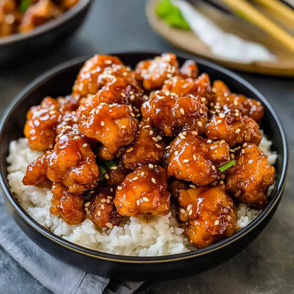 As the sizzling aroma of chicken fills my kitchen, I’m reminded of the vibrant streets of my favorite Chinese takeout spots. Today, I’m sharing my take on a beloved classic: Crispy General Tso’s Chicken. This homemade version is a delightful twist on the popular dish, offering a perfect balance of sweet and spicy flavors. What’s even better? You can whip it up in just 30 minutes, making it an ideal choice for a busy weeknight dinner. With its crispy texture and flavor-packed sauce, this dish is not only healthier than takeout but also brings the essence of comfort food right to your home. Ready to elevate your culinary game and impress your friends and family? Let’s dive into the comforting world of General Tso’s Chicken together! Why is Homemade General Tso’s Chicken Better? Crispiness You Crave: Homemade General Tso’s Chicken features that delightful crunch that’s hard to achieve with takeout. Each bite is perfectly crispy, thanks to the cornstarch coating. Flavor Explosion: The combination of soy sauce, ginger, and hoisin creates a robust, savory taste, while red pepper flakes add just the right amount of heat. Quick & Easy: You can have this delicious dish on the table in just 30 minutes, making it a fantastic option for busy weeknights or when you’re craving comfort food. Customizable Delight: Feel free to experiment! Swap in chicken breasts for a leaner alternative, or try tofu for a vegetarian twist. Nostalgic Comfort: This dish brings the flavors of your favorite Chinese restaurant right into your home, perfect for sharing with family or enjoying on your own. For pairing ideas, try serving it alongside a refreshing Sesame Chicken Cabbage Crunch Salad for a balanced meal! General Tso’s Chicken Ingredients For the Chicken • Chicken Thighs – Tender and juicy, they’re perfect for achieving that rich flavor. • Corn Starch – Essential for a crispy coating; potato starch is a great substitute if needed. • Extra Light Olive Oil – Ideal for frying to achieve maximum crispiness; vegetable oil can also work. For the Sauce • Low Sodium Soy Sauce – Provides the essential umami flavor for your General Tso’s Chicken. • Rice Vinegar – Balances the sweetness and adds a slight acidity; apple cider vinegar is a good alternative. • Hoisin Sauce – Adds sweetness and depth; you can use BBQ sauce in a pinch. • Granulated Sugar – Sweetens the sauce; feel free to adjust for your taste preferences. • Cold Water – Helps to combine and dilute the sauce mixture. • Additional Corn Starch (1.5 tbsp) – Thickens the sauce to the perfect consistency. For Flavor • Minced Ginger – Brings in a warm, fragrant note; fresh grated ginger is also a fine choice. • Garlic (3 cloves) – Enhances overall flavor; garlic powder can replace it if you’re short on fresh garlic. • Red Pepper Flakes – For that desired heat; adjust according to your taste. • Sesame Seeds – Optional but adds a lovely crunch and visual appeal if sprinkled on top. This wonderful blend of ingredients ensures your homemade General Tso’s Chicken is nothing short of spectacular! Enjoy every bite of this comforting dish! Step‑by‑Step Instructions for General Tso’s Chicken Step 1: Prepare Chicken Begin by trimming the chicken thighs and cutting them into 1-inch cubes for even cooking. Dredge the chicken pieces in cornstarch, ensuring they are fully coated. This step is crucial for achieving that signature crispiness you crave in General Tso’s Chicken. Set the coated chicken aside while you prepare the sauce. Step 2: Make Sauce In a medium bowl, combine cold water, low sodium soy sauce, rice vinegar, hoisin sauce, and sugar. Whisk in the additional 1.5 tablespoons of cornstarch until smooth to create a thick and glossy sauce. This mixture will serve as the flavorful glaze that brings your General Tso’s Chicken to life, so make sure it’s well combined. Step 3: Fry Chicken Heat a large skillet over medium-high heat and add enough extra light olive oil to cover the bottom. Once the oil is shimmering, add the coated chicken in batches. Fry for approximately 4-5 minutes per batch or until golden brown and cooked through, flipping occasionally for even cooking. Once done, transfer the chicken to a bowl lined with paper towels to drain excess oil. Step 4: Sauté Aromatics In the same skillet, lower the heat to medium and add minced garlic, grated ginger, and red pepper flakes. Sauté these aromatic ingredients for about 30 seconds or until fragrant, stirring frequently. This step adds a depth of flavor that complements the crispy chicken and sets the foundation for the sauce. Step 5: Finish Sauce Pour the prepared sauce mixture into the skillet with the sautéed aromatics. Increase the heat slightly and bring the sauce to a gentle simmer, stirring constantly for about 1 minute, until it thickens. The sauce should become glossy and cling beautifully to the chicken, creating that trademark sticky texture of General Tso’s Chicken. Step 6: Combine Return the fried chicken to the skillet and gently toss it in the thickened sauce until all pieces are evenly coated. Allow the chicken to warm through for another 1-2 minutes, ensuring it absorbs the delicious flavors of the sauce. This step transforms your crispy chicken into a mouthwatering, saucy delight. Step 7: Garnish Once combined, remove the skillet from heat and transfer the General Tso’s Chicken to a serving plate. For an appealing presentation, optionally sprinkle sesame seeds on top as a delightful garnish. Serve the dish hot over a bed of steamed rice, and enjoy the fragrant aroma and vibrant flavors that make this homemade version so special. Make Ahead Options These Crispy General Tso’s Chicken are perfect for meal prep enthusiasts! You can marinate the chicken thighs in the cornstarch coating up to 24 hours ahead of time, allowing the flavor to penetrate deeply. Additionally, prepare the sauce ingredients (soy sa