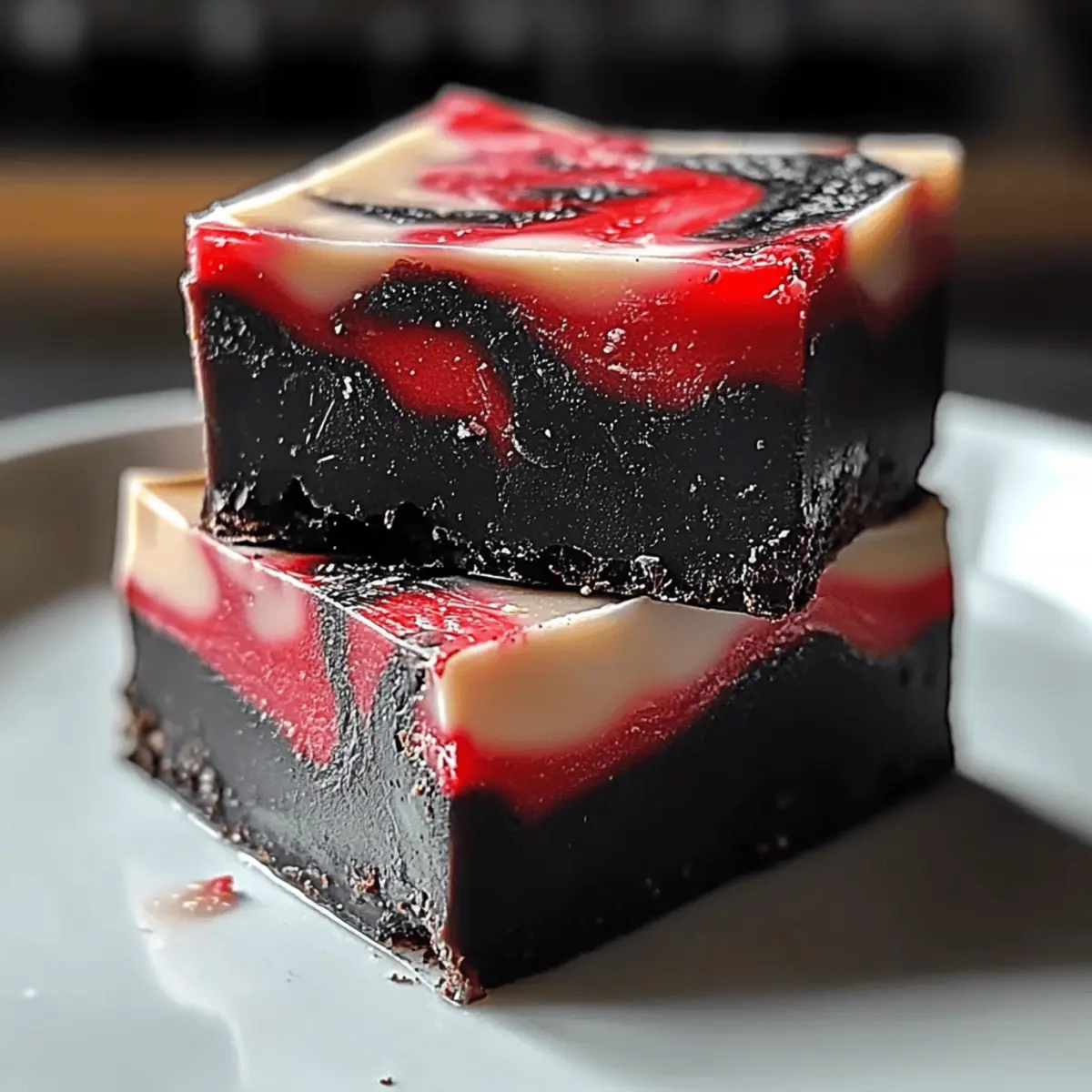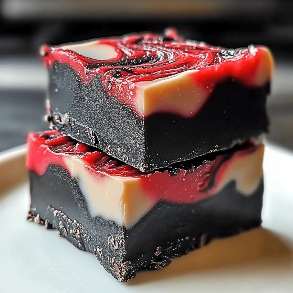 As the days grow shorter and the air gets crisp, I’m reminded of the enchanting magic of Halloween treats. Nothing is quite as captivating as my Ghoulishly Good Vampire Fudge, a no-bake delight that combines a creamy texture and a striking swirl of black and red. This spooky creation not only comes together in no time but also doubles as a showstopper for your haunted gatherings, guaranteed to delight kids and adults alike! Plus, with its gluten-free and vegetarian-friendly nature, you can indulge without any worry. Are you ready to turn your kitchen into a cauldron of chocolatey goodness? Let’s get started! Why is Vampire Fudge a Halloween Must-Have? Ghoulishly Good Vampire Fudge is not just a treat; it’s a showstopper that steals the spotlight at any Halloween gathering! No-Bake Convenience means you can whip this up quickly, perfect for those last-minute parties. Endless Variations let your creativity shine—try different color combinations or toppings to match your Halloween theme. Crowd-Pleasing Flavor ensures every bite is a delightful blend of creamy sweetness, captivating all ages. Plus, it’s Gluten-Free and Vegetarian, so everyone can enjoy this spooky indulgence without guilt! Ghoulishly Good Vampire Fudge Ingredients For the Fudge Cream Cheese Frosting – Provides a creamy texture and sweetness; can be swapped with thick vanilla or buttercream frosting if desired. Black Candy Melts – Essential for that haunting dark hue; always choose fresh, smooth melts for the best results. Red Candy Melts – Adds a vibrant color contrast; make sure they are smooth to achieve a uniform mix. For the Toppings Crushed Nuts – Adds a delightful crunch; feel free to mix with cookie crumbles for extra texture! Halloween Sprinkles – Perfect for a festive touch; sprinkle these on top to amp up the spooky vibes! Salted Caramel or Melted Chocolate – Drizzling enhances richness; a savory-sweet balance your guests will adore. Now, gather your ingredients, roll up your sleeves, and prepare to create this Ghoulishly Good Vampire Fudge that’s sure to impress at your Halloween gathering! Step‑by‑Step Instructions for Ghoulishly Good Vampire Fudge Step 1: Prepare Your Pan Lightly grease an 8″ x 8″ cake pan to prevent sticking, then line it with parchment paper in a cross shape, allowing some overhang for easy removal. This setup will help you easily lift out the finished Ghoulishly Good Vampire Fudge once it’s set, ensuring perfect squares every time. Step 2: Melt the Black Candy Melts In a microwave-safe bowl, combine the black candy melts and microwave on high for 2 minutes, stirring every 30 seconds until smooth. You’ll know they’re ready when the mixture is glossy and fully melted, creating that ominous color perfect for our fudge. Set aside once melted. Step 3: Melt the Red Candy Melts Repeat the melting process for the red candy melts in a separate bowl, using the same timing and stirring approach. Again, look for a silky and uniform texture; this vibrant hue will add a delightful pop of color to your Ghoulishly Good Vampire Fudge once layered in the pan. Step 4: Warm the Cream Cheese Frosting Microwave the cream cheese frosting for about 45 seconds, just enough to soften it and make mixing easier. As it warms, you’ll achieve a smooth consistency, which will blend beautifully with the melted candy, providing the creamy base for this decadent treat. Step 5: Combine Frosting with Candy Melts Divide the warmed cream cheese frosting evenly between the bowls containing the black and red melted candy melts. Stir each bowl thoroughly until fully blended, making sure there are no streaks left. This step creates a luscious base for your Ghoulishly Good Vampire Fudge with contrasting colors! Step 6: Layer the Mixtures into the Pan Carefully pour alternating layers of the black and red mixtures into the prepared pan, allowing the layers to slightly overlap. This method will create a stunning marbled effect that resembles ghoulish swirls. Use a spatula to ensure the mixtures spread evenly and smoothly. Step 7: Tap and Chill Once you’ve poured in all the mixtures, gently tap the pan on the counter to release any air bubbles and even out the surface. Refrigerate the Ghoulishly Good Vampire Fudge for at least 4 hours, allowing it to set firmly. Patience here is key for perfect structure! Step 8: Cut and Serve Once fully set, lift the fudge out of the pan using the parchment overhang. Place it on a cutting board and slice into squares or preferred shapes. This colorful treat is now ready to be served, bringing seasonal delight to your Halloween gathering! Expert Tips for Ghoulishly Good Vampire Fudge • Chill Time: Don’t rush the chilling process; it’s crucial to set for at least 4 hours to achieve that perfect fudge texture. • Candy Quality: Opt for candy melts free of dark spots to ensure they melt smoothly for your Ghoulishly Good Vampire Fudge. • Stirring Technique: When melting candy melts in the microwave, stir every 30 seconds to prevent burning and achieve a glossy finish. • Layering: For a dramatic marbled effect, pour the mixtures slowly and let them lightly overlap rather than mixing too vigorously. • Creative Variations: Feel free to swap the colors and toppings, exploring fun alternatives for a unique spin on your Halloween treat! Ghoulishly Good Vampire Fudge Variations Get ready to unleash your creativity as you explore delightful twists for this delectable treat! Color Swap: Swap black and red candy melts for purple and green for a whimsical witch-themed vibe. Crunchy Addition: Sprinkle in crushed nuts or cookie crumbles for a satisfying texture that keeps things interesting in every bite. Sprinkle Magic: Top with Halloween-themed sprinkles. These festive decorations add a fun flair that’ll attract both kiddos and adults alike. Drizzle Delight: Enhance richness by drizzling salted caramel or melted chocolate over the set fudge—an indulgent upgrade 